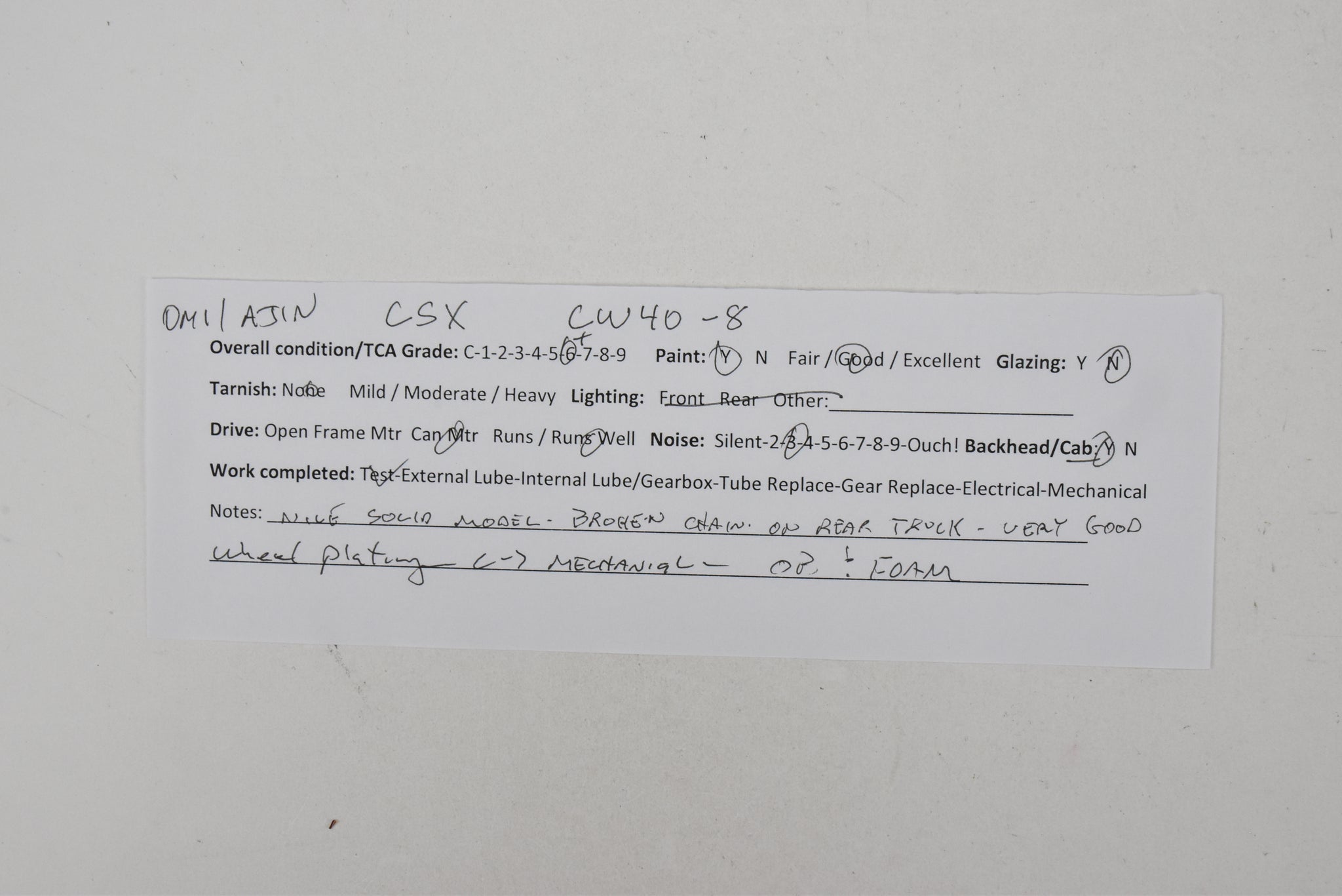 Condition: C-6 Broken chain on rear truck - see photos (Otherwise, C-7 mechanical)