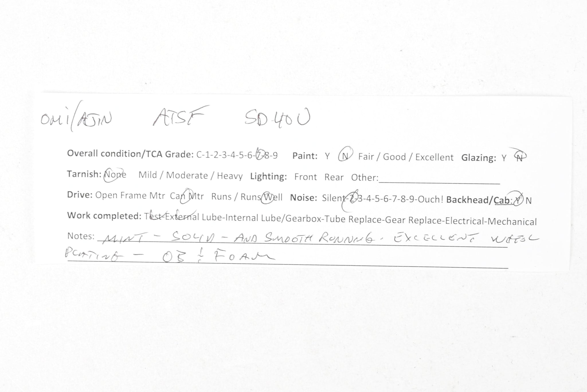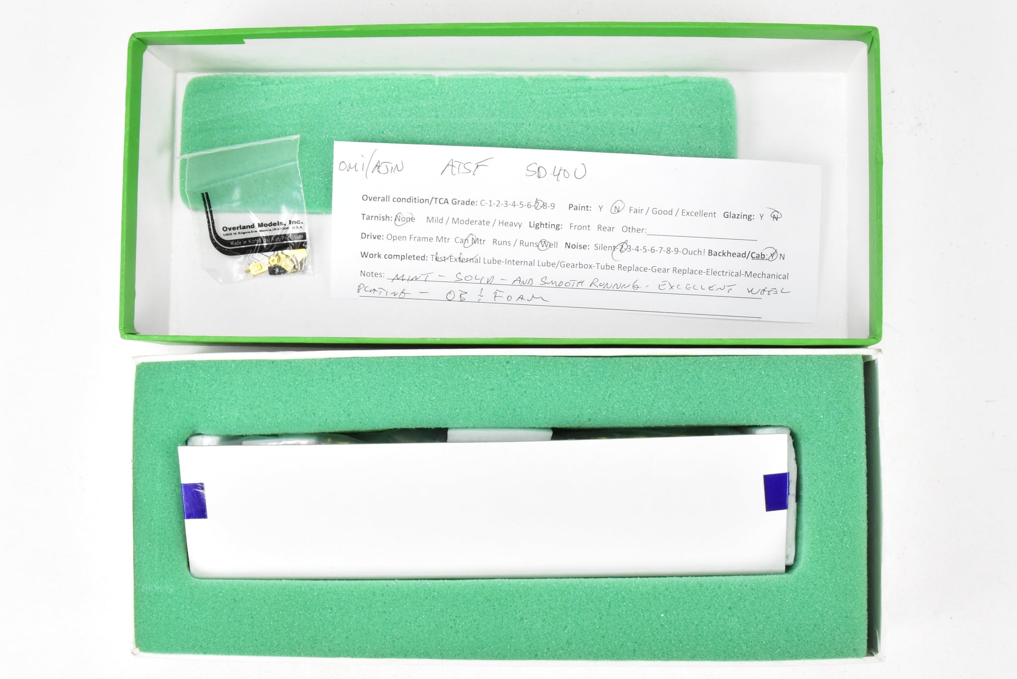 1988 run Overland Models, Inc. Imported model built by Ajin Precision Mfg. in Korea. Original box shows minimal shelf wear. Spare parts included. A smooth running, quiet, tower drive model that exhibits little, if any, use.