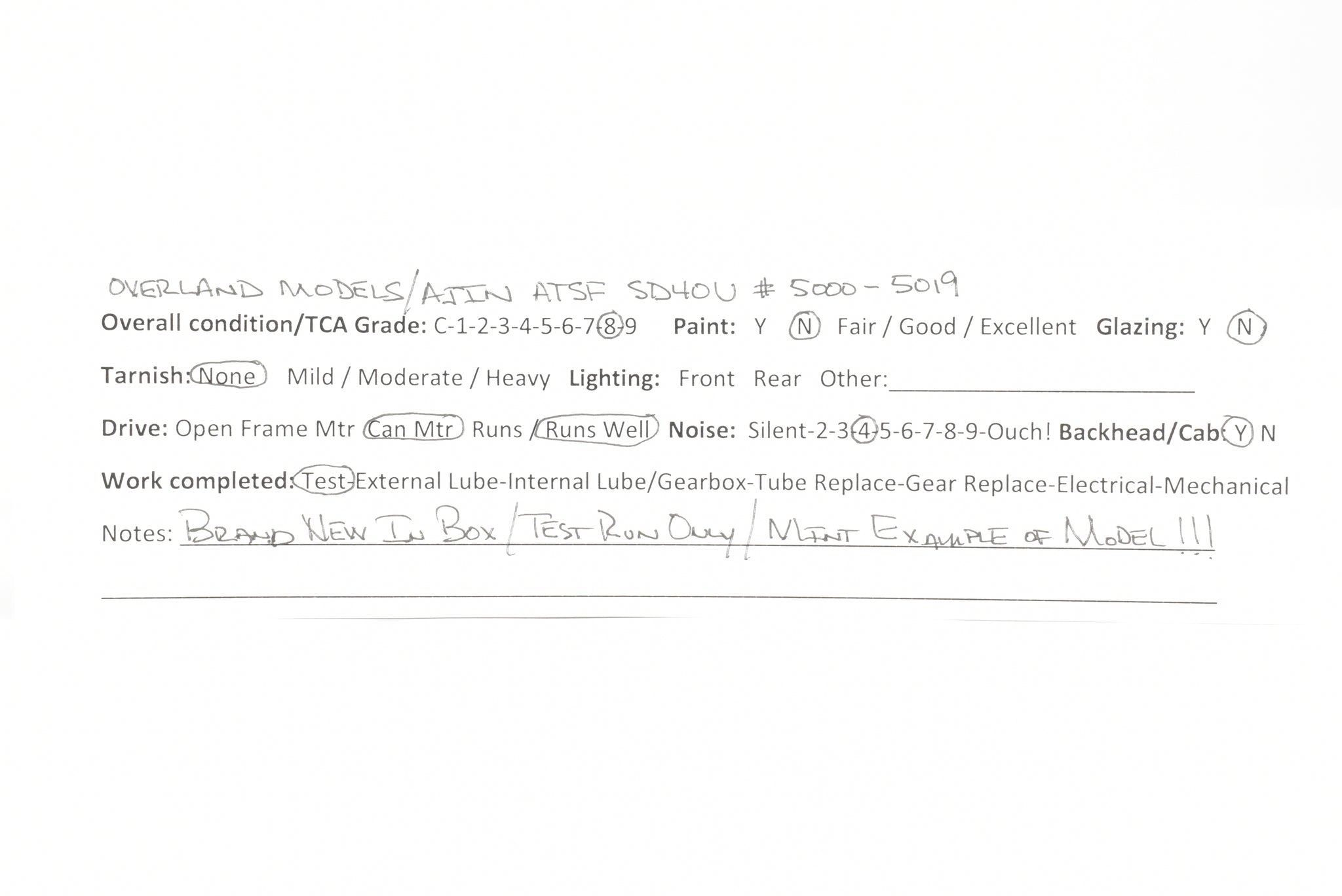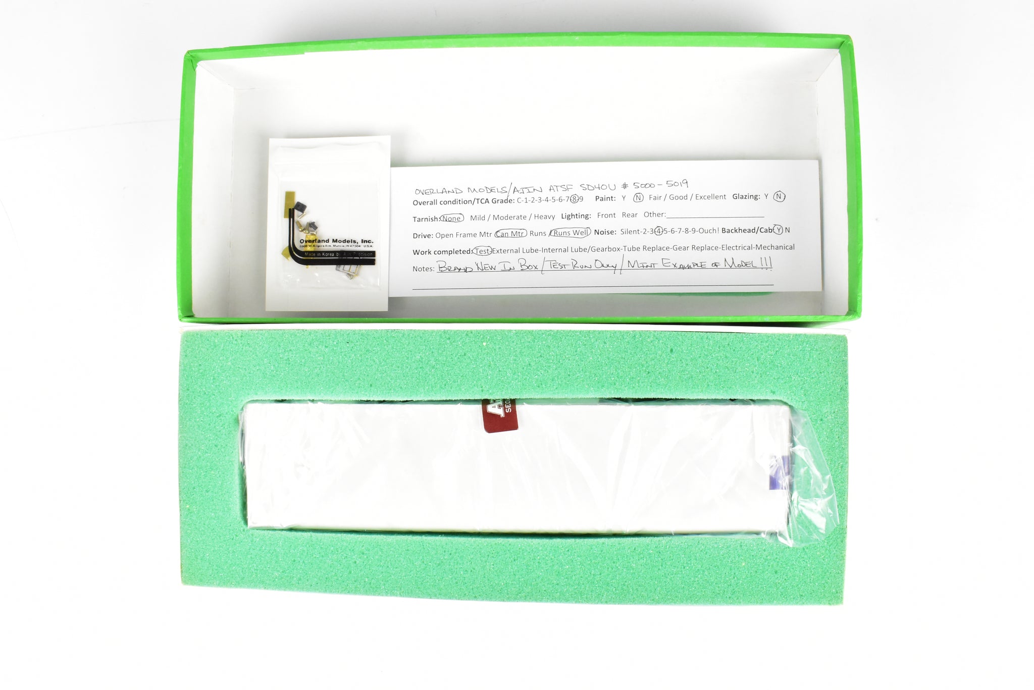1988 run Overland Models, Inc. Imported model built by Ajin Precision Mfg. in Korea. Original box shows minimal shelf wear. Spare parts included. A smooth running, quiet, tower drive model that exhibits little, if any, use.