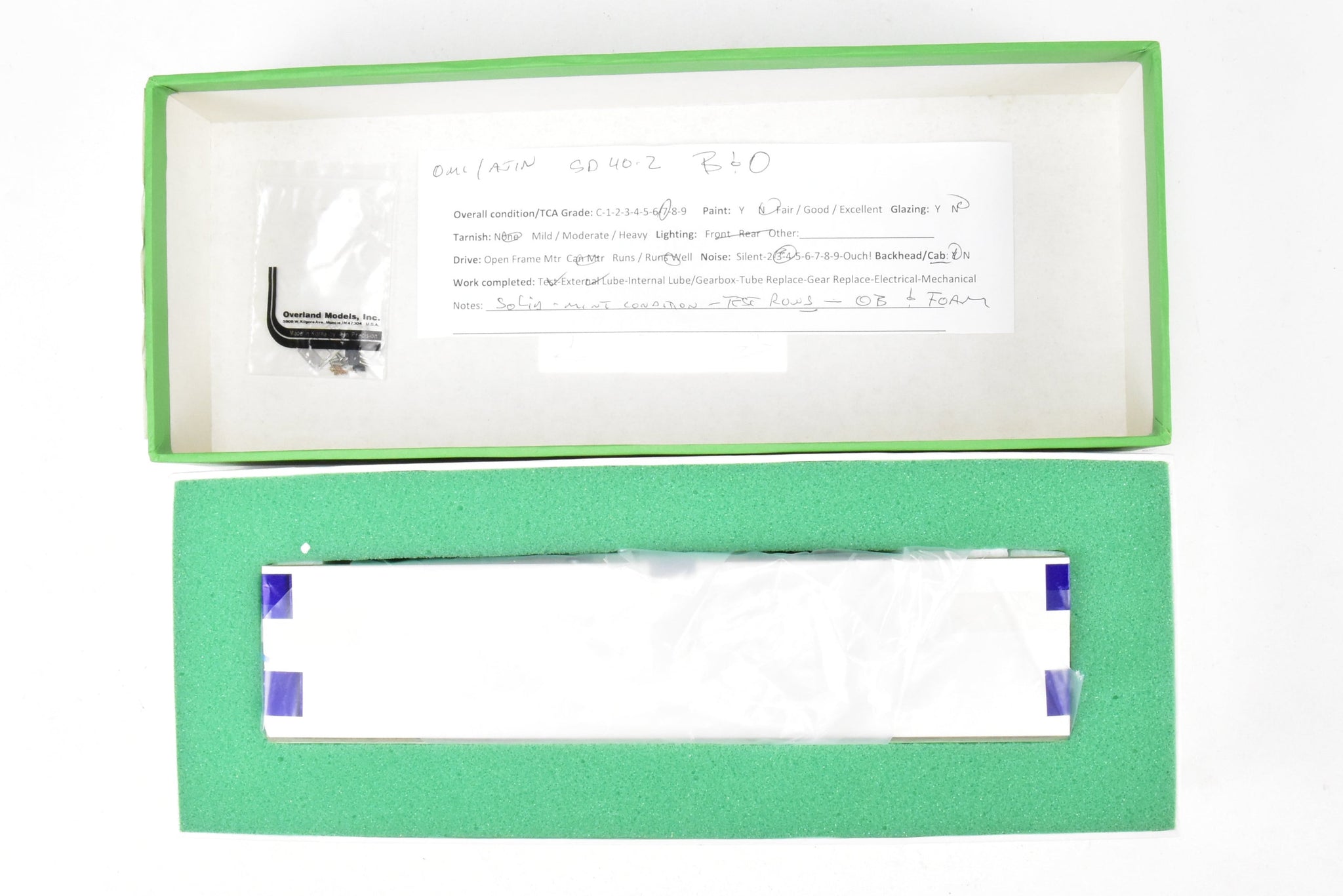 1988 run Overland Models, Inc. Imported model built by Ajin Precision Mfg. in Korea. Original box shows almost no shelf wear. Spare and detail parts included. Represents road numbers 7600 through 7619 w/ Extended Range Dynamic Brakes and Late Radiator Screens. A mint condition model that's a smooth and reasonably quiet runnier with a high degree of detail. It's a rare and harder to find model as only 25 models of this version were imported.