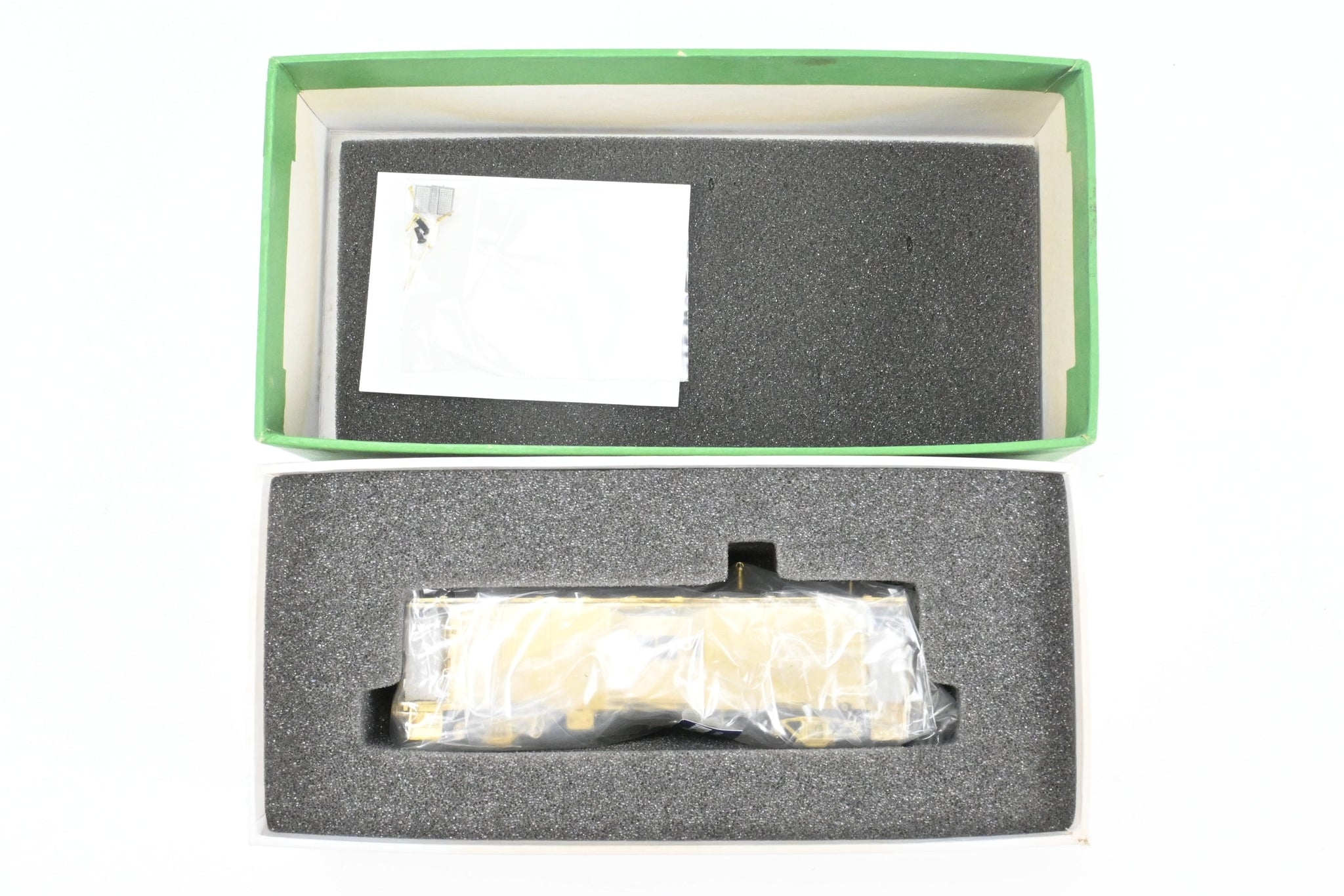 Overland Models, Inc. model built by Ajin in Korea. Box shows minimal shelf wear but does have some moisture staining - see photos. Spare parts included. Model represents a 1960's bay window caboose rebuilr in the 1980's used by the C&NW.
