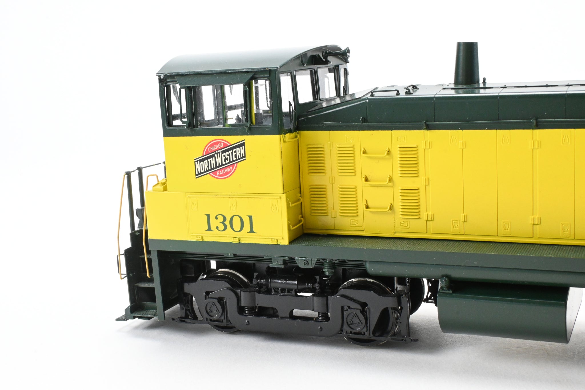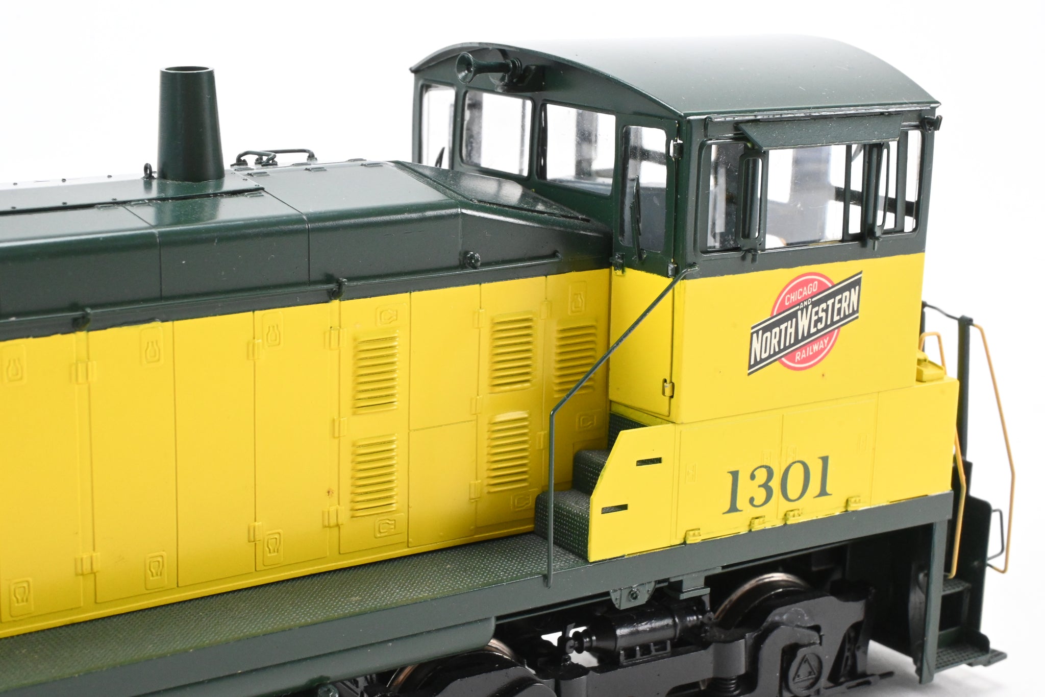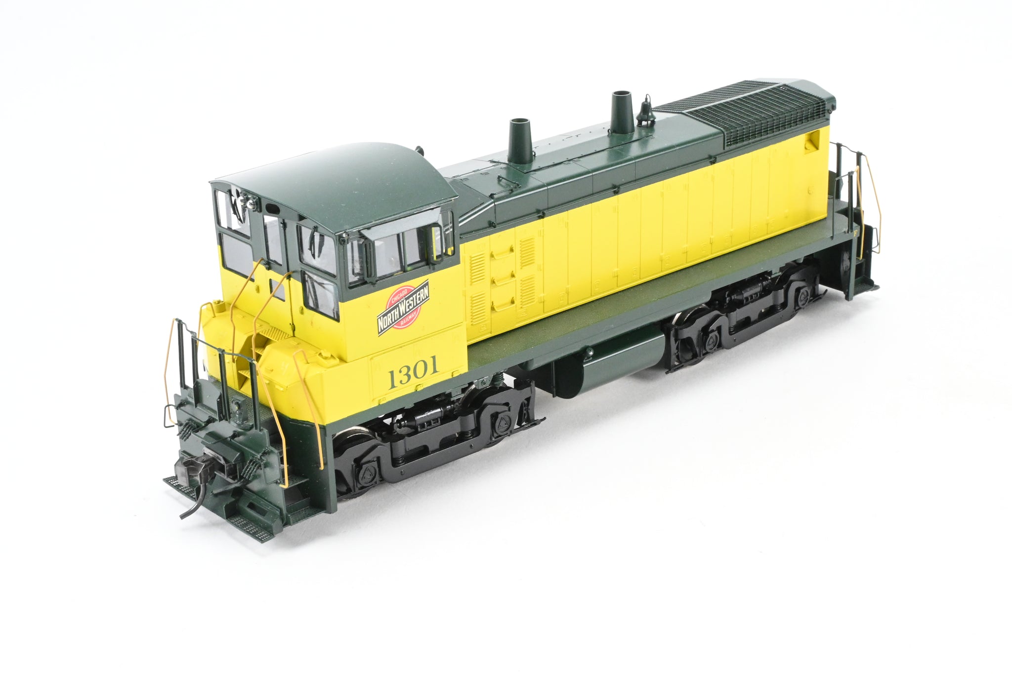 OMI - Overland Models, Inc imported model built by Ajin Precision Mfg. in Korea. Box shows some shelf wear with at least one taped corner. Spare parts included. Represents C&NW's SW1500 #1301. Model has an excellent custom paint job - see photos. A smooth and quiet runner, with minimal signs of use. Very nice! NOTE: Digitrax DCC only! An older Decoder install. RARE! only 30 of these locomotives were produced.