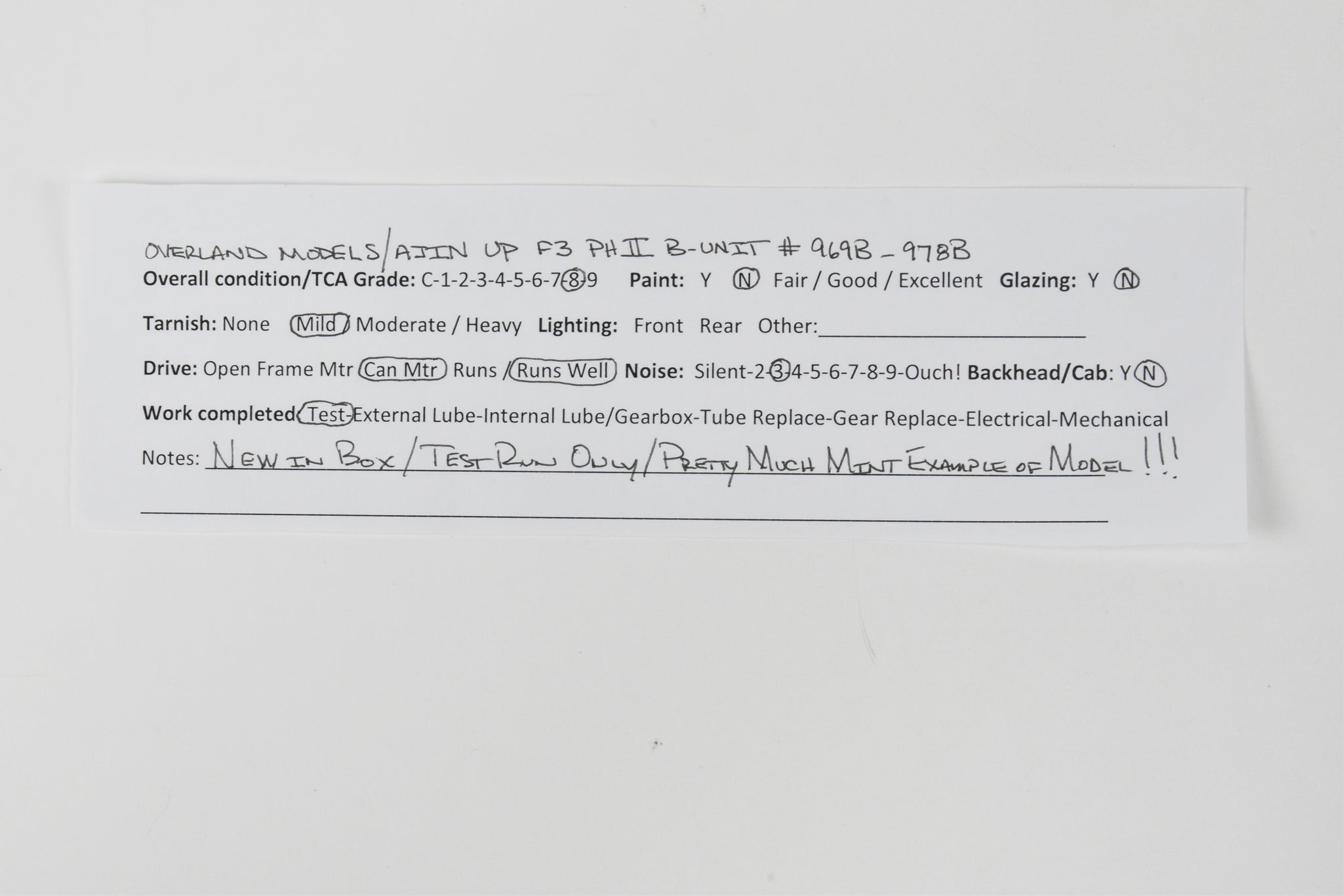 1992 run Overland Models, Inc. imported model built by Ajin in Korea. Box shows minimal wear. Spare parts included. These engines were ordered as expressly for passenger service. This model is mint and brand new in the box. An excellent model for Union Pacific modelers. Test run only.