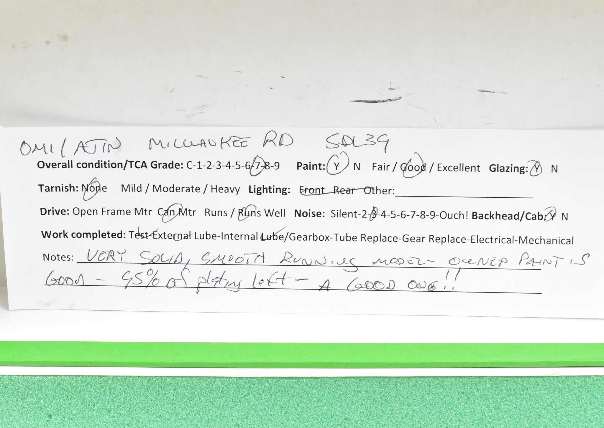 1988 run OMI - Overland Models, Inc built by Ajin in Korea. Box shows moderate shelf wear with some stains and missing foam bits. No spare parts included. Custom painted - very nice work with minimal decal film and a few chips/scuffs from use. Lenses installed in class lamps and a non-functional beacon has been installed.