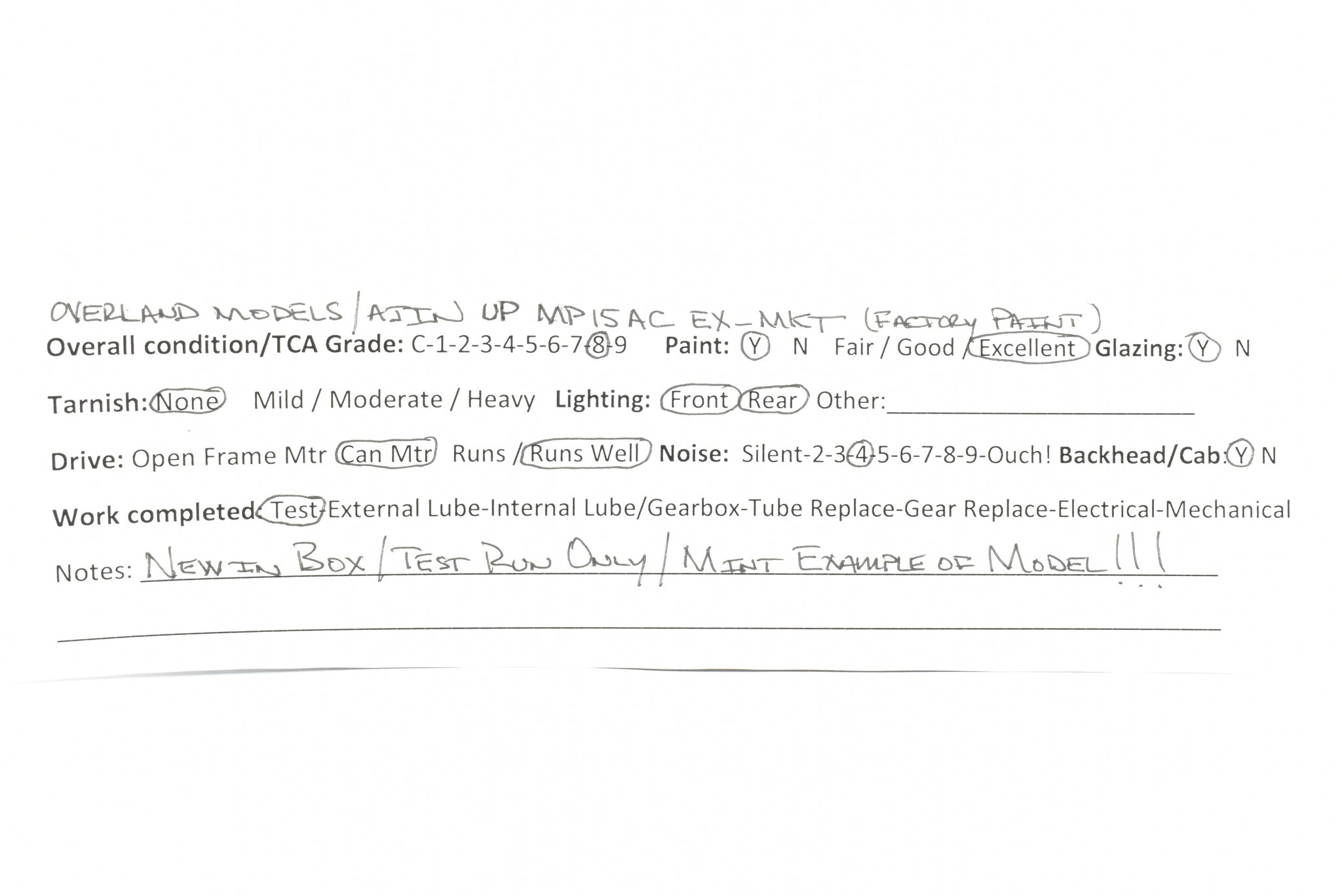 2000 run Overland Models, Inc. Imported model built by Ajin Precision Mfg. in Korea. Original box shows almost no shelf wear. Spare and detail parts included. Represents road number 1396. Model has a excellent factory paint job. Model is also lighted. This is a mint condition model that's smooth and nearly silent runnier with a high degree of detail. These engines were former MKT road switchers.