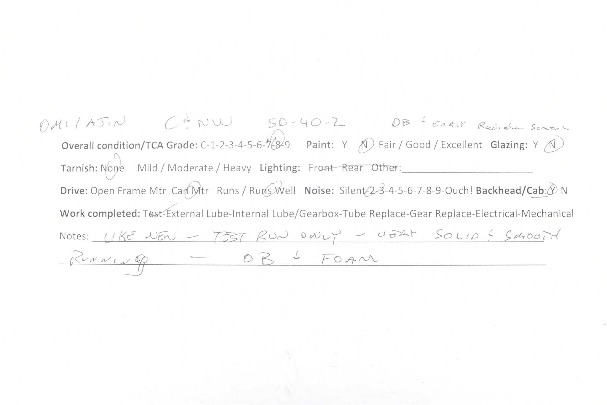 1988 run OMI - Overland Models, Inc built by Ajin in Korea. Box shows virtually no shelf wear. Spare parts included. This model was test ran only. A very solid and smooth running engine. These 107 units were bought by the C&NW for unit coal, grain and falcon service TOFC trains. Represents a loco w/ Extended Range Dynamic Brakes/Early Radiator Screens.