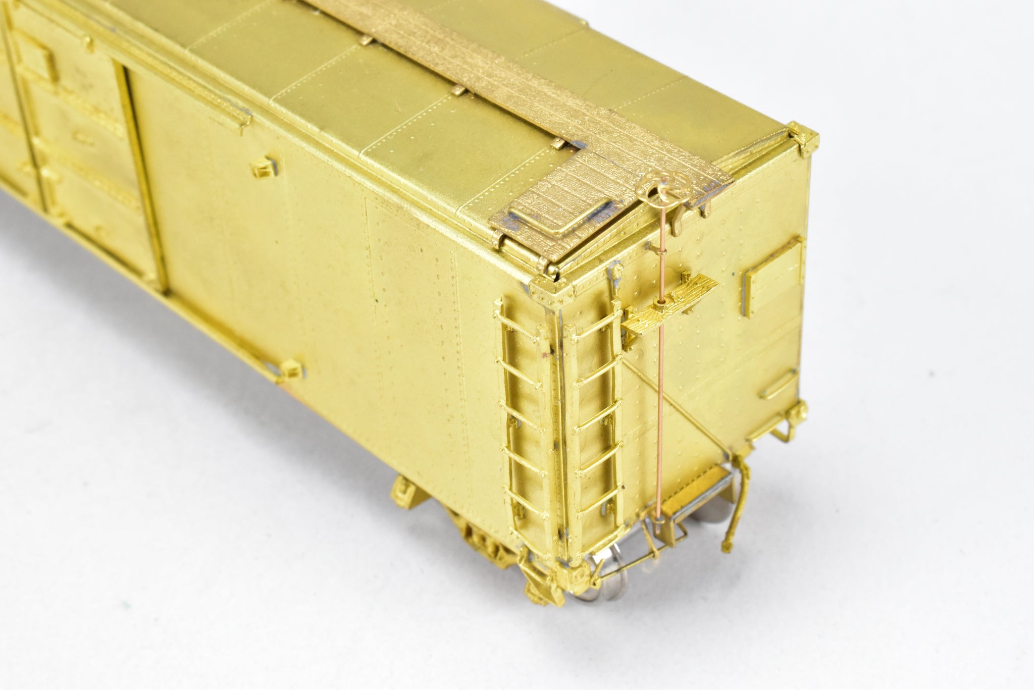 1987 run Overland Models, Inc. model built by M. S. Models in Korea. Box shows some shelf wear with minor staining on the label. Spare parts included. Represents the PRR X-28 40' boxcar with plain doors and plain ends. A nice model.