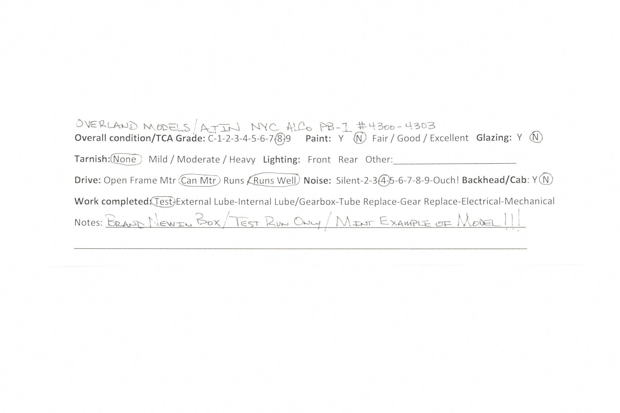 1989 run Overland Models, Inc. model built by Ajin Precision Mfg. in Korea. Box shows almost no shelf wear. Spare parts included. Model is in excellent condition, ready for paint. A smooth running, reasonably quiet, mint condition model. Rare and harder to find as only 10 models of this version were imported.