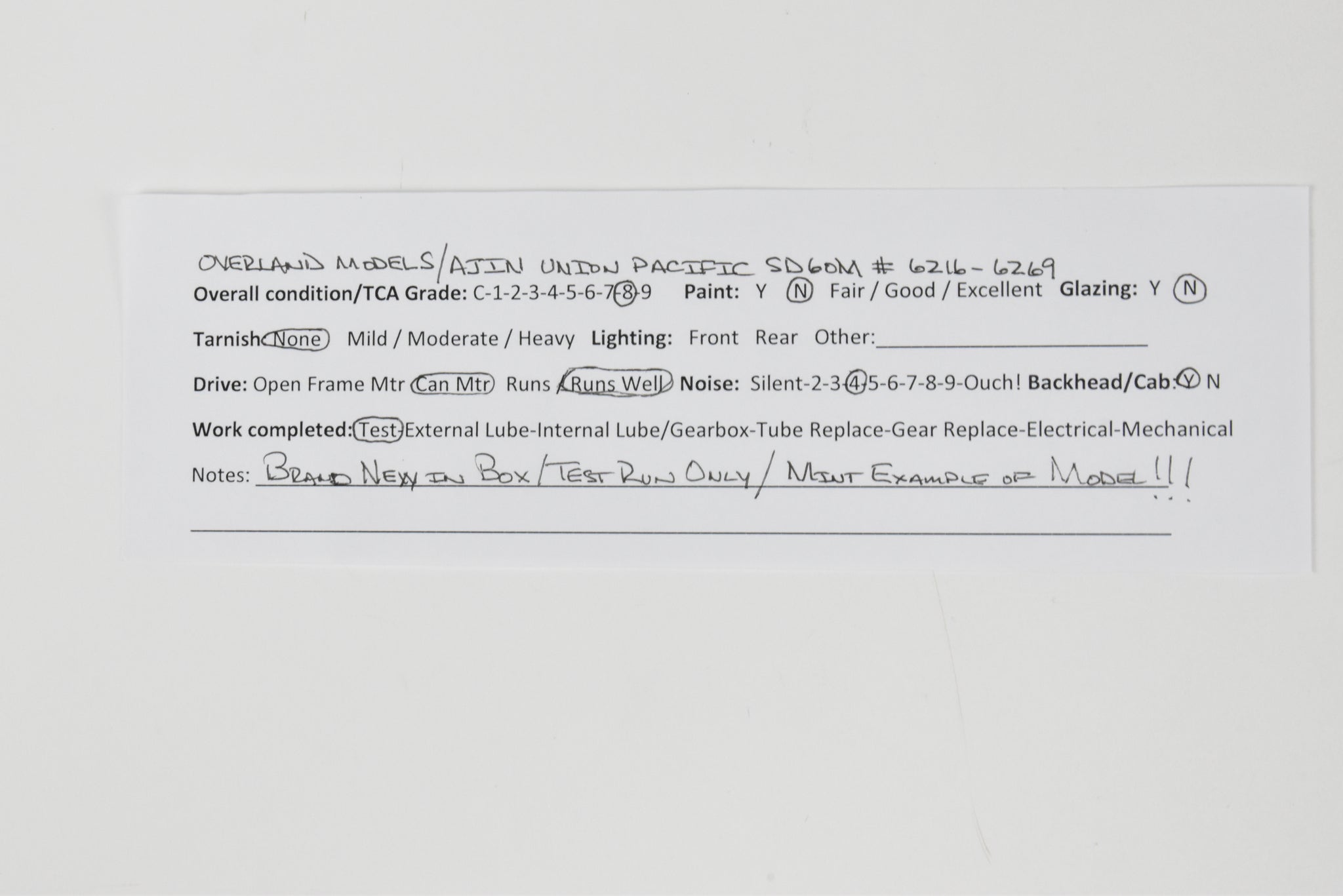 1992 run OMI - Overland Models, Inc built by Ajin Precision Mfg. in Korea. Box shows almost no shelf wear. Spare parts included. This model represents locomotive Nos. 6216- 6269. This model is brand new in the box. Test ran only. A smooth running, very quiet, nice model that would be a fine addition to your collection.