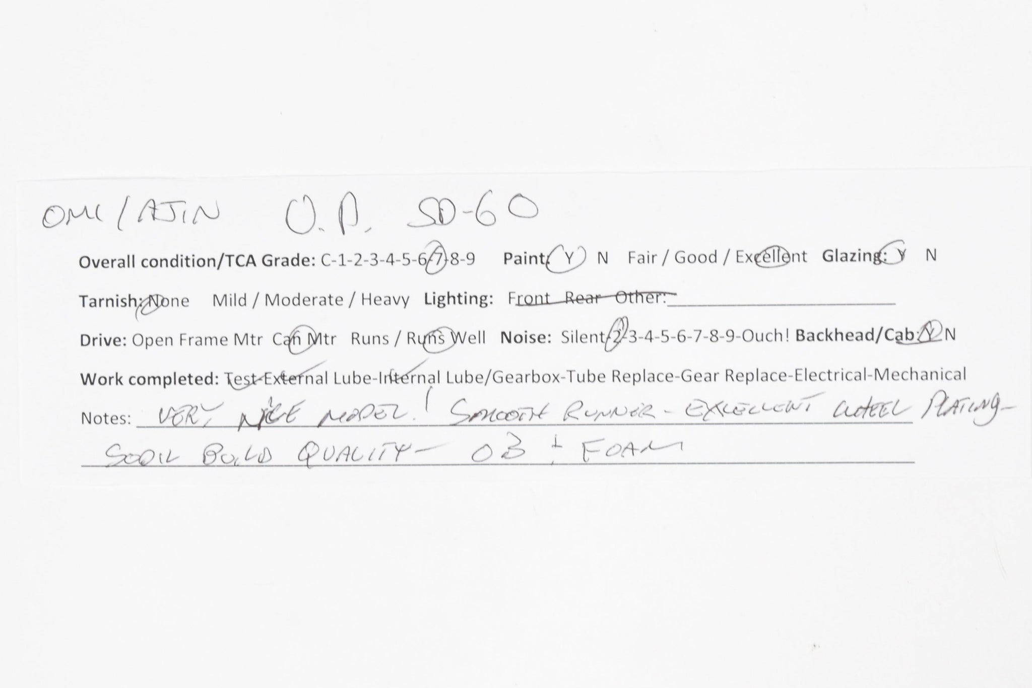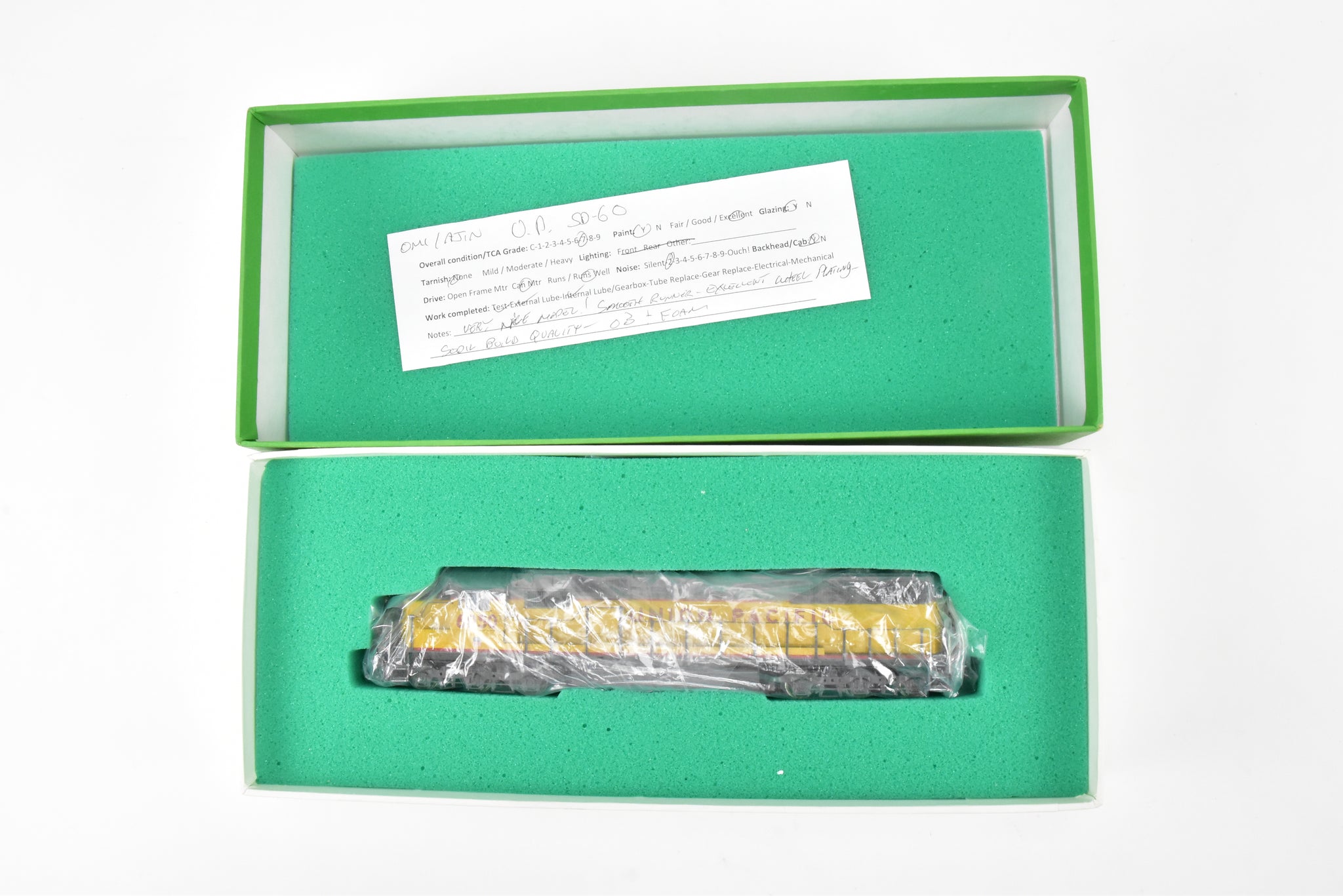 1988 run OMI - Overland Models, Inc built by Ajin Precision Mfg. in Korea. Box shows almost no shelf wear. No spare parts included. This model represents locomotive Nos. 6000- 6059. Paint work is excellent with minimal wear and window glazing is installed. A smooth running, very quiet, nicely painted model that would be a fine addition to your collection.