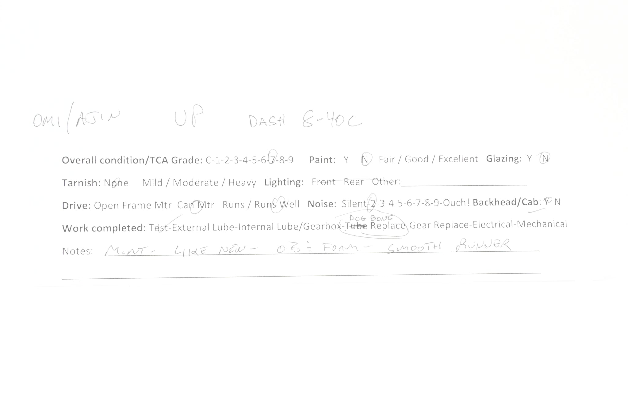 1993 run OMI - Overland Models, Inc built by Ajin Precision Mfg. in Korea. Box shows virtually no shelf wear. Spare parts included. Represents loco Nos. 9100. - 9174. A solid, smooth running, reasonably quiet example of this model.