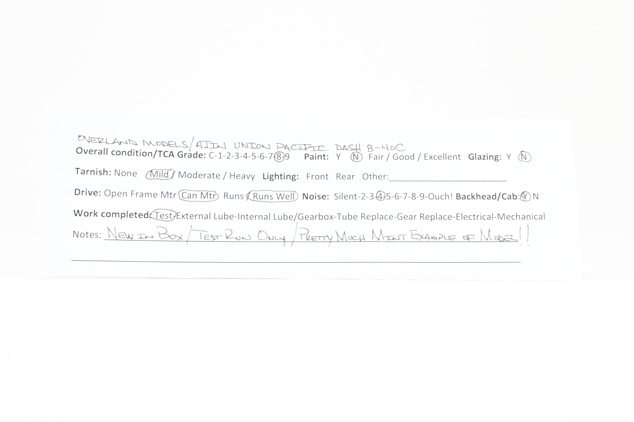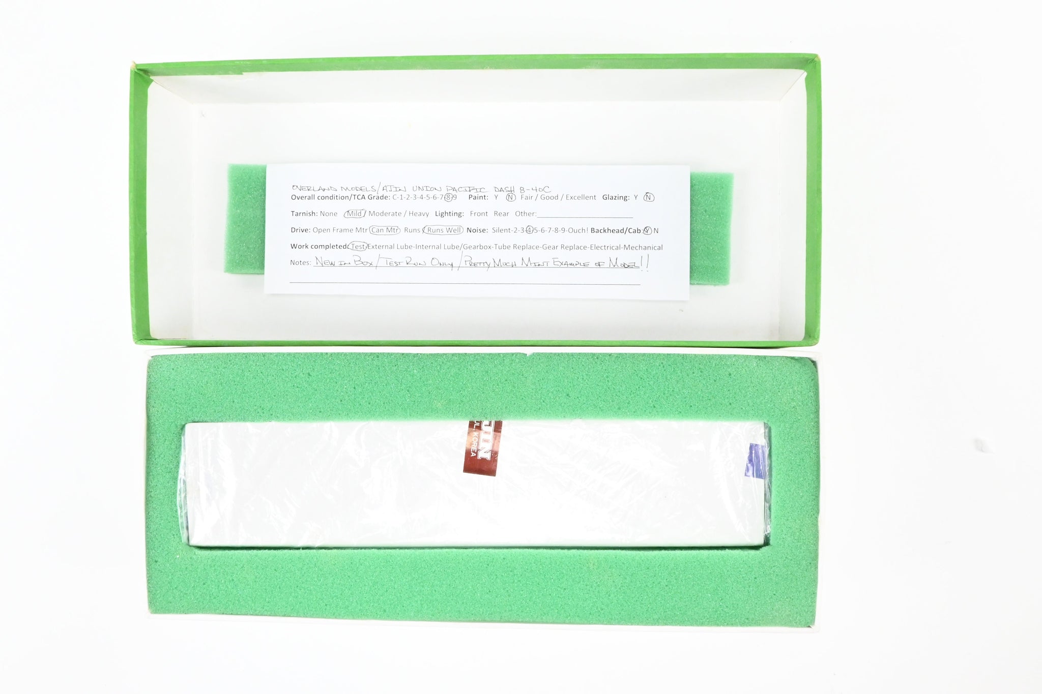 1988 run OMI - Overland Models, Inc built by Ajin Precision Mfg. in Korea. Box shows virtually no shelf wear. Spare parts included. Represents locomotive nos. 9100 - 9174. A solid, smooth running, reasonably quiet example of this model.