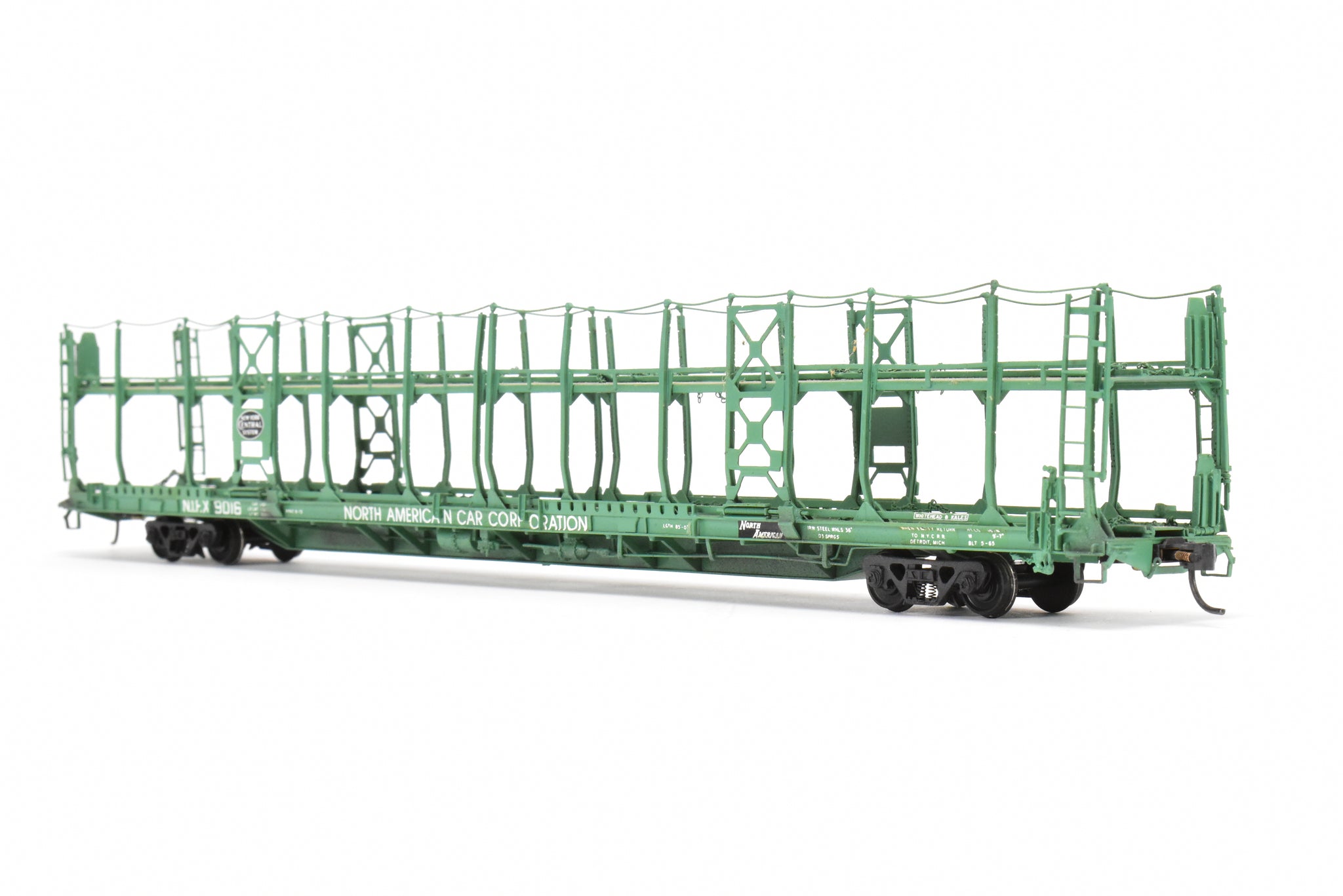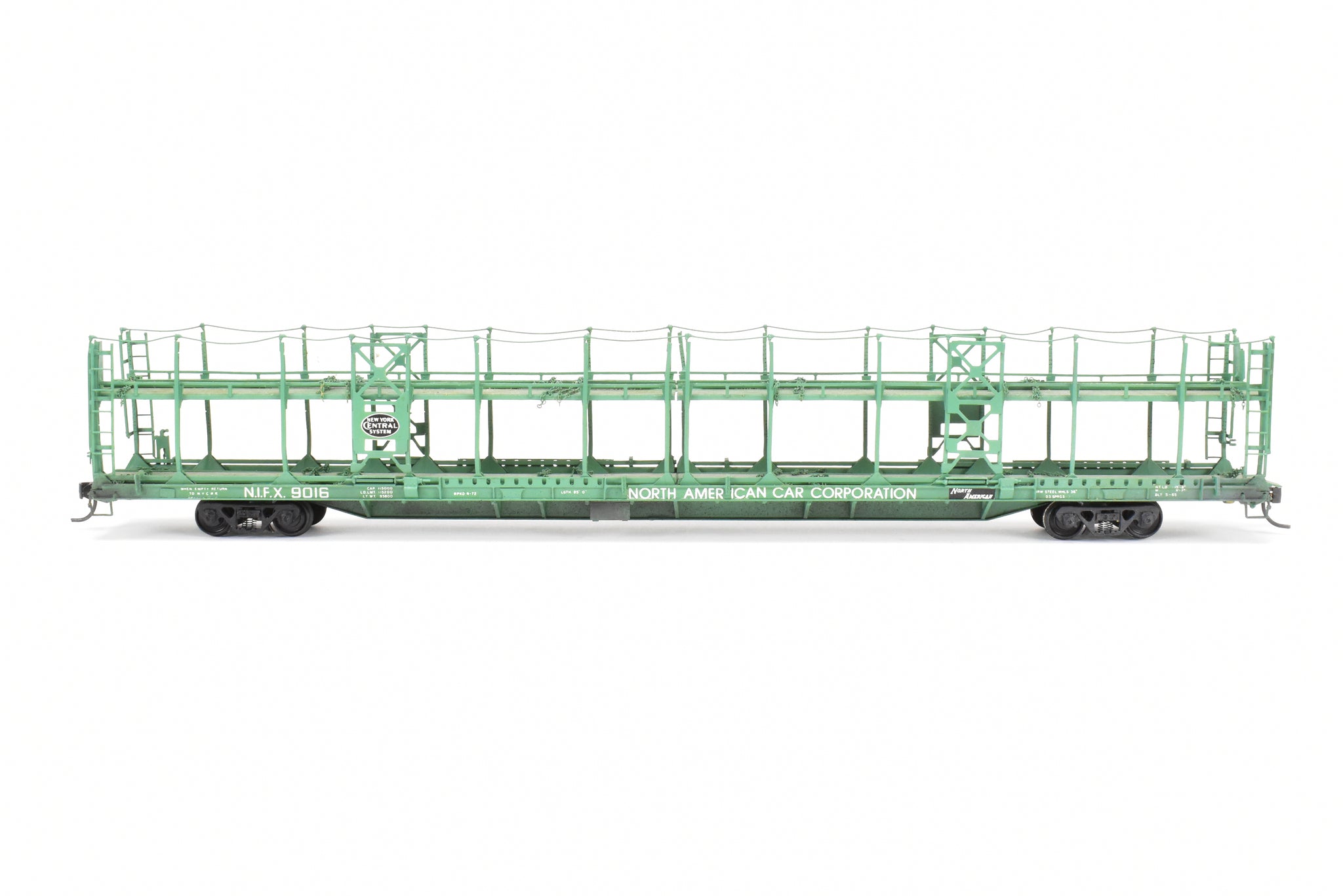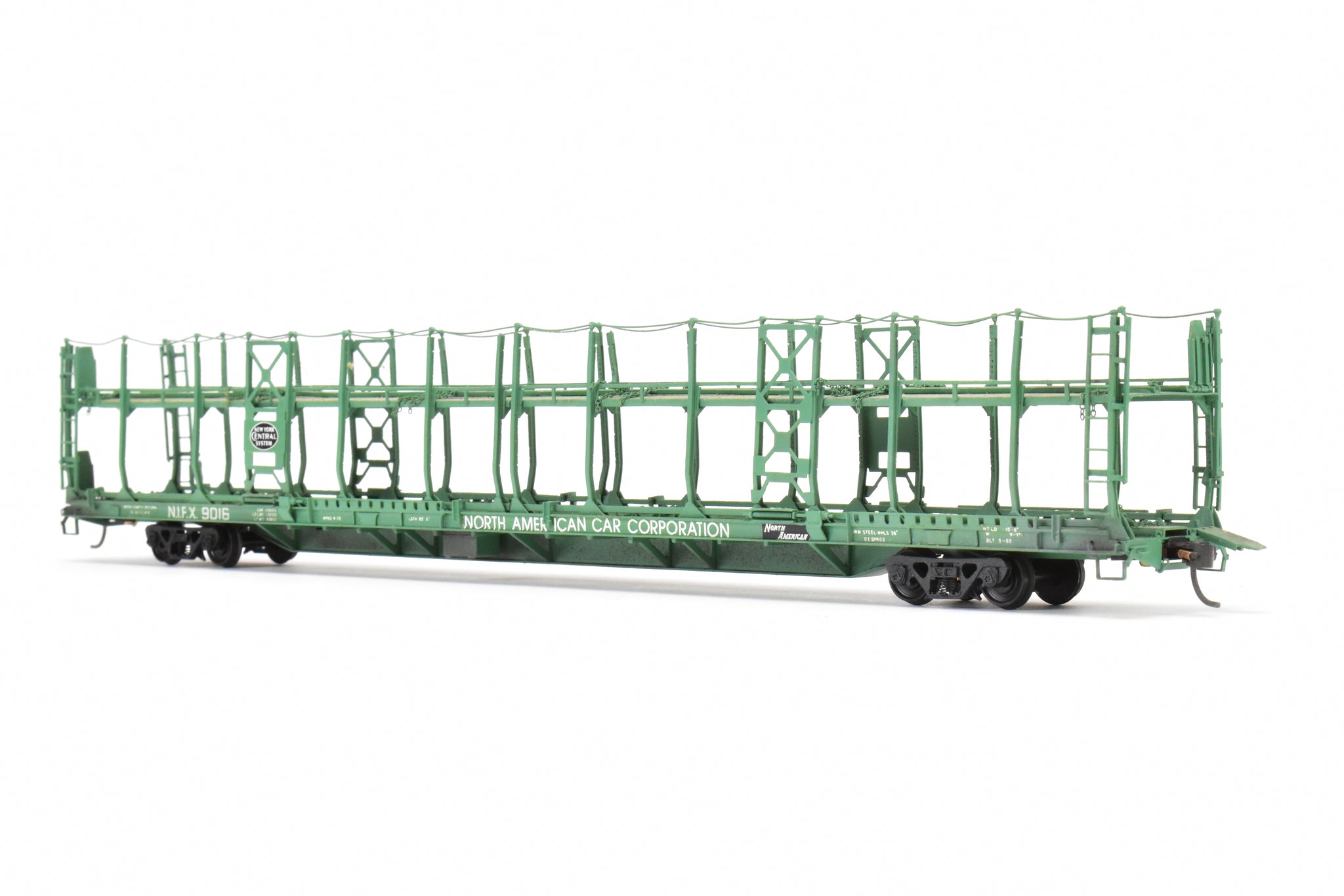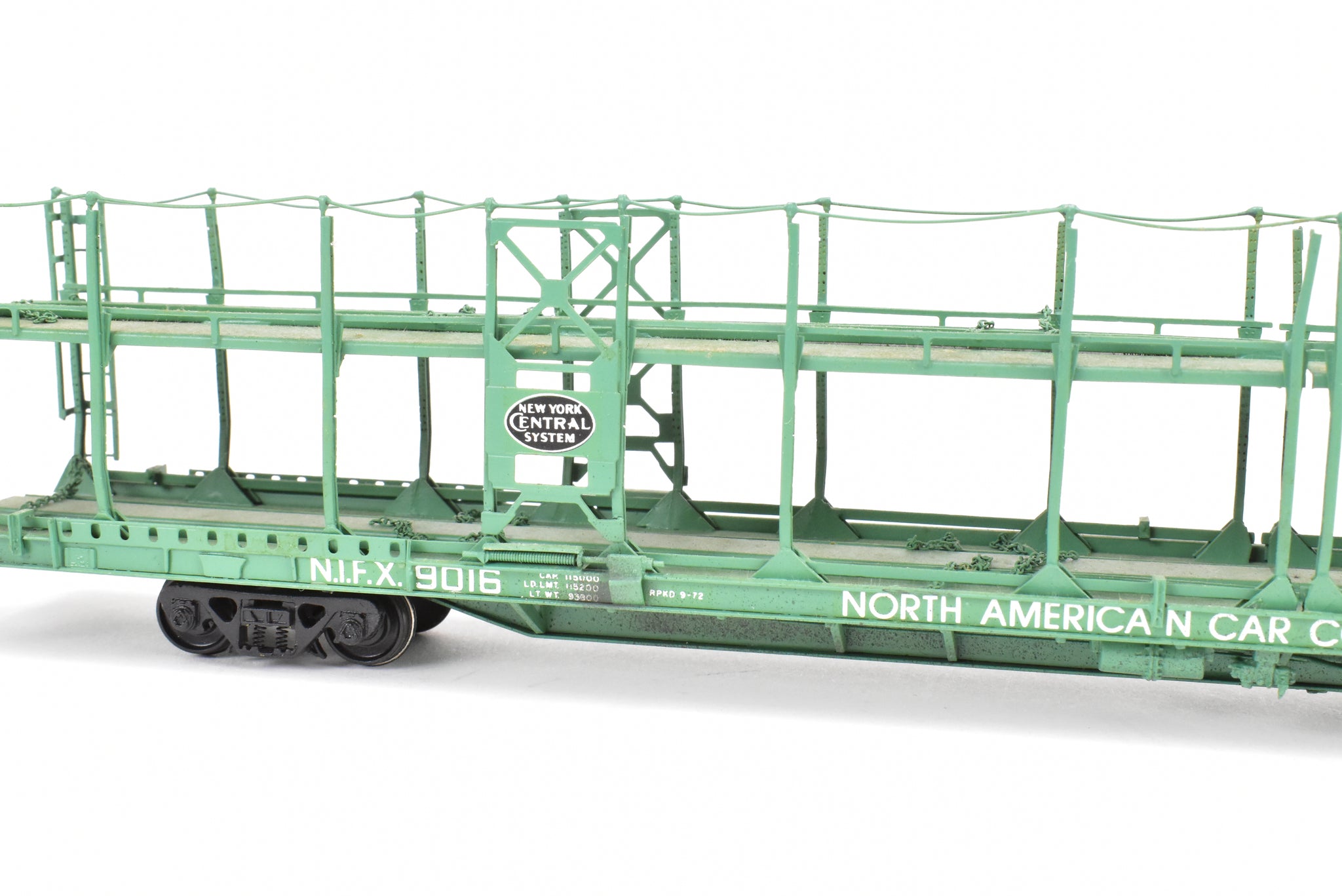 Decorated: Professional custom paint commissioned by OMI -"Custom Painted OMI" stamped in red letters on label is equal to factory paint of the era. North American Car Corp (NIFX) Flatcar and New York Central body. Road number 9016.