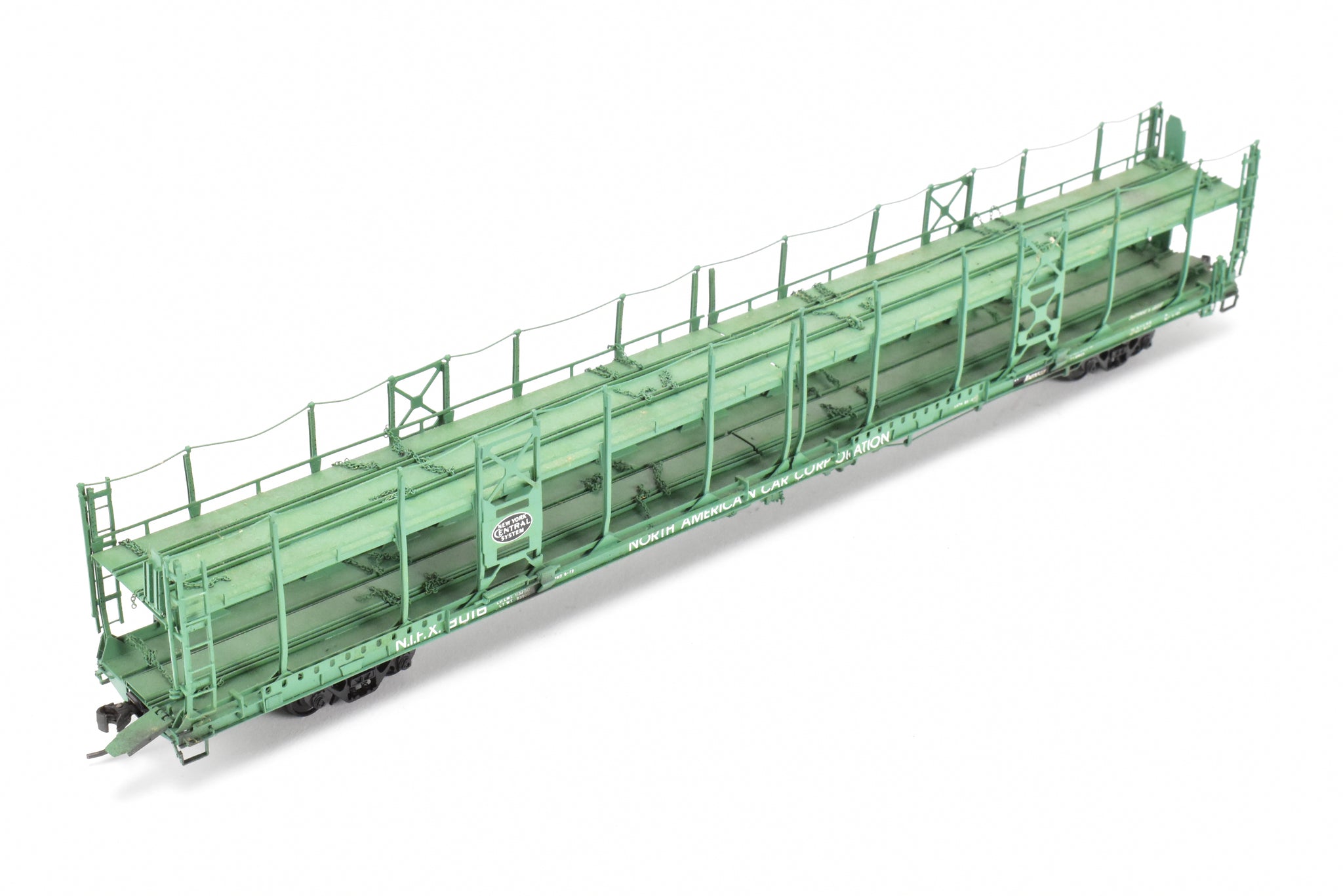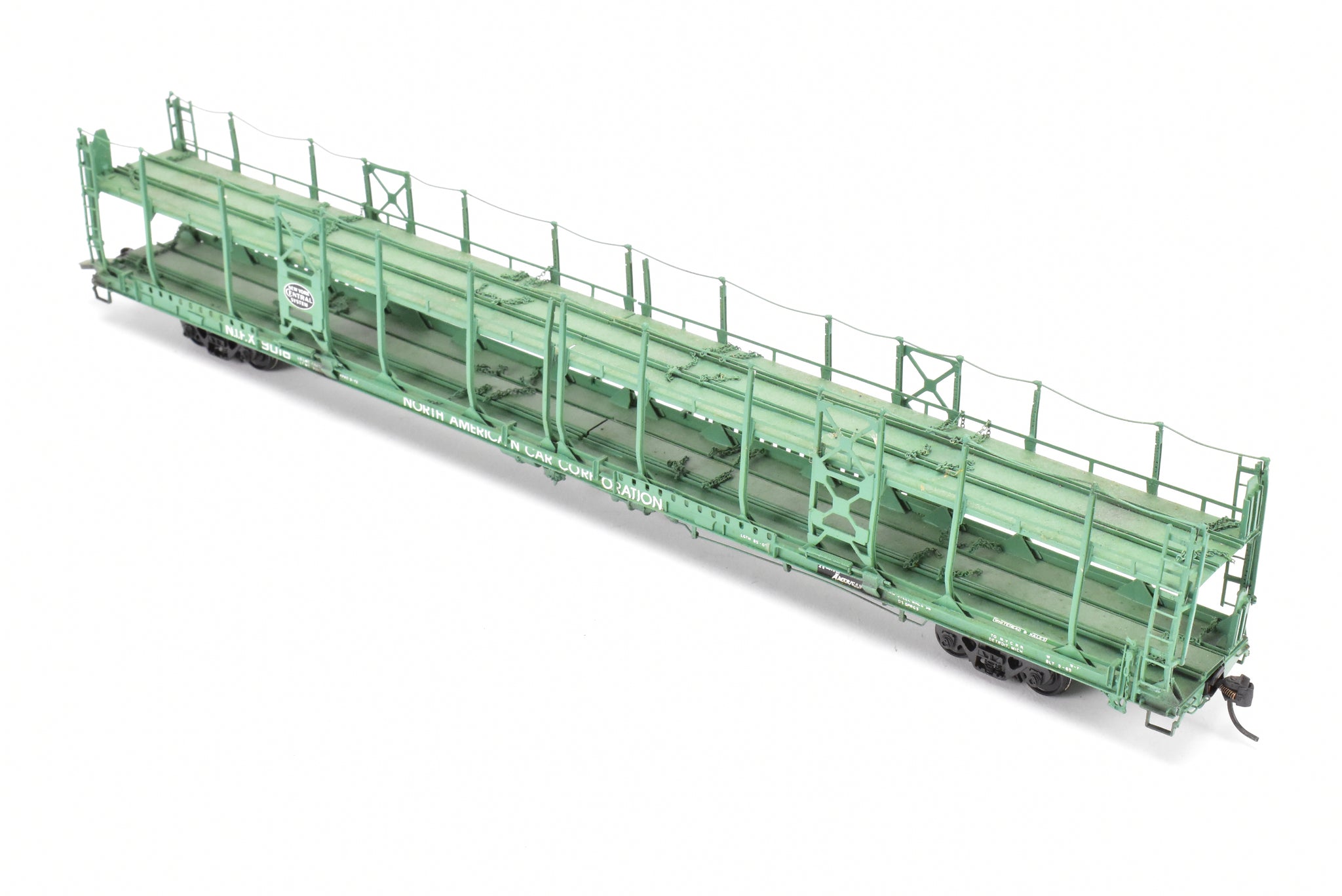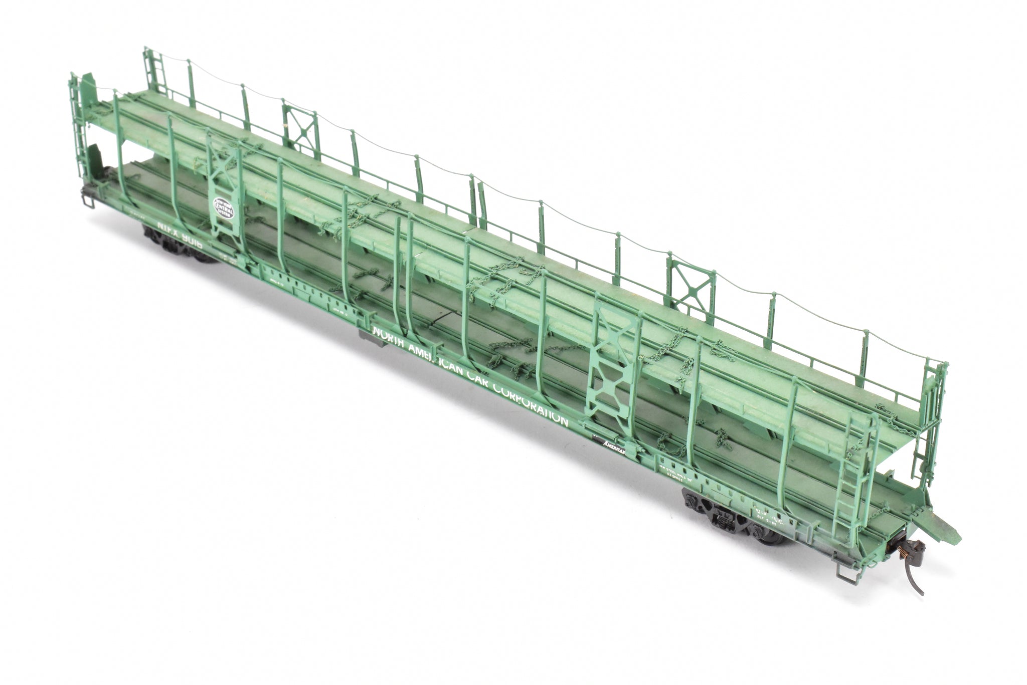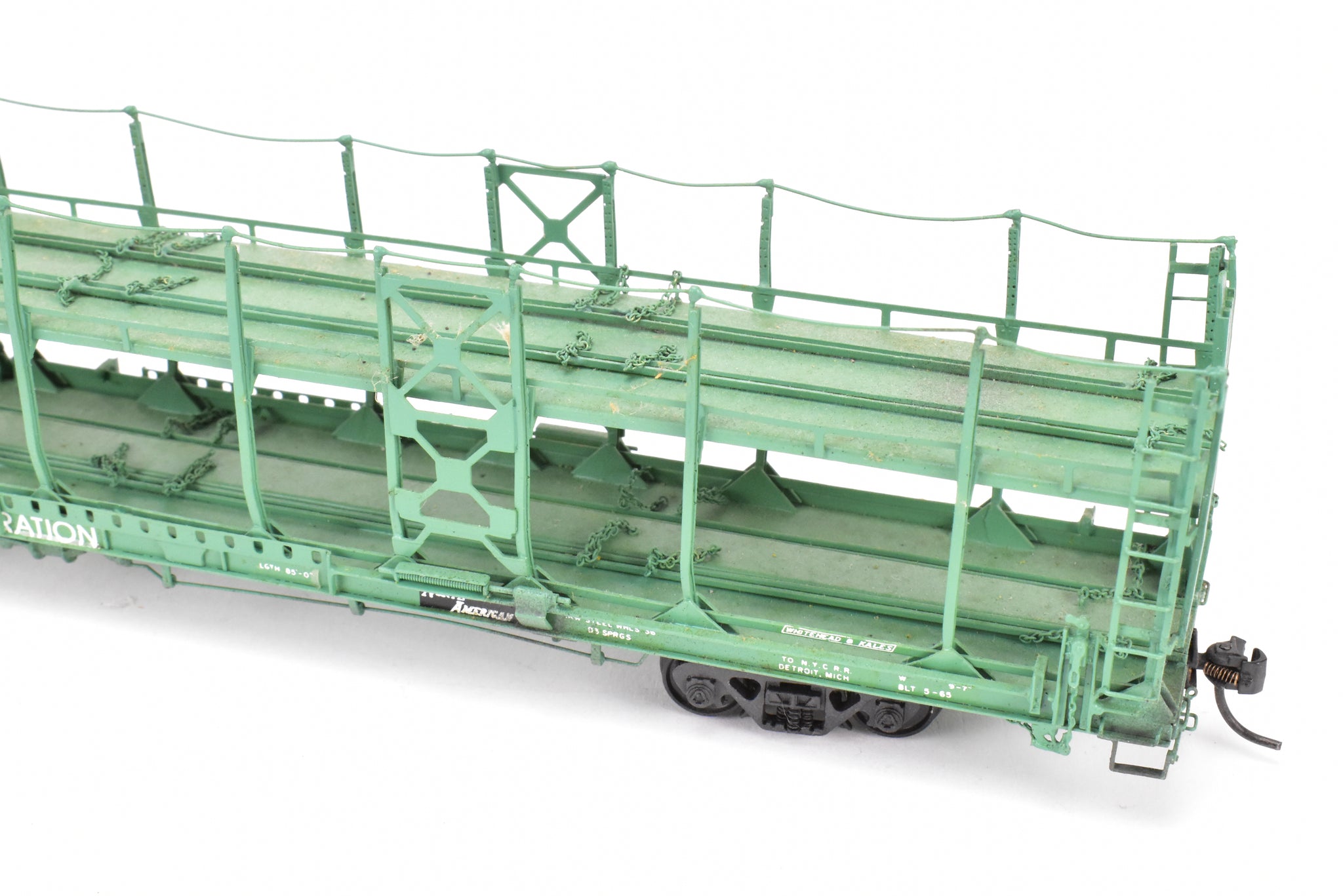 Decorated: Professional custom paint commissioned by OMI -"Custom Painted OMI" stamped in red letters on label is equal to factory paint of the era. North American Car Corp (NIFX) Flatcar and New York Central body. Road number 9016.