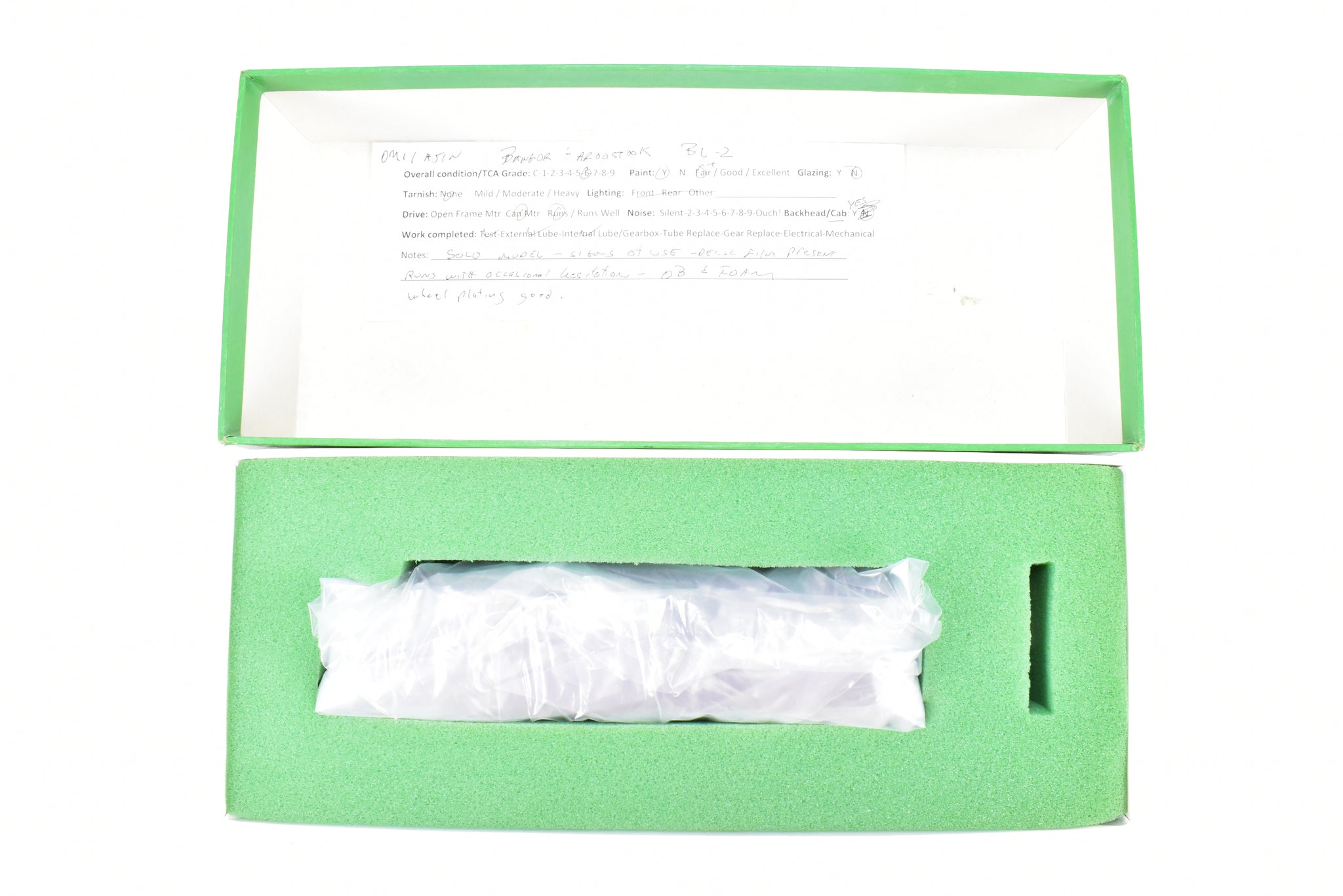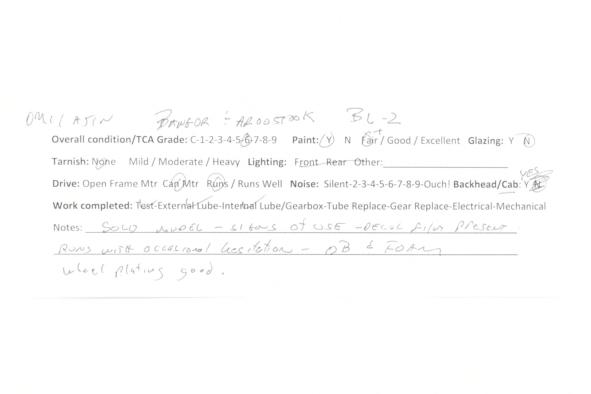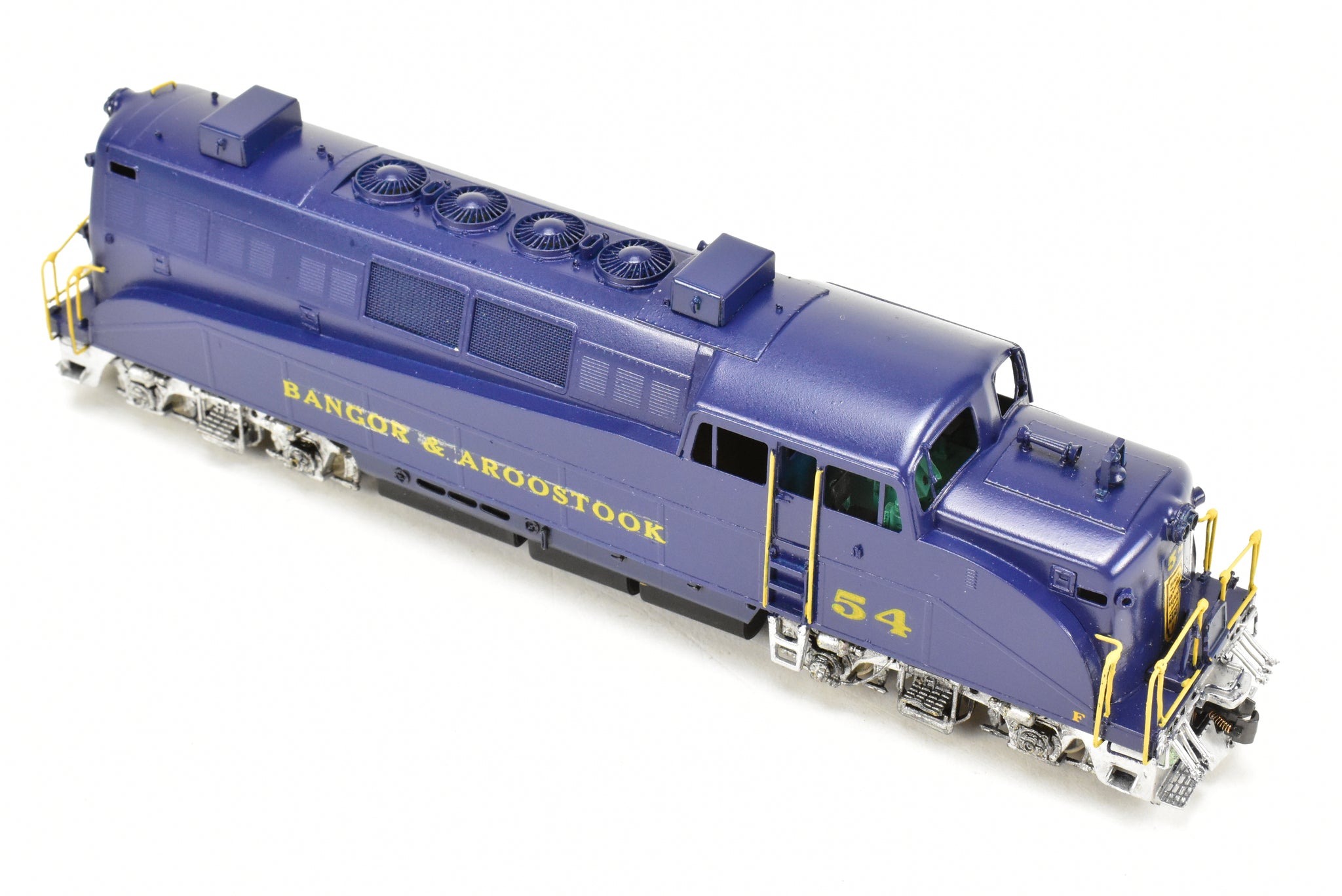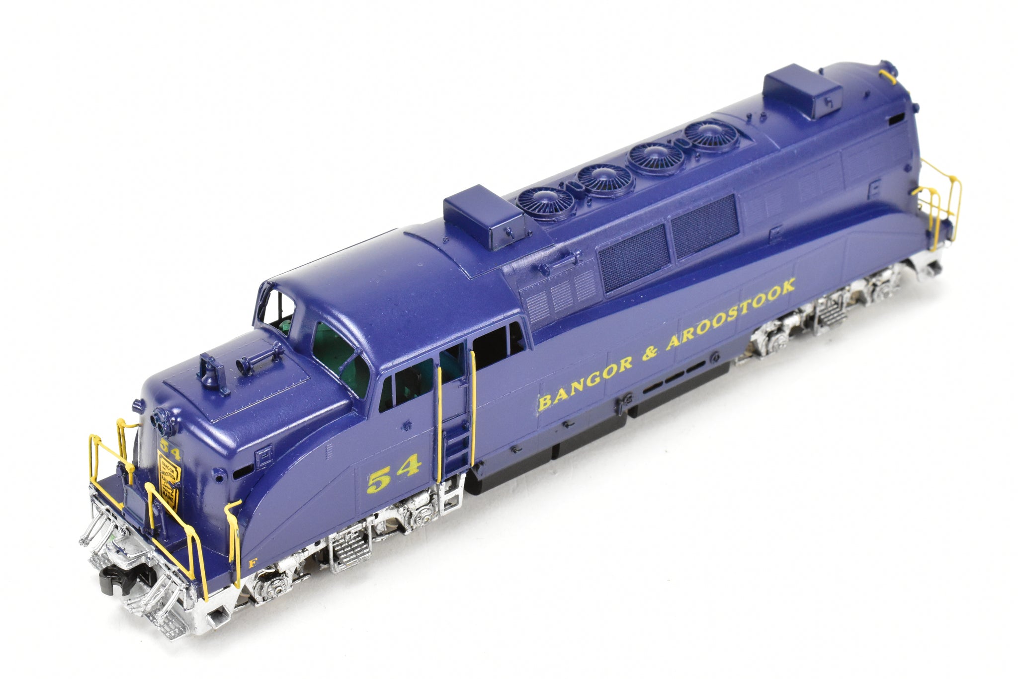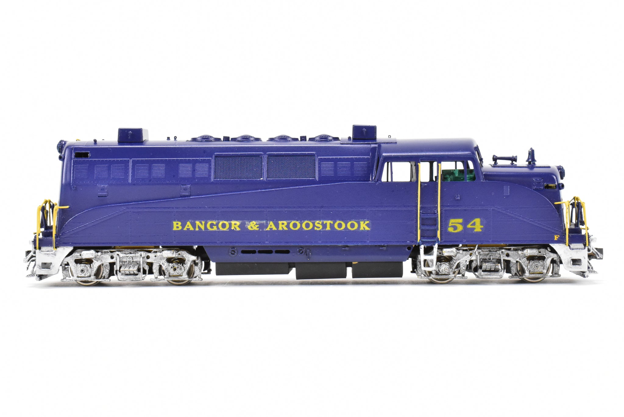 Overland Models, Inc. imported model built by Ajin in Korea. Box shows minimal wear. No spare parts packs included. Note: Runs with a occasional hesitation. Model represents a Bangor and Aroostook BL-2, with solid blue BAR paint and numbered 54. No glazing installed. Paint work is fair, with film on the decals (see photos). Model is set up with dual winterization hatches.