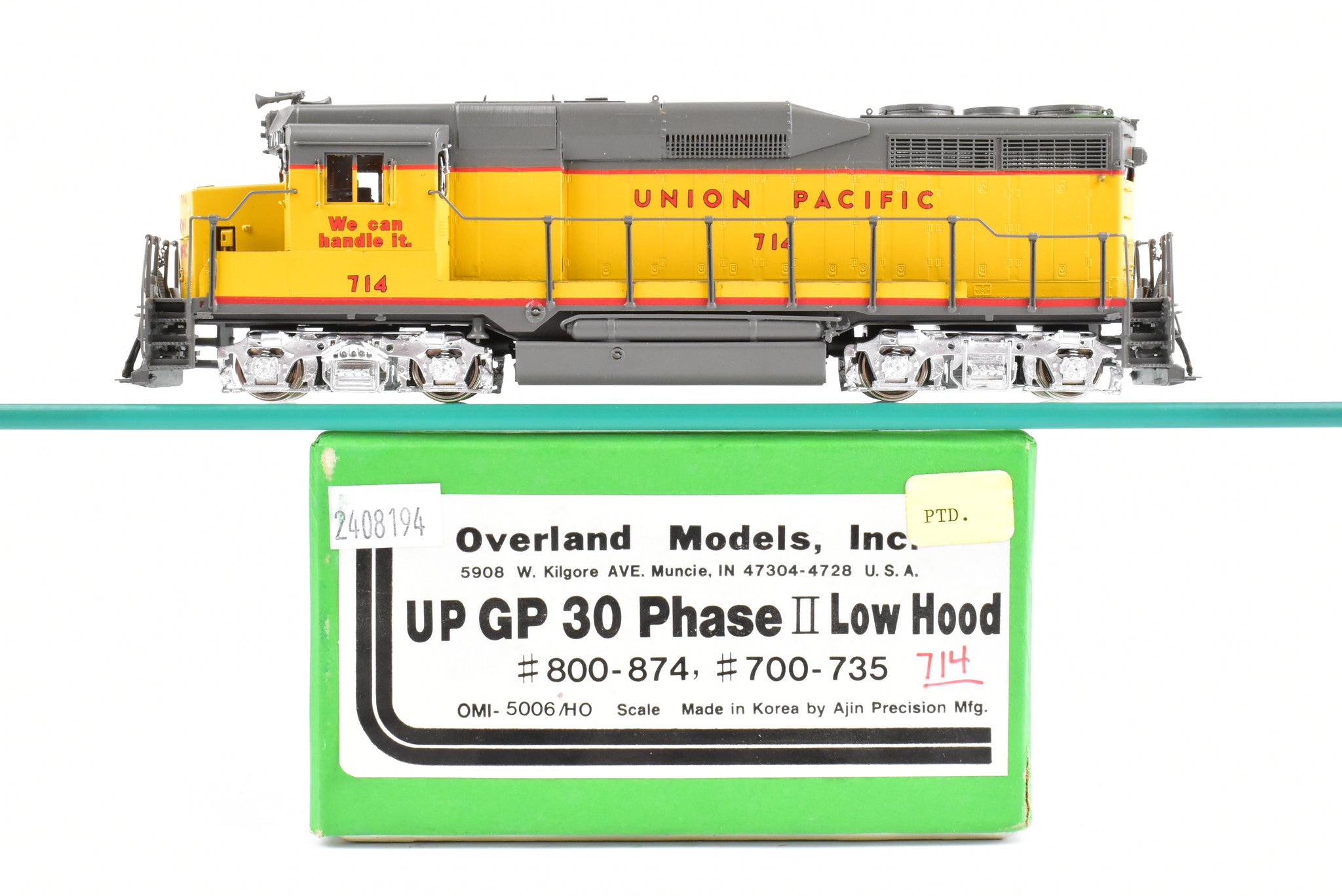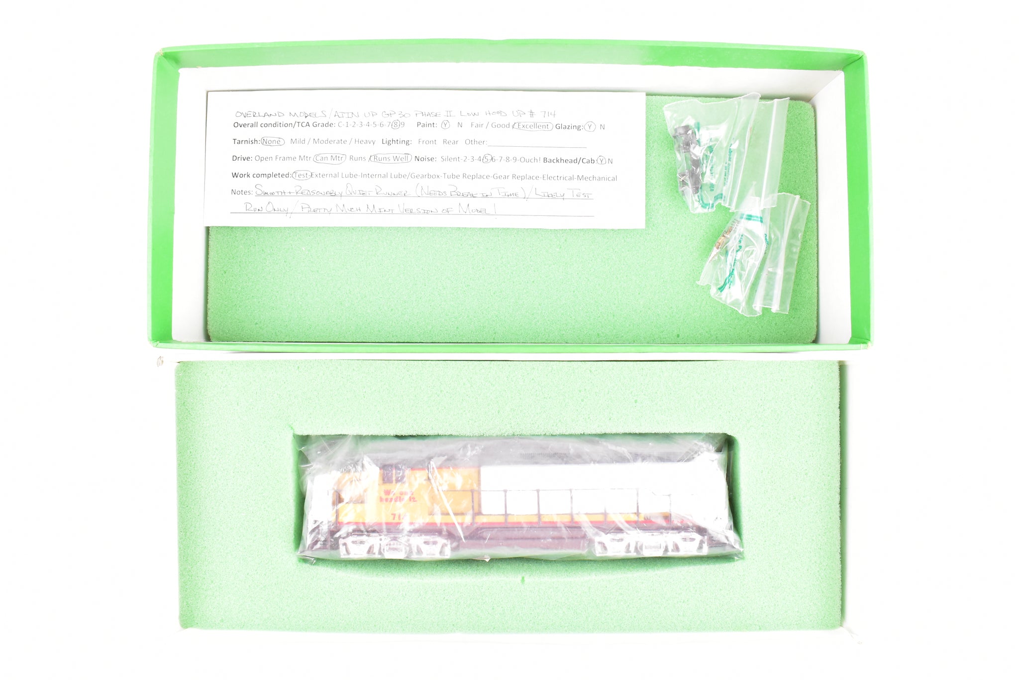 1987 run Overland Models, Inc. imported model built by Ajin Precision Mfg. in Korea. Box shows virtually no shelf wear. Two spare parts bags included. Paint job is excellent, no decal film (see photos). Nice running, reasonably quiet model for a tank drive version. This model was pretty much new in the box, likely test run only. Model needs break in time. A near mint version with an excellent paint job.
