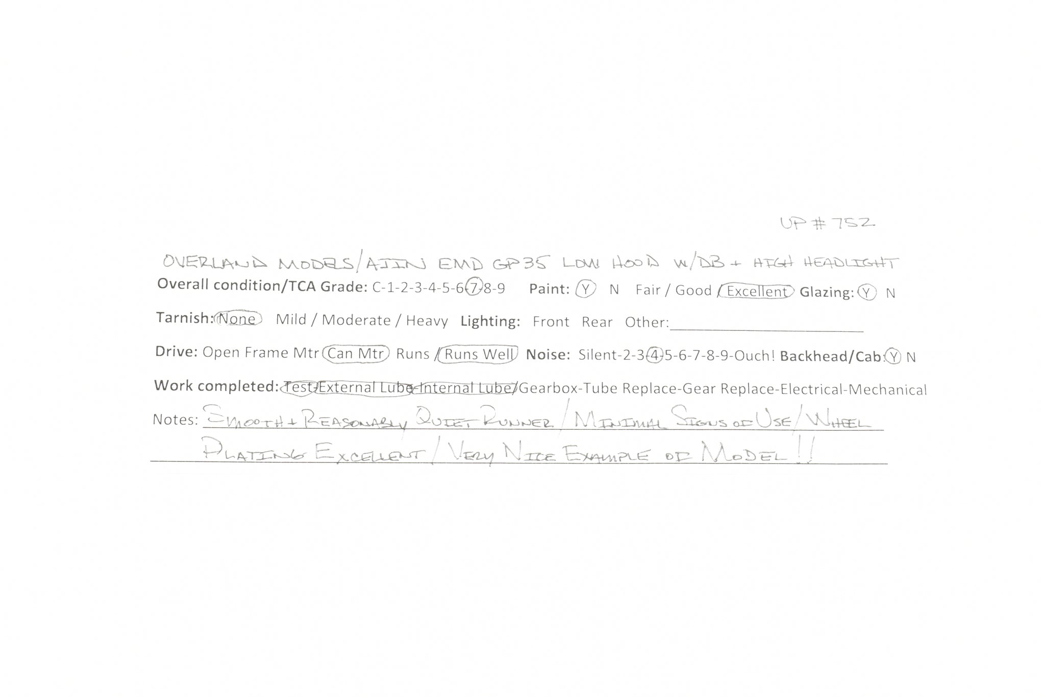 HO Brass OMI - Overland Models Inc. UP - Union Pacific EMD GP35 w/ Dynamic Brakes and High Headlight CP #752