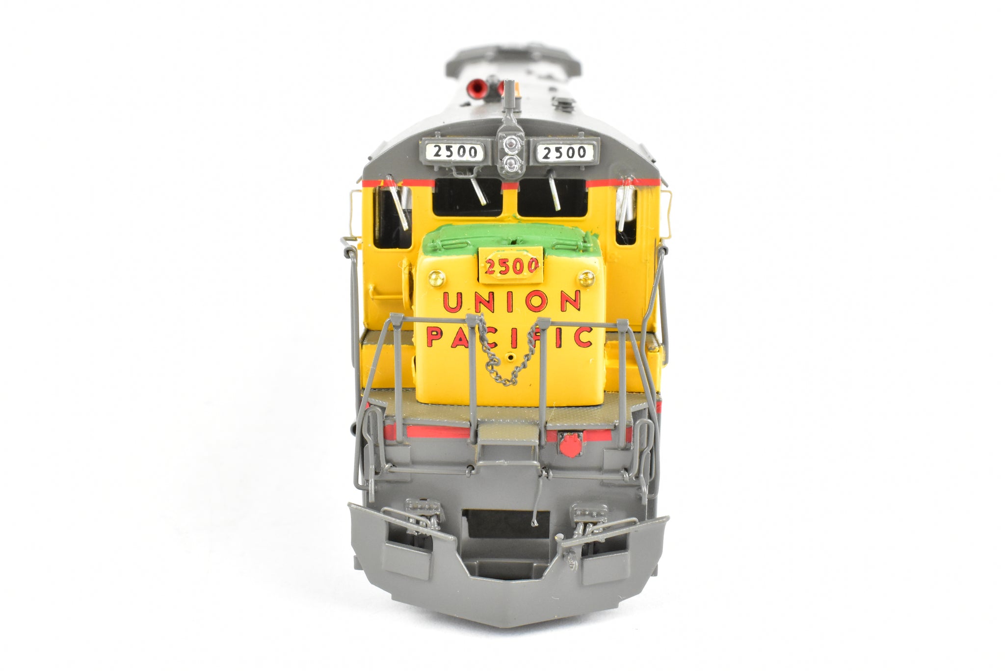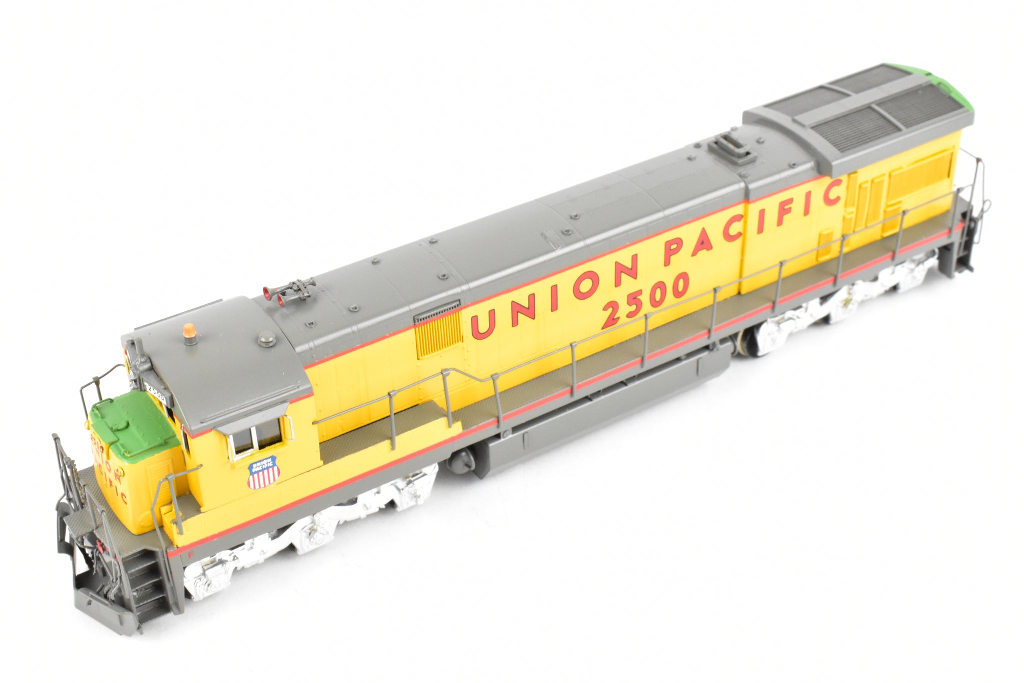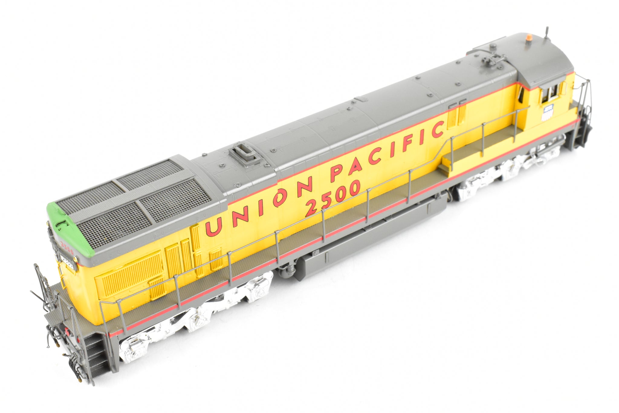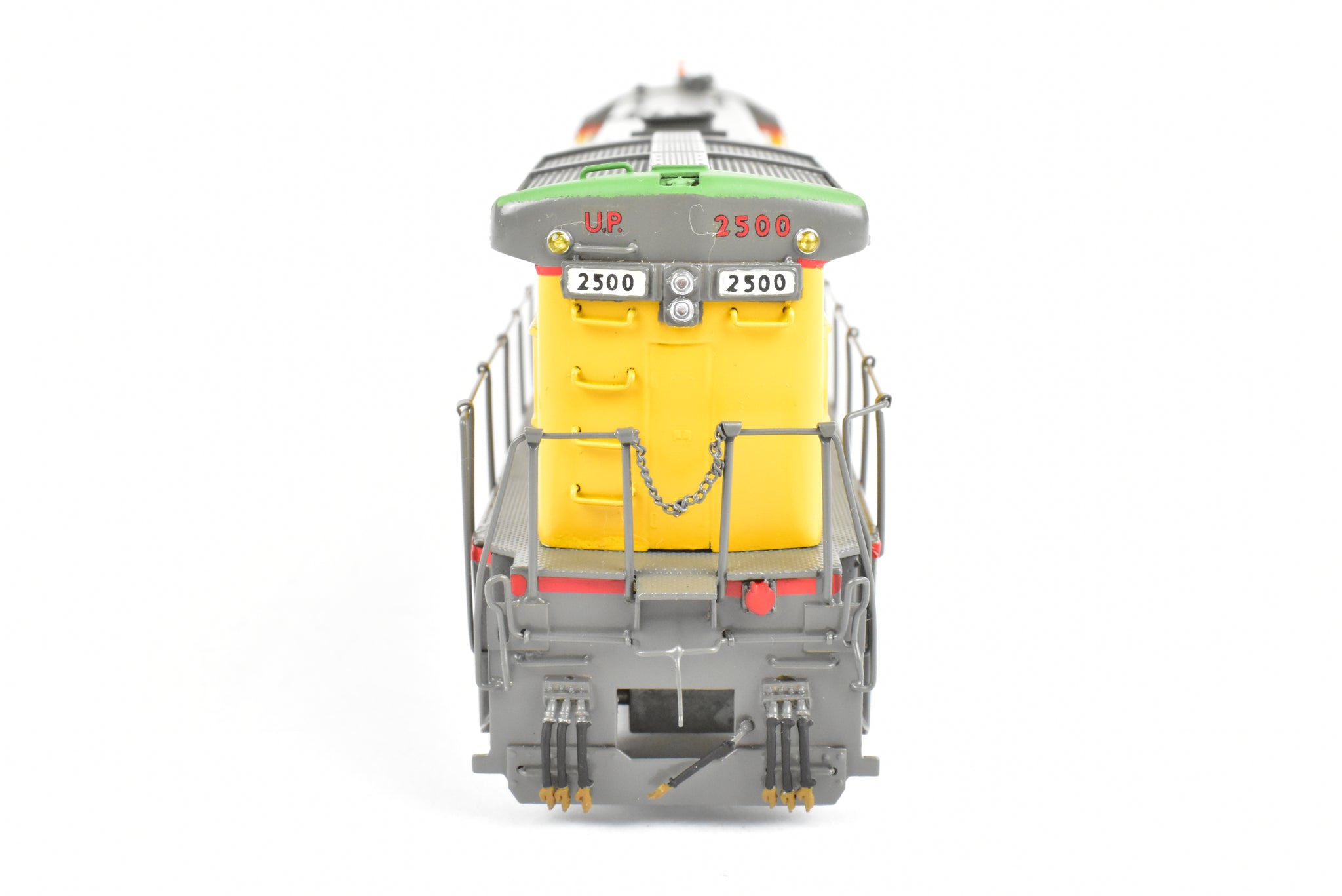 1980's run Overland Models, Inc. Imported model built by Ajin Precision Mfg. in Korea. Original box shows minimal wear. Spare parts included. Model has an excellent custom paint job in Union Pacific Yellow/Gray #2500. Represents Double-window cab version without anti climbers used by the Union Pacific. An earlier tank drive, A nice model that's a smooth, nearly silent runnier.