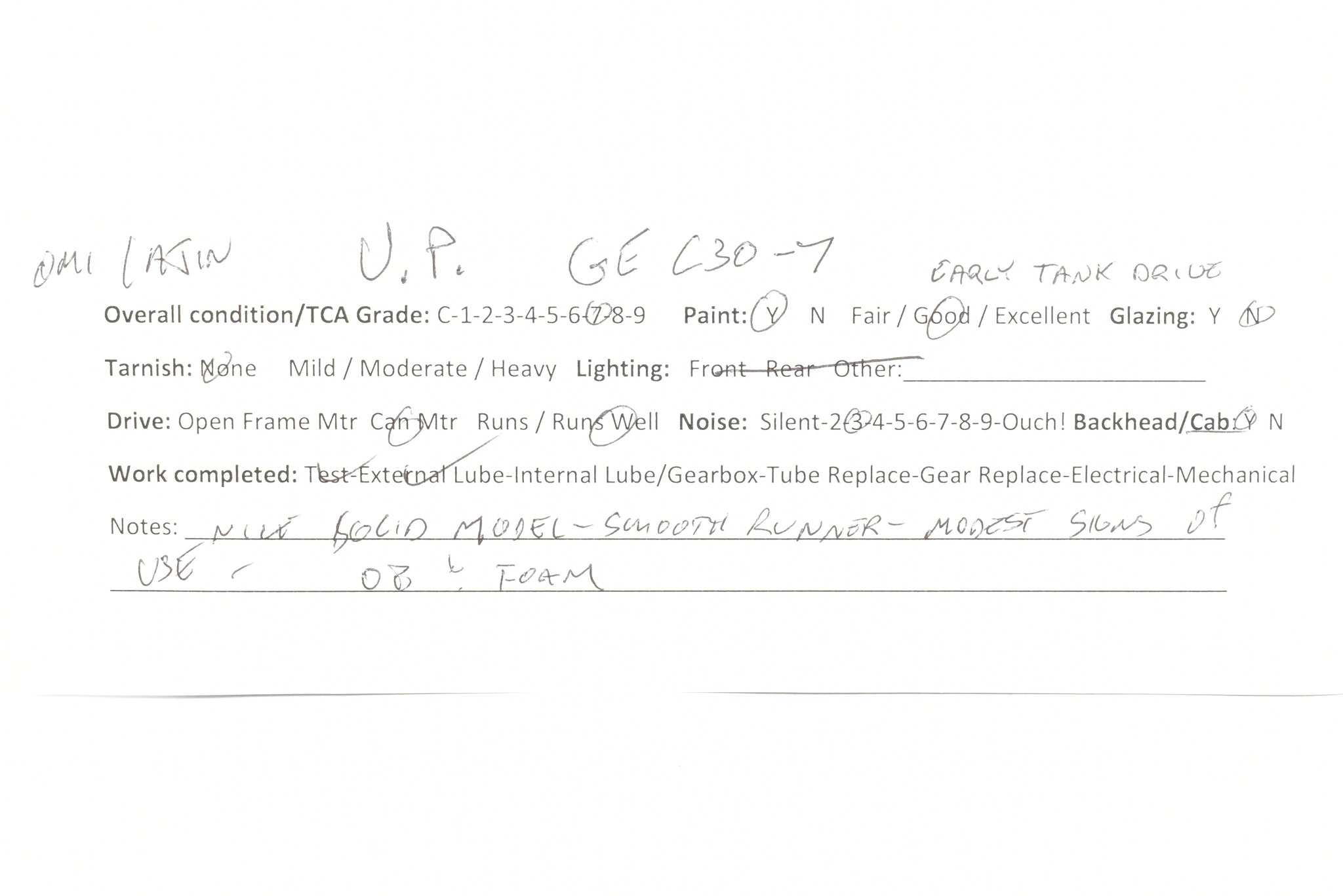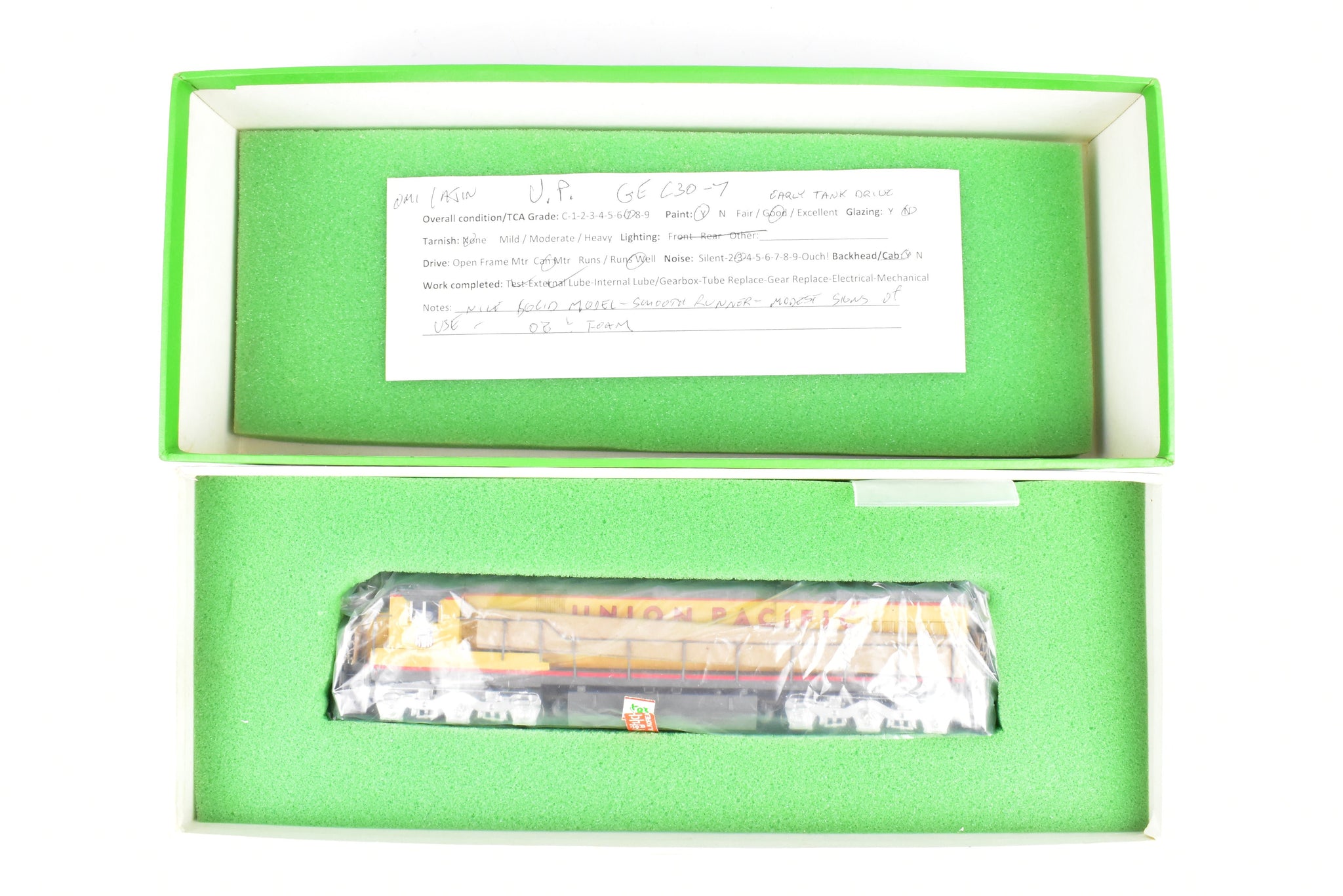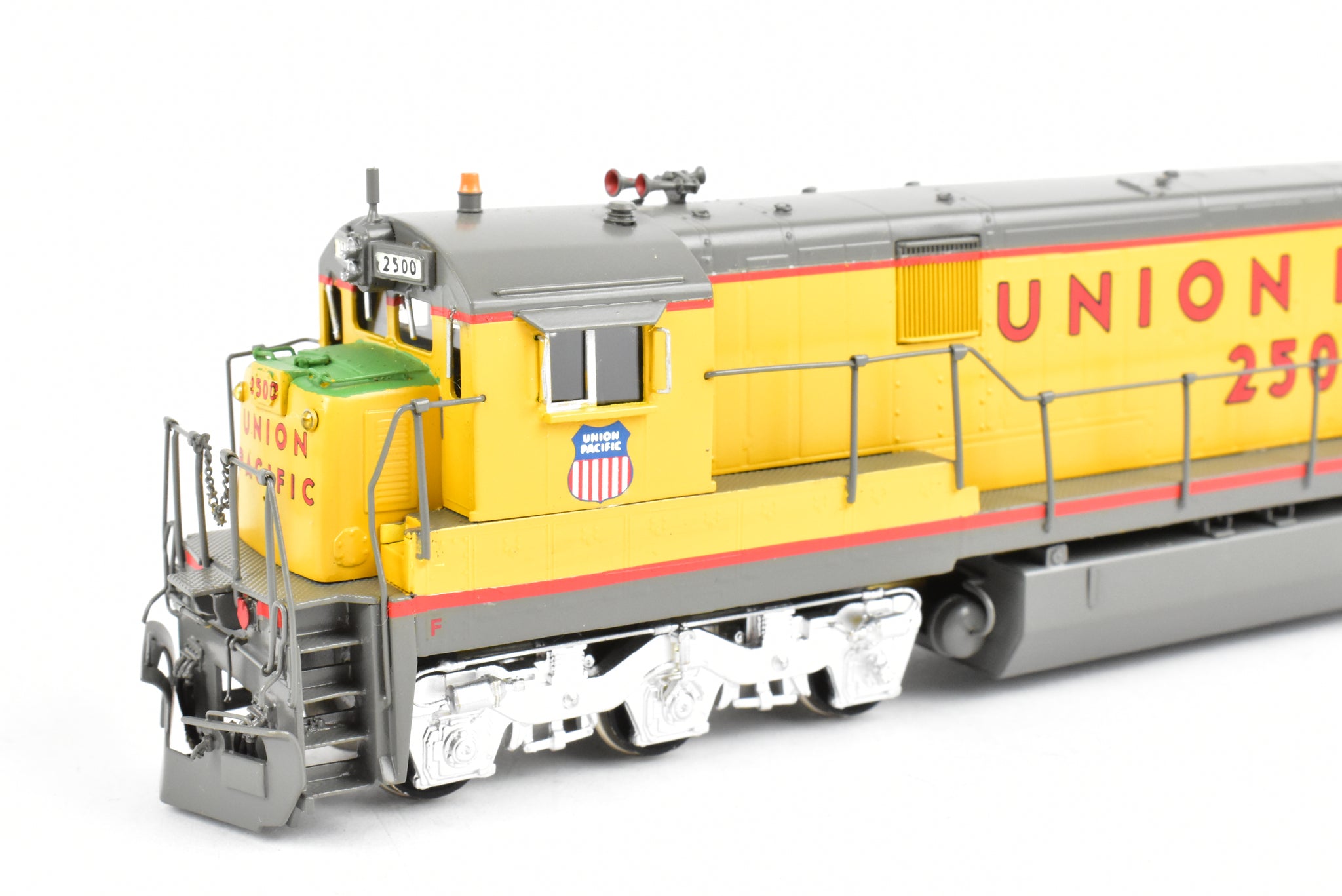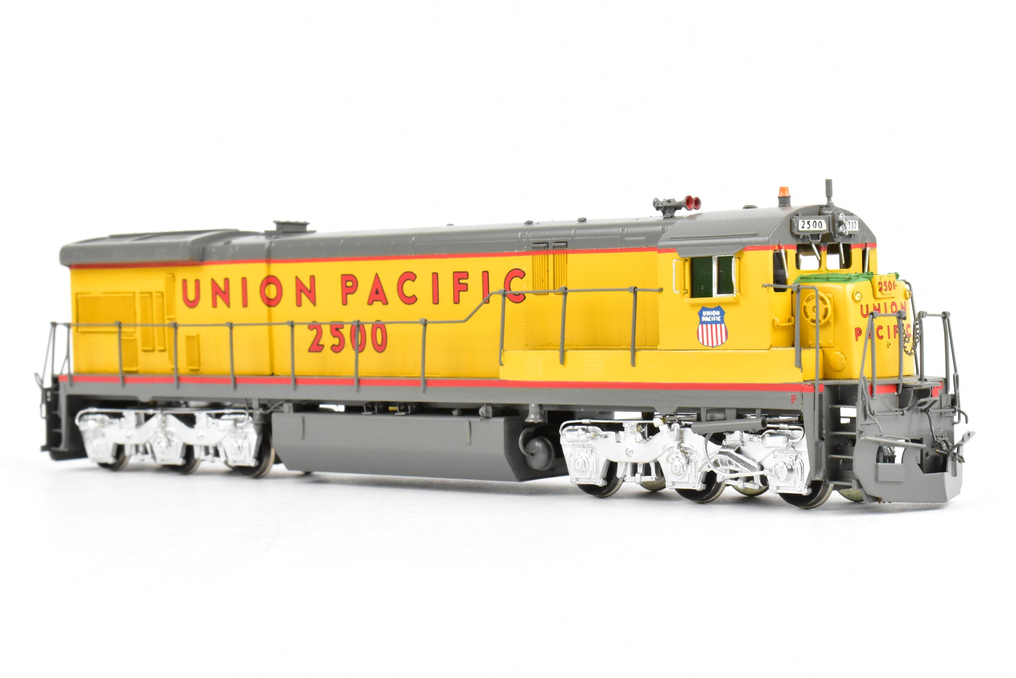 1980's run Overland Models, Inc. Imported model built by Ajin Precision Mfg. in Korea. Original box shows minimal wear. Spare parts included. Model has an excellent custom paint job in Union Pacific Yellow/Gray #2500. Represents Double-window cab version without anti climbers used by the Union Pacific. An earlier tank drive, A nice model that's a smooth, nearly silent runnier.