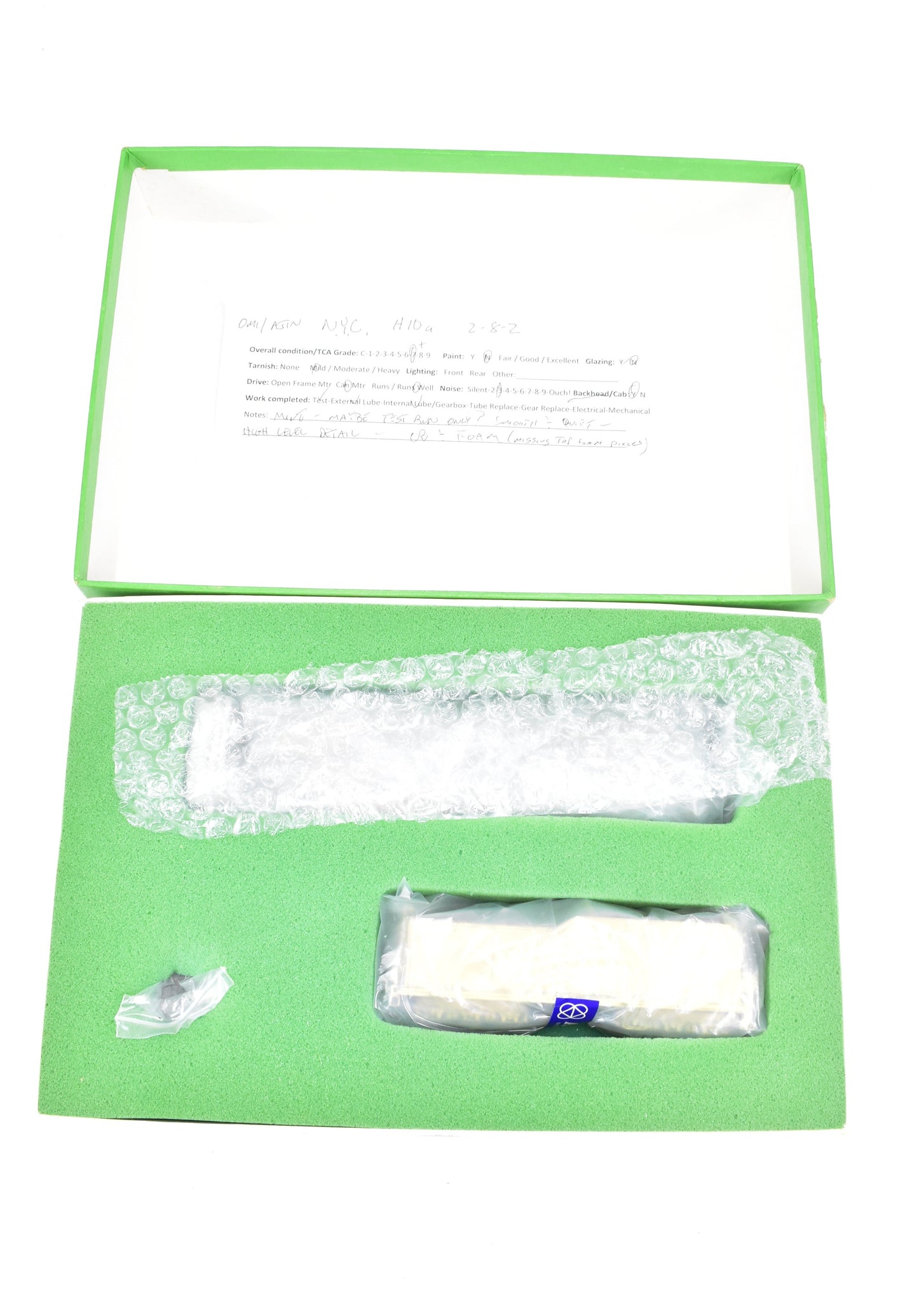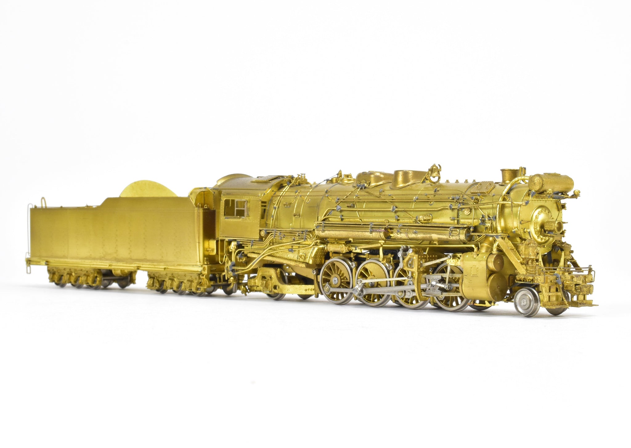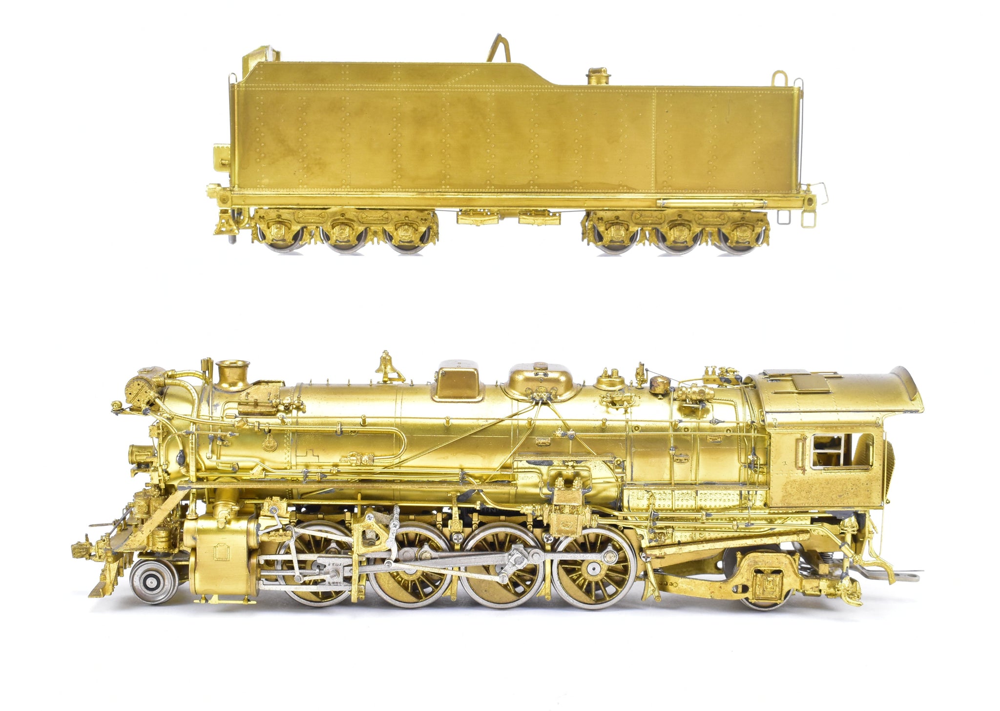 1989 last run Overland Models, Inc. imported model built by Ajin in Korea. Box shows minimal shelf wear. Spare parts included. 6-axle tender version. Hex head side rod bolts. Brutish looking locomotive with the Elesco feedwater heater. Sound ready model. Sound cam front driver axle. Tender is factory drilled for speaker. Exceptional detail on a beautiful model. Smooth and very quiet runner with minimal wheel wear.