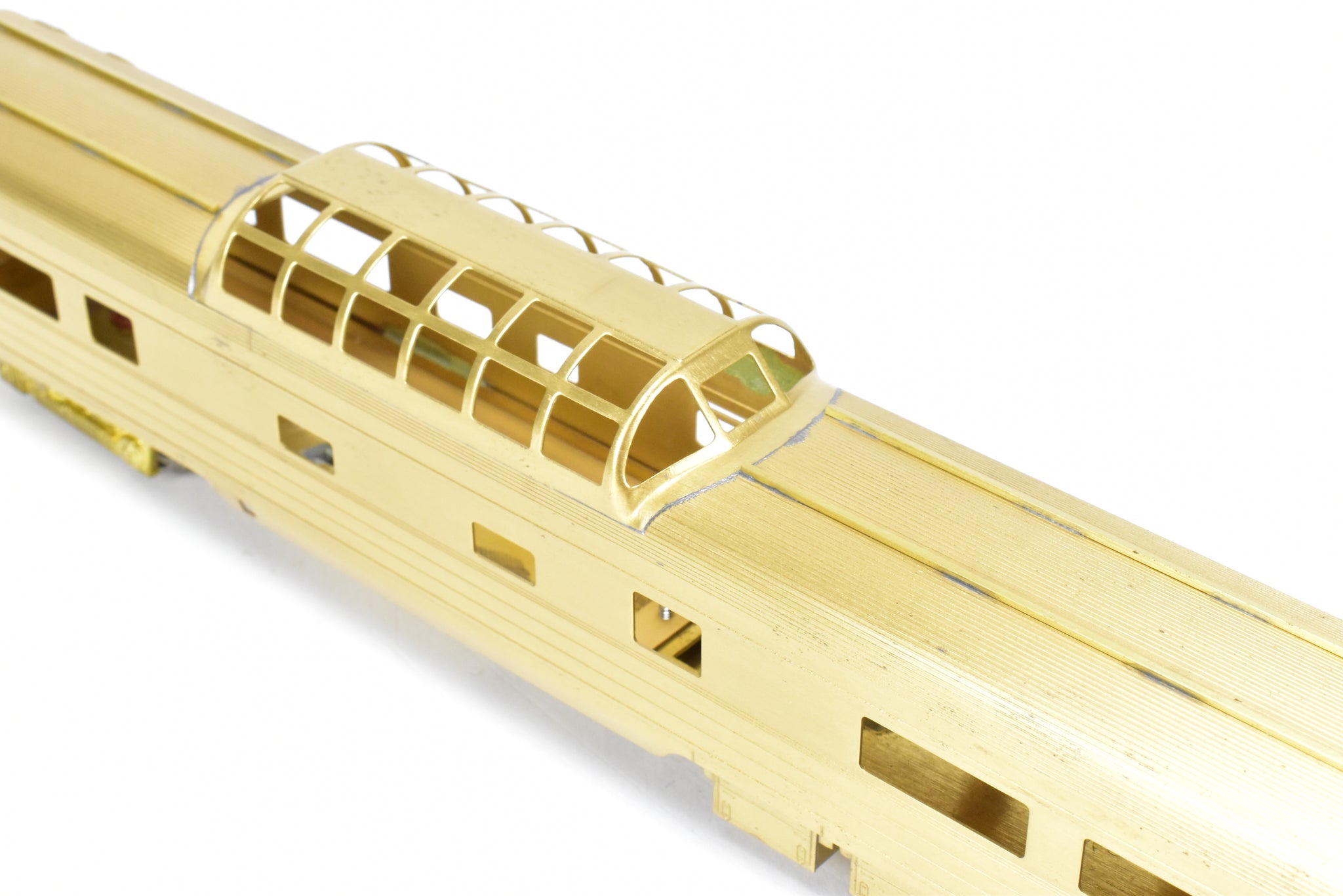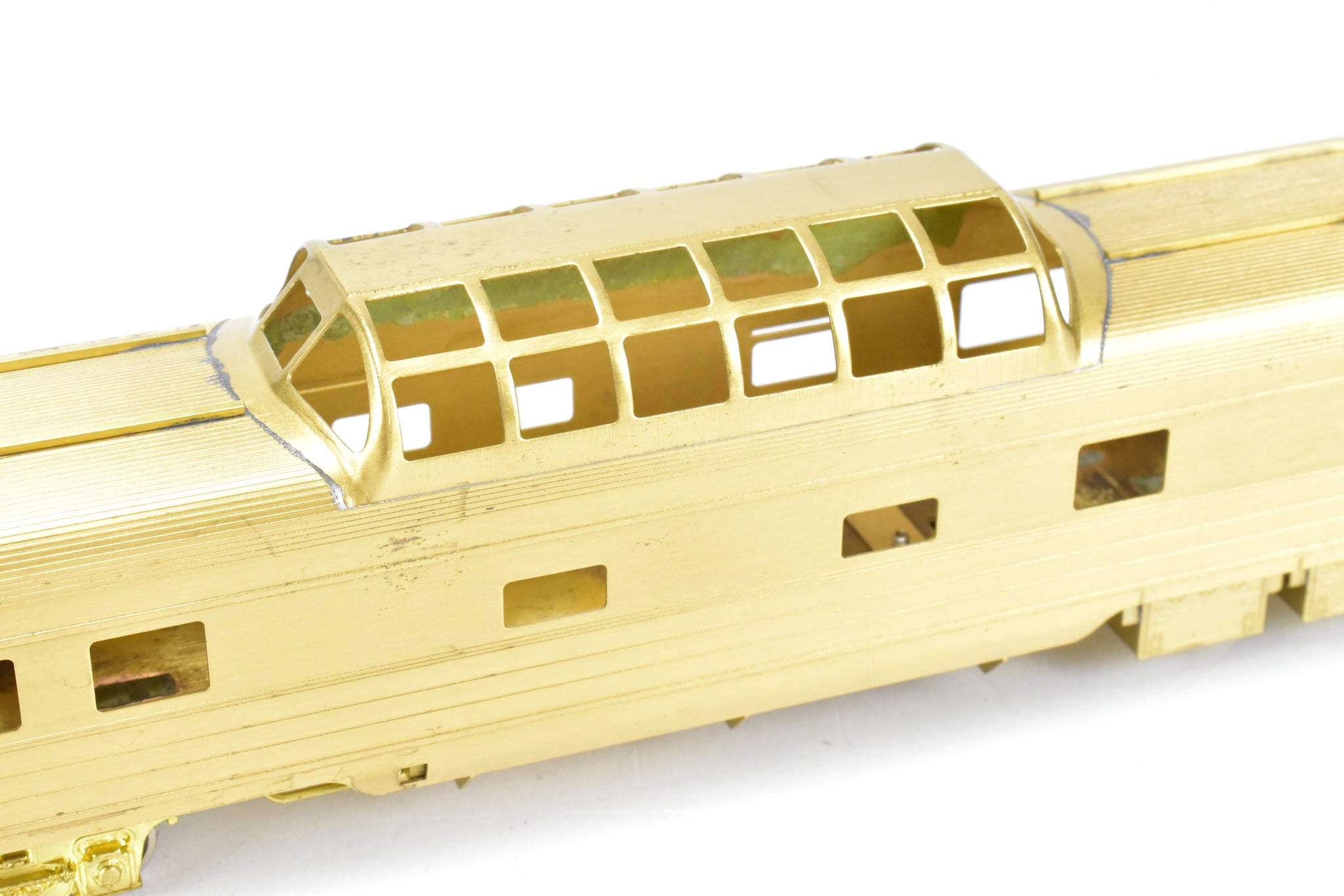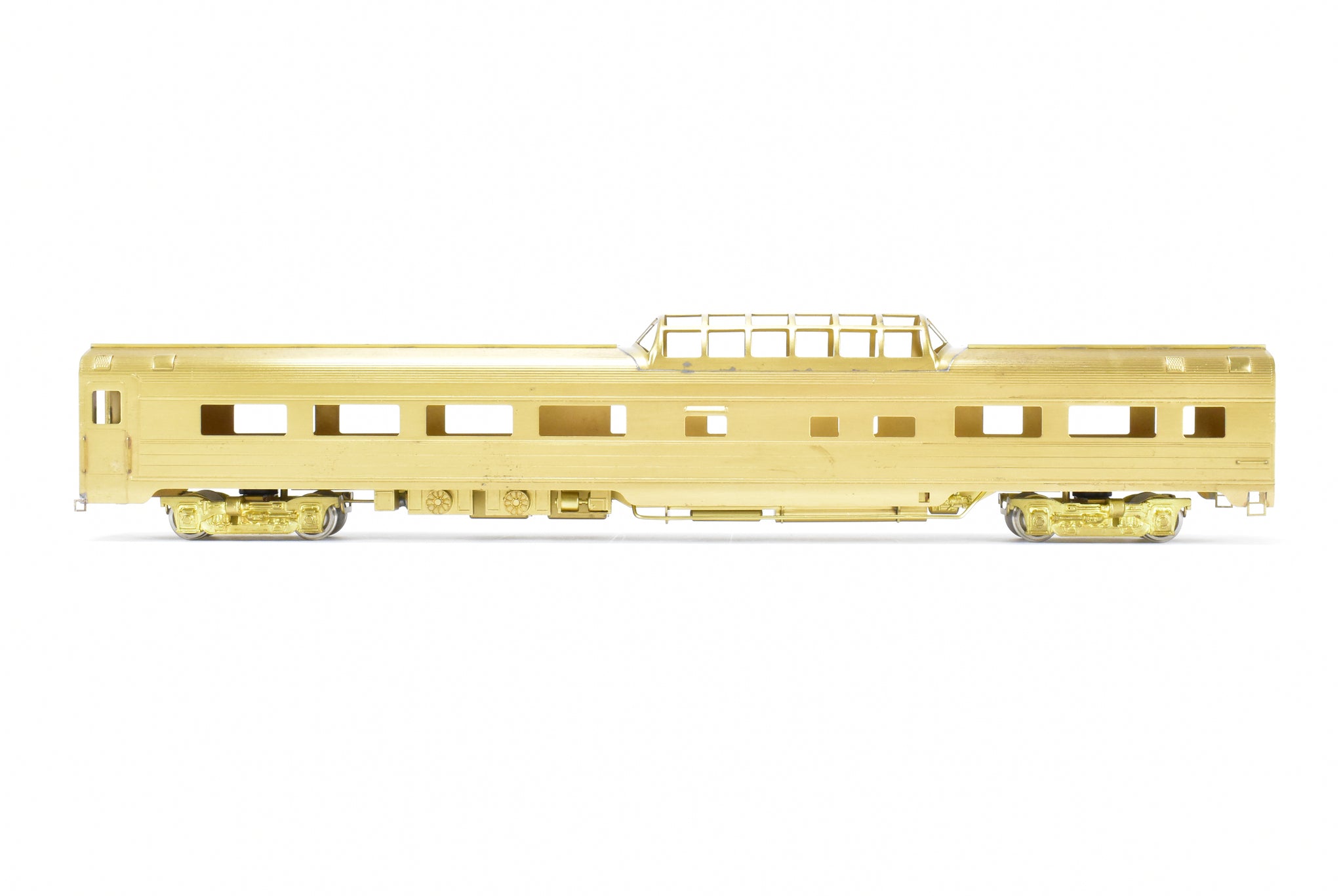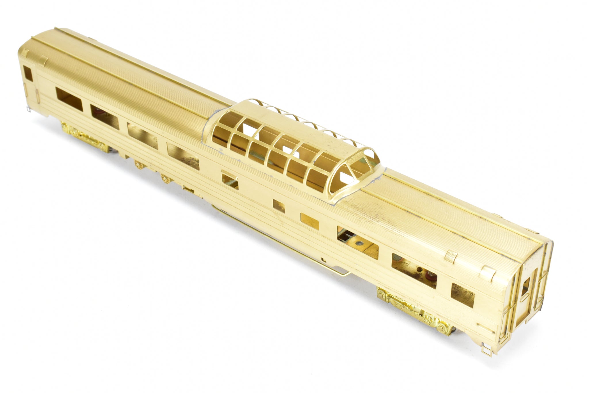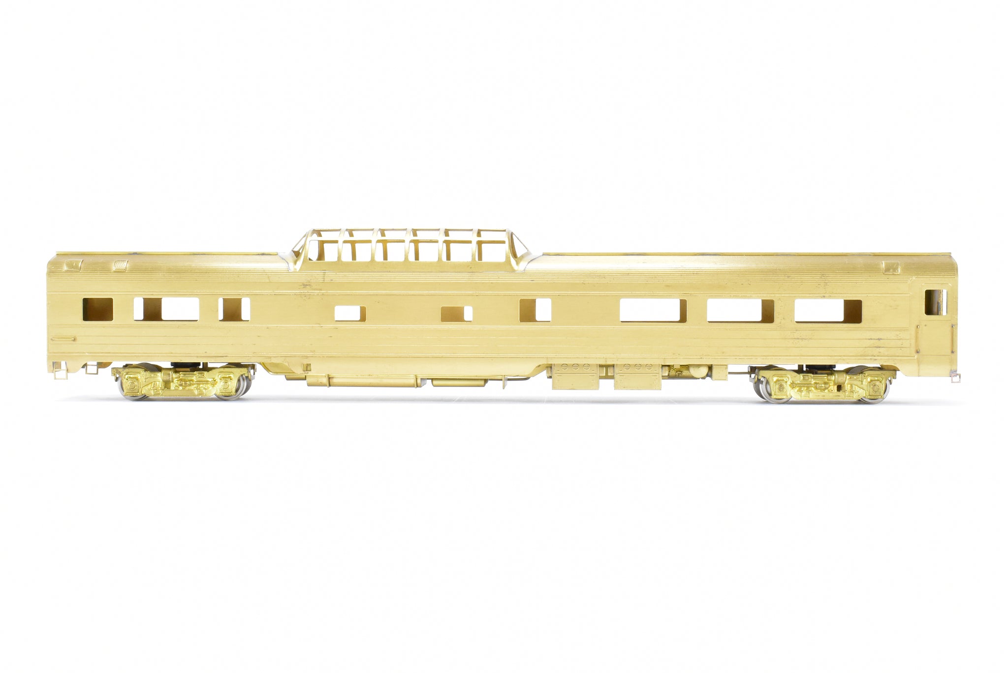 1983 Oriental LTD. imported model built by KMT in Japan. Box shows minimal shelf wear. Coupler screws and diaphragms included. These Budd Job 9646-141 cars were built and delivered in June 1954. NP ordered eight dome coaches, CB&Q ordered two (No. 557-558), and SP&S ordered one (No. 559). These cars were built to equip the Lowey designed North Coast Limited in 1954. All 11 of these cars went to Amtrak in May 1971.