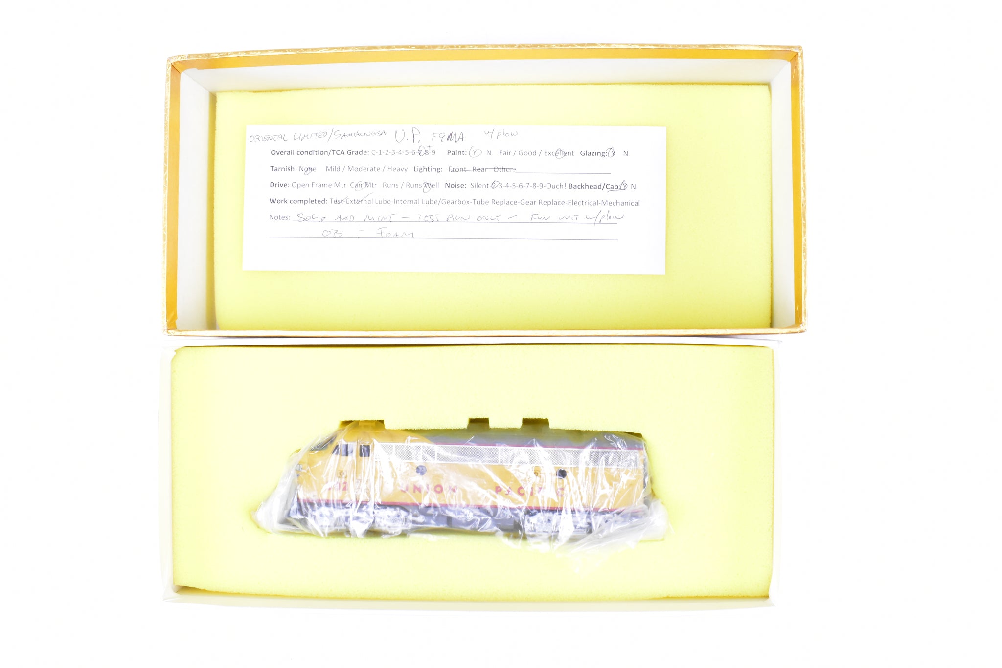 1984 run Oriental Limited model built by Samhongsa in Korea. Box shows minimal wear. No spare parts included. This model represents an F3A that was rebuilt by UP to F9am standards. Model is factory painted, numbered 502. Certain F units were equipped with the big snowplow. This locomotive represents an Oregon, Washington, and Navigation Co. (the Pacific Northwest division of the UP) locomotive circa 1960's. Model has been test ran only.
