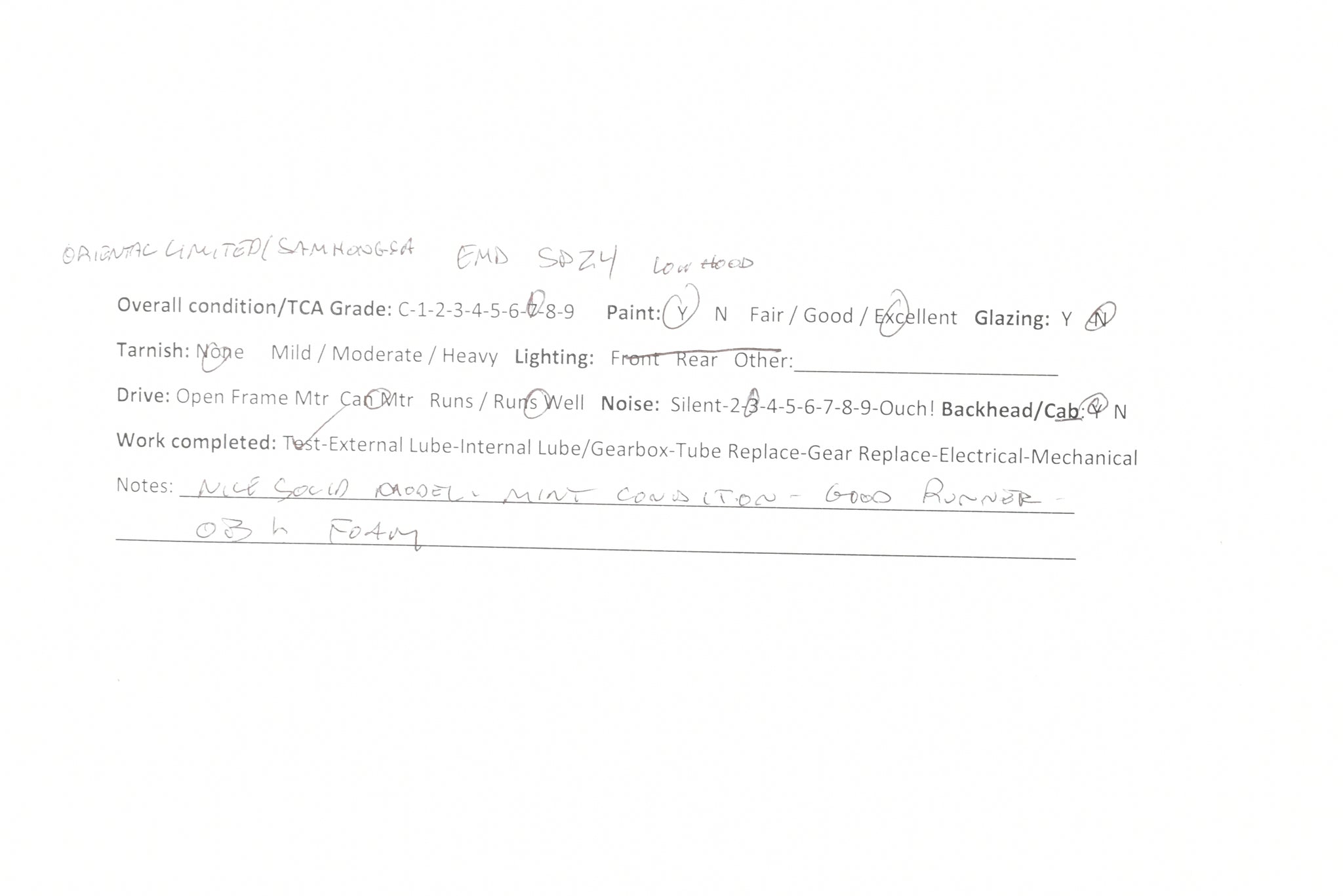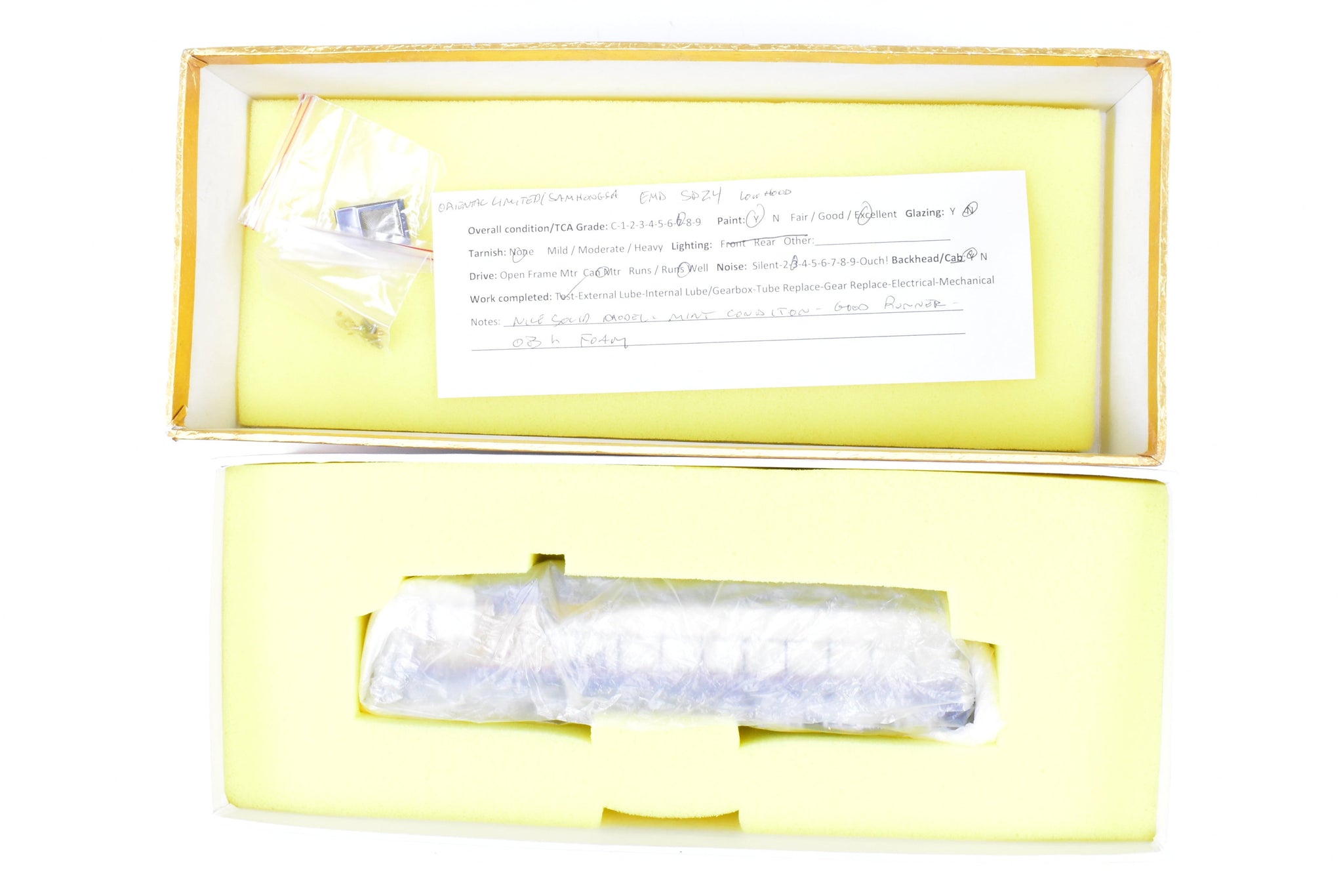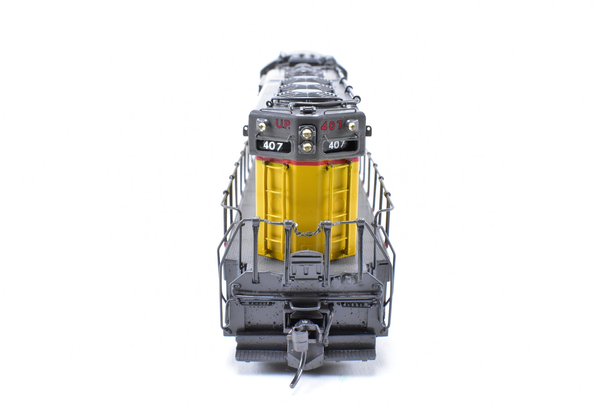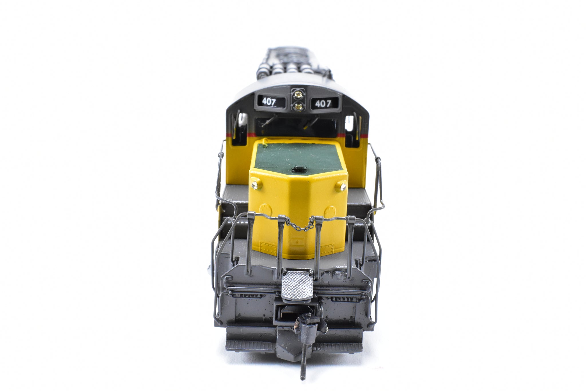 1984 run Oriental Limited model built by Samhongsa in Korea. Box shows some shelf wear. Spare parts included. Low hood version custom painted for Union Pacific road number 407. MV Lenses, window glazing, and number board decals are installed. A smooth running, quiet model that shows little use.