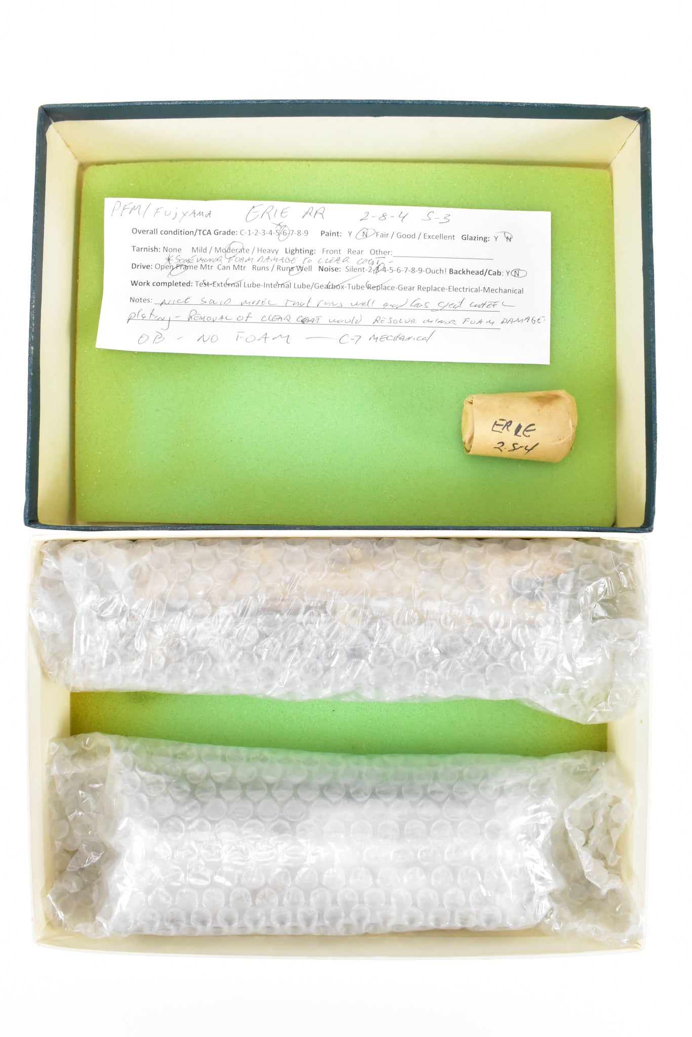 1966 run PFM - Fujiyama imported model built by Fujiyama - Kogyo in Japan. Box shows minor shelf wear. Original foam replaced with bubblewrap. Spare parts and boiler weight included. Model recently serviced with new drive tube installed and complete gearbox clean out. There is minor foam damage but paint preparation would resolve this issue. Note: Previous owner may have changed a couple of details to make this a S-3 model - please see photos and make your own judgement.