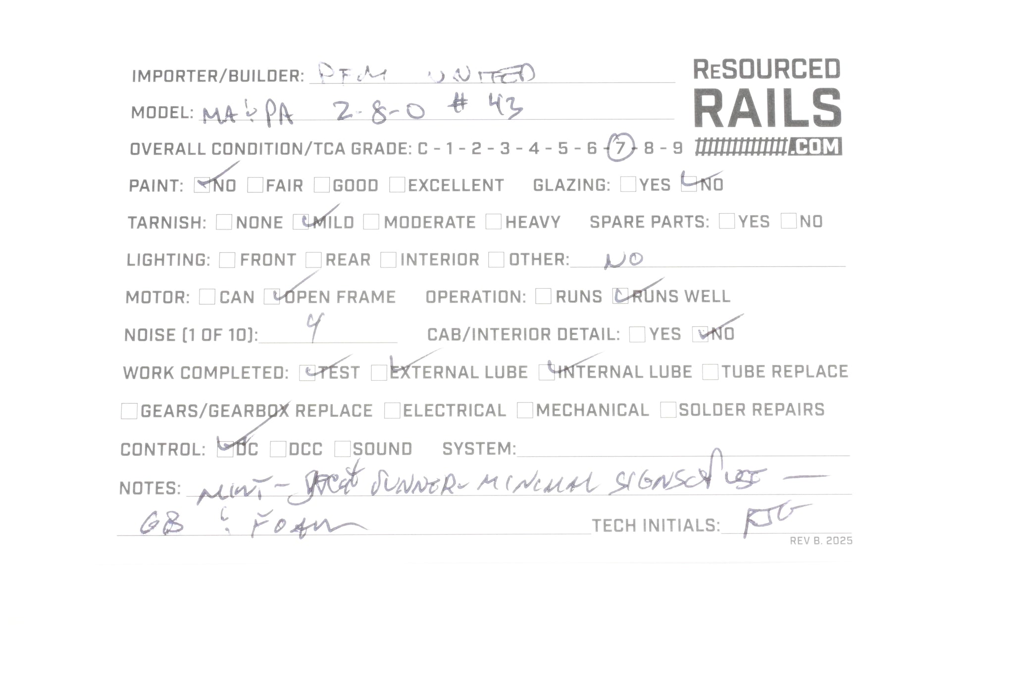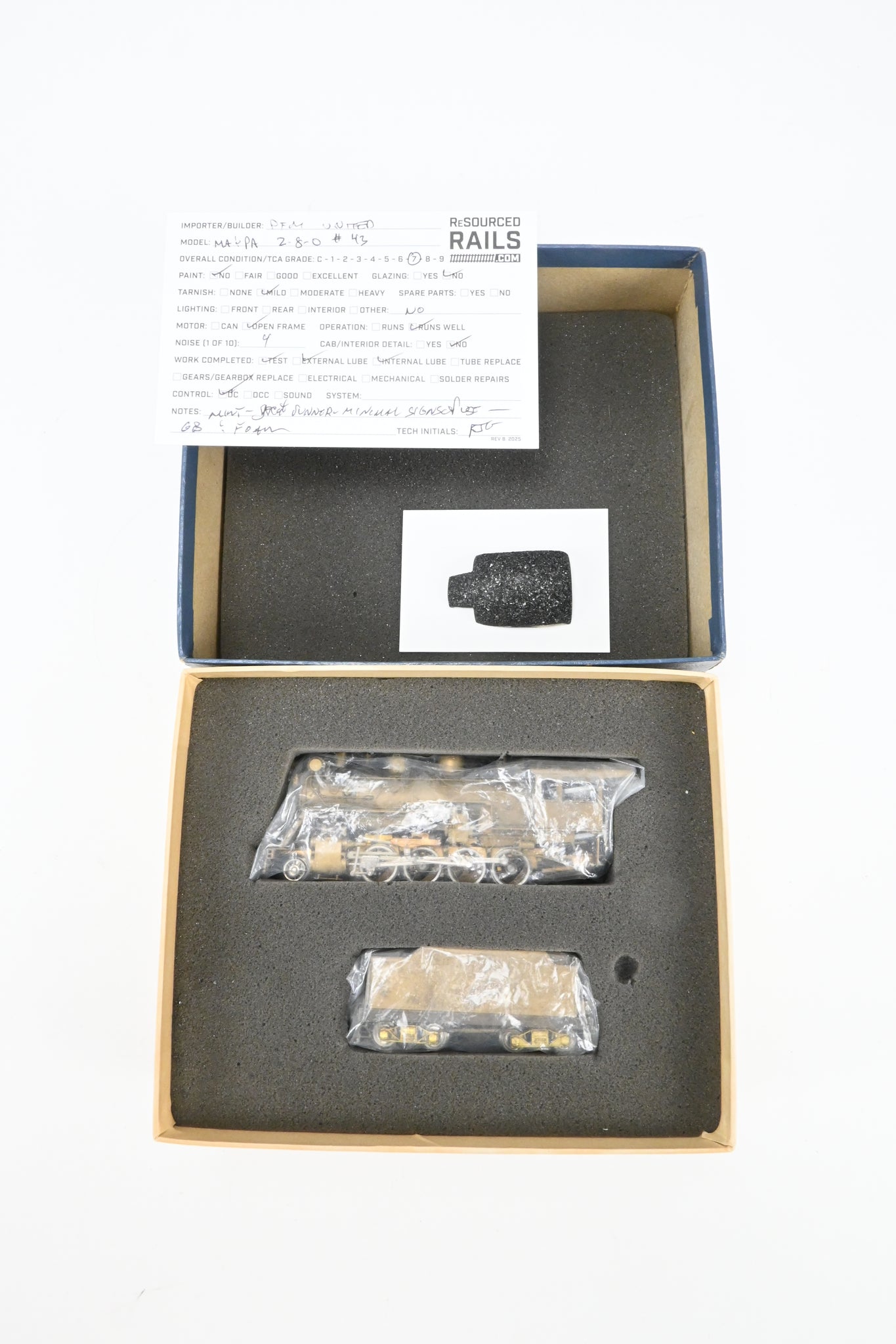 1971 run Pacific Fast Mail imported model built by Atlas Industries in Japan. Box shows minimum wear. No spare parts included. Represents locomotive #43. This is the modern version, with Elesco Feedwater heater. Sweet and solid built model. A great model with minimal signs of use.