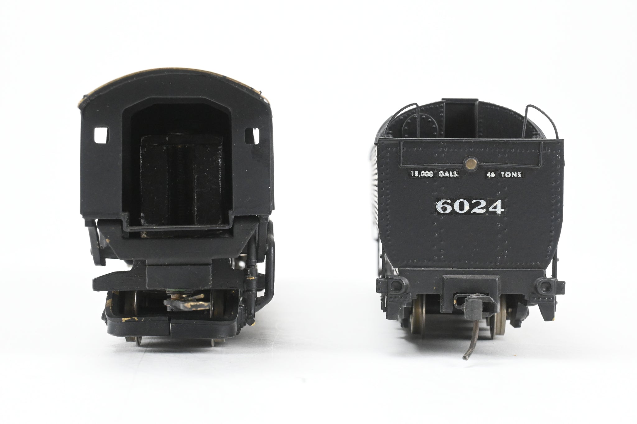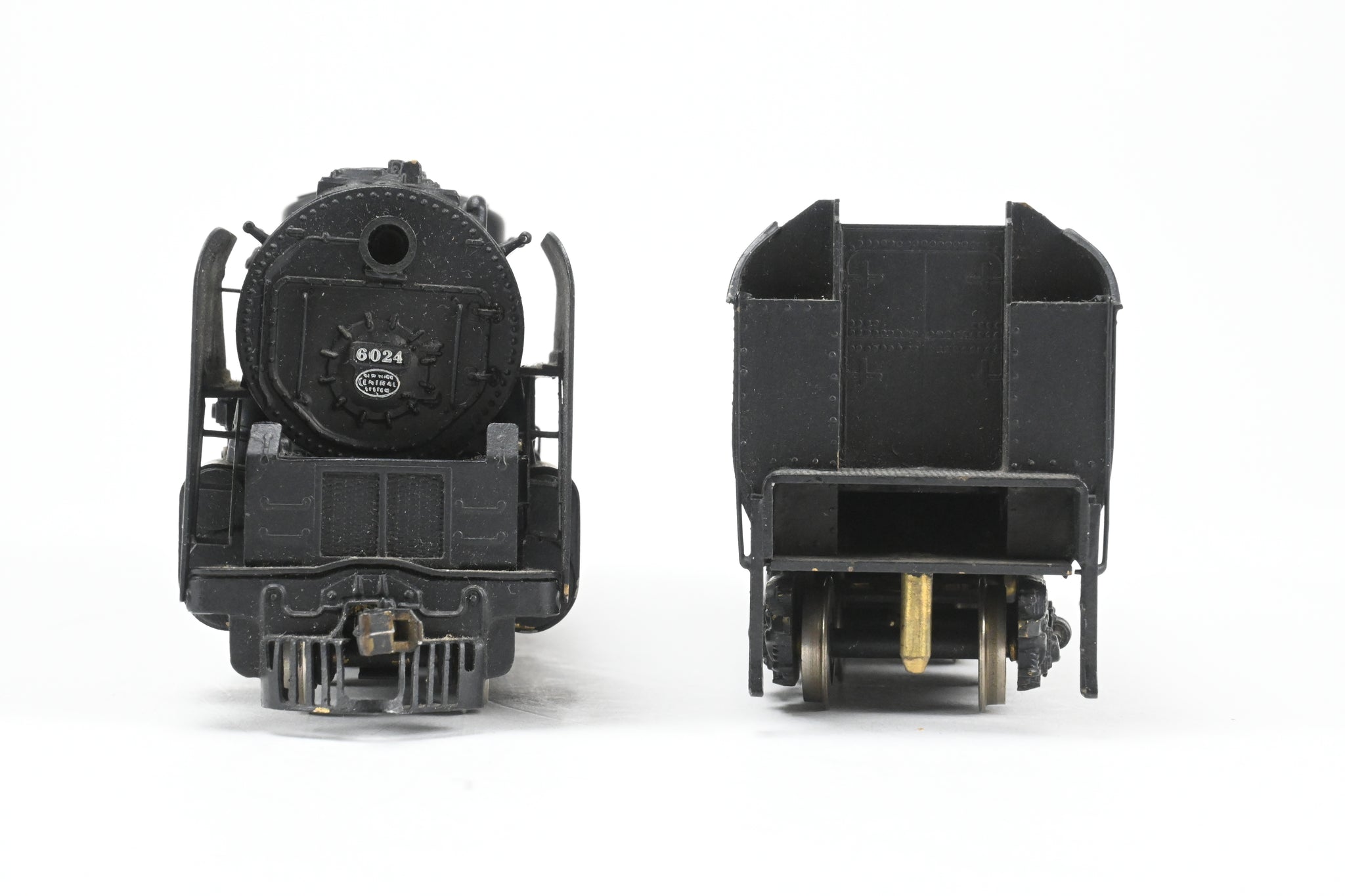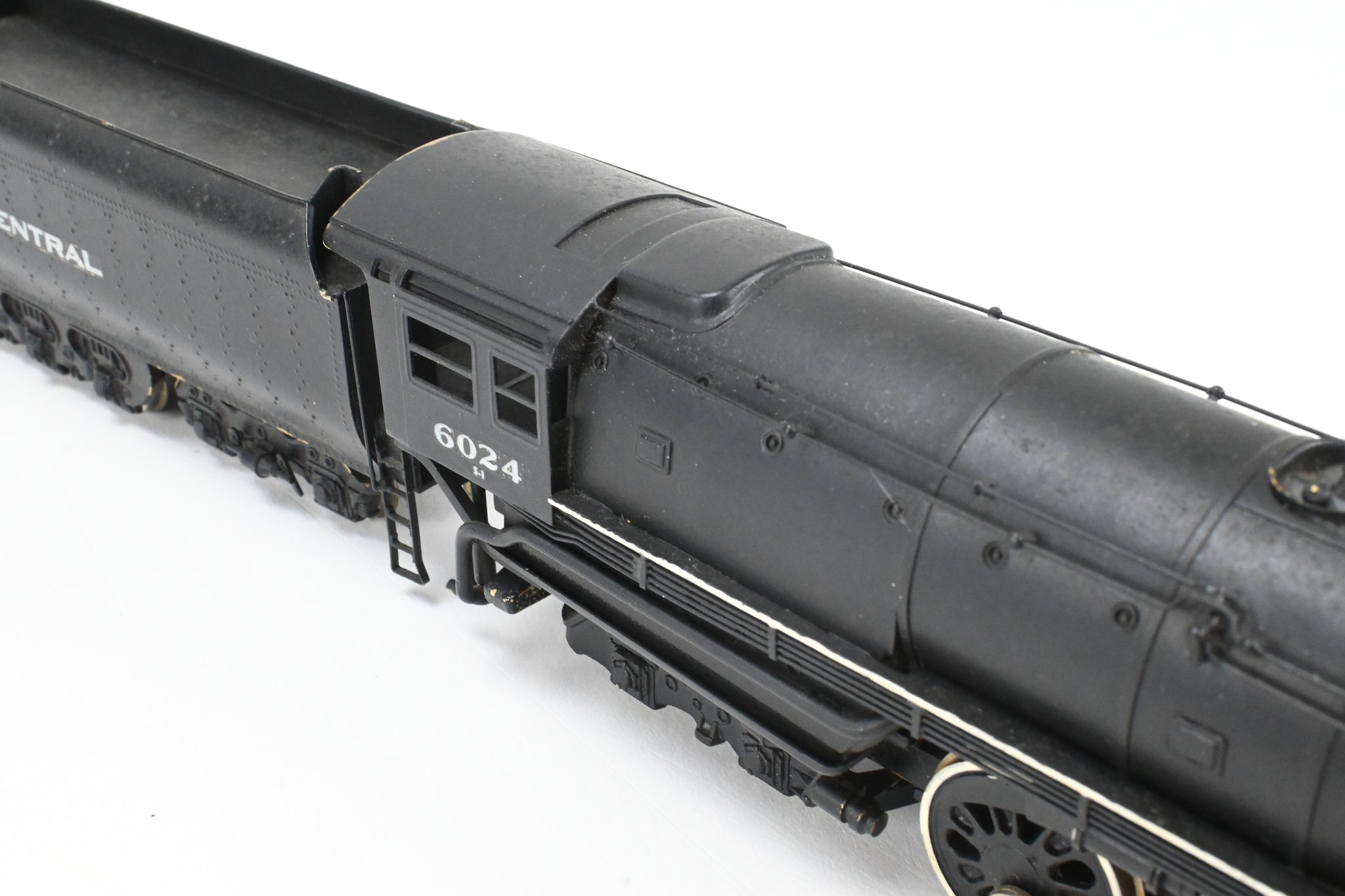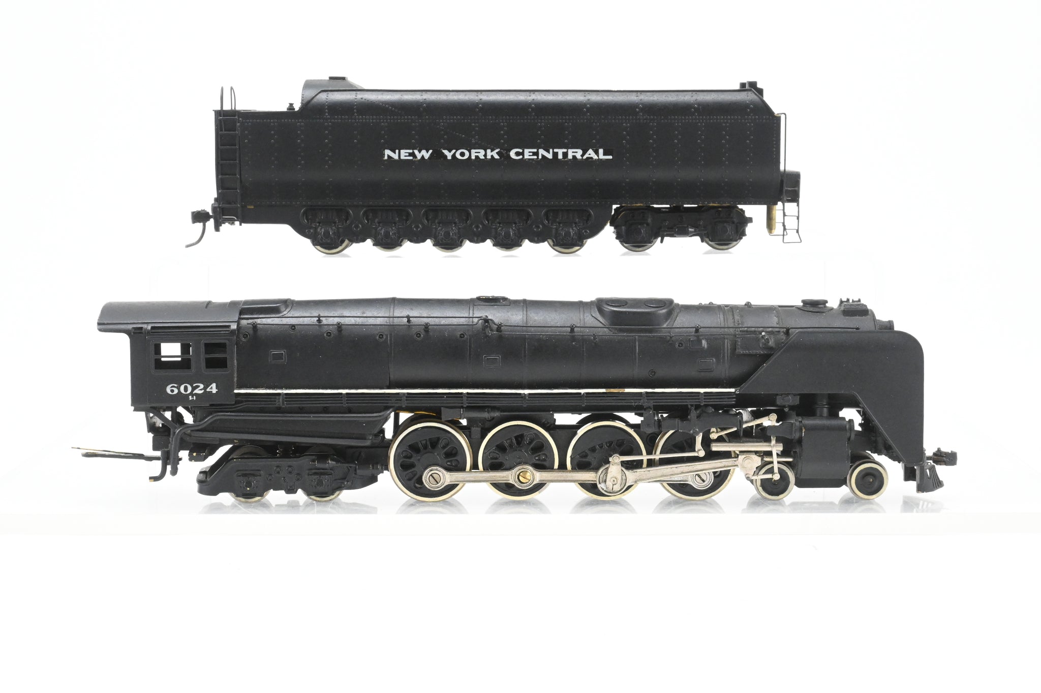 1959 run Pacific Fast Mail model built by United in Japan. Original box shows minimal shelf wear. Model has a fair paint job with wear and is numbered #6024 - see photos. This model shows signs of heavy use, but it is a smooth and quiet running engine. A decent example of a vintage Japanese brass model.