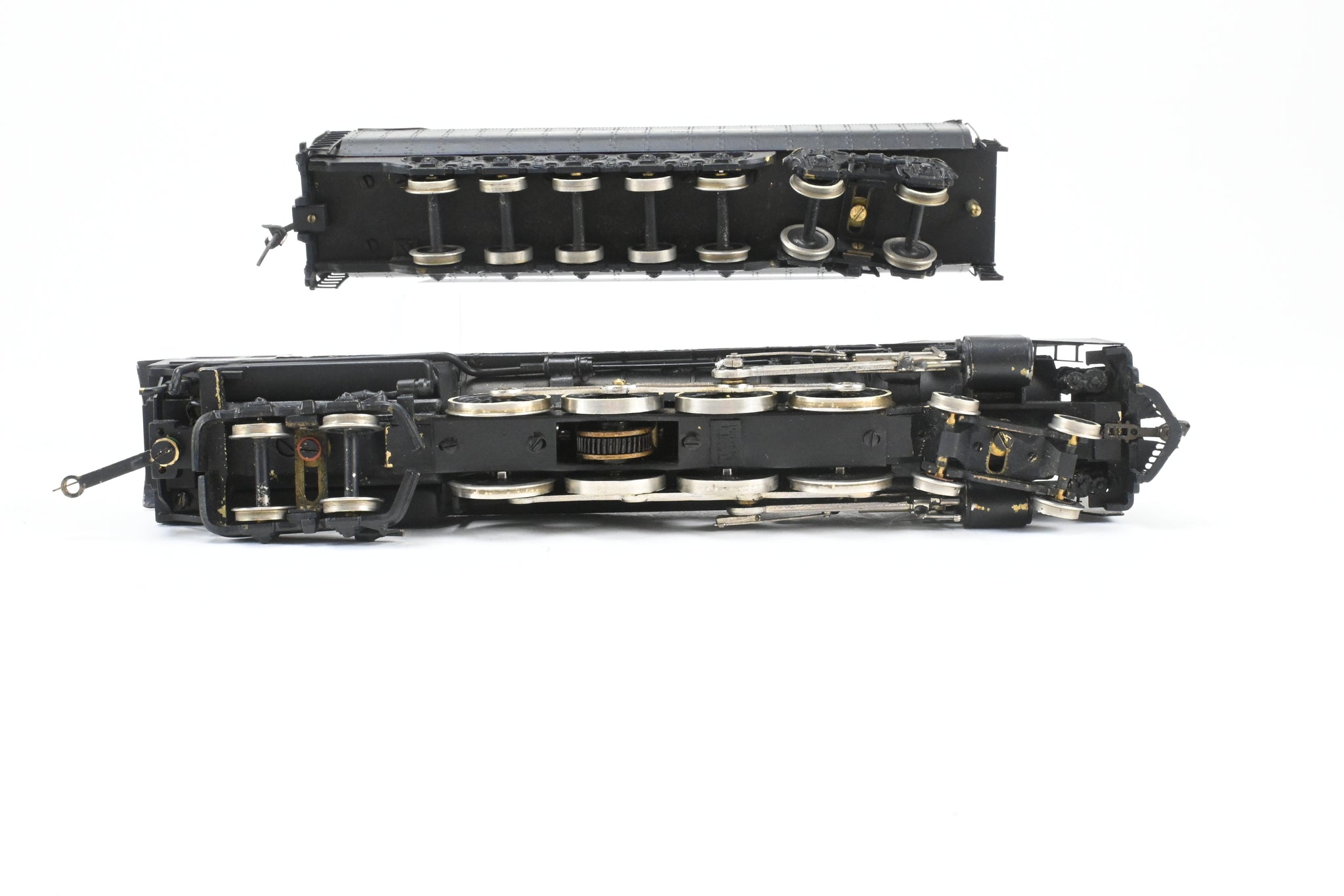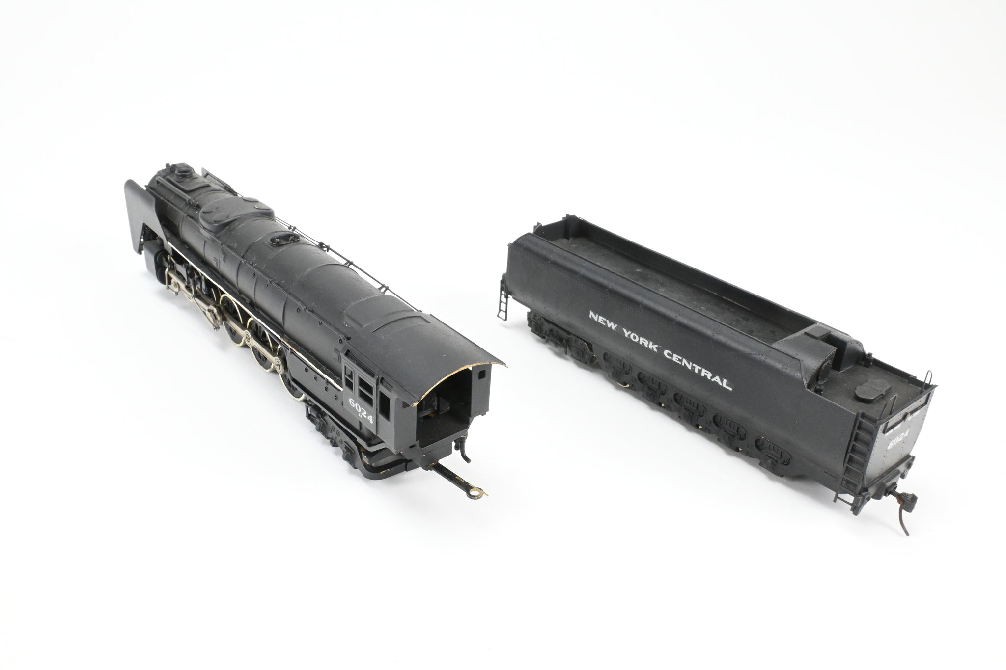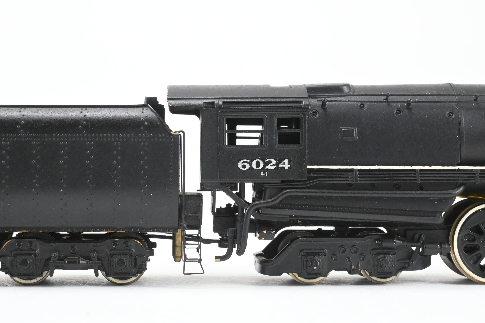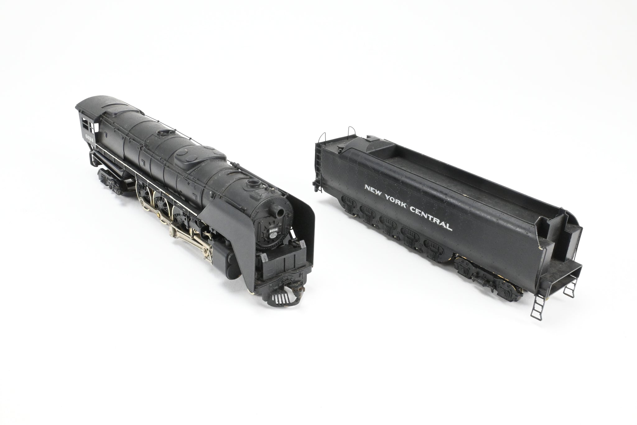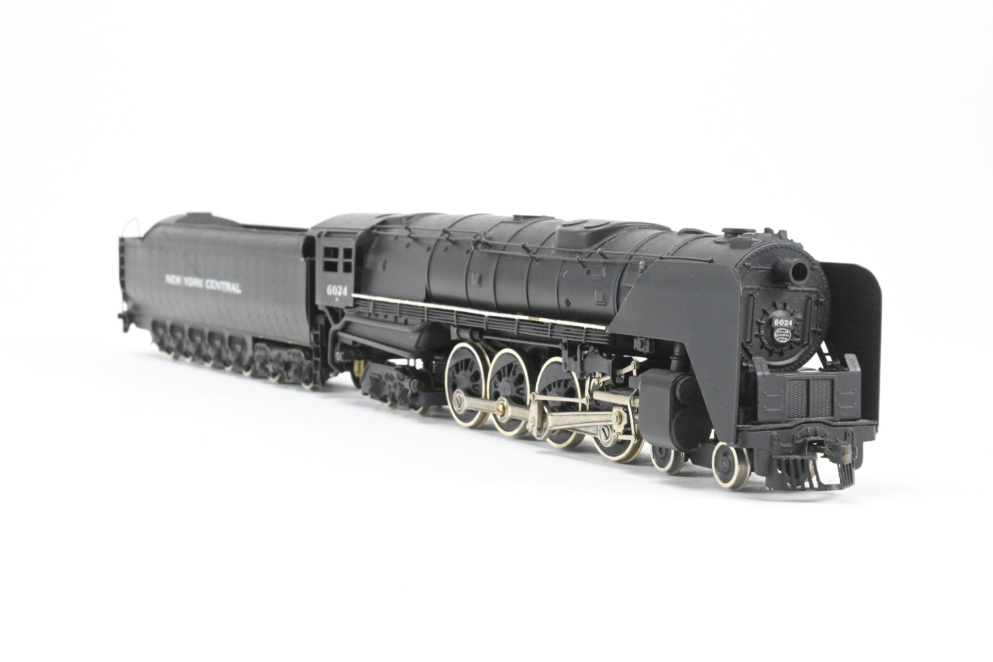 1959 run Pacific Fast Mail model built by United in Japan. Original box shows minimal shelf wear. Model has a fair paint job with wear and is numbered #6024 - see photos. This model shows signs of heavy use, but it is a smooth and quiet running engine. A decent example of a vintage Japanese brass model.