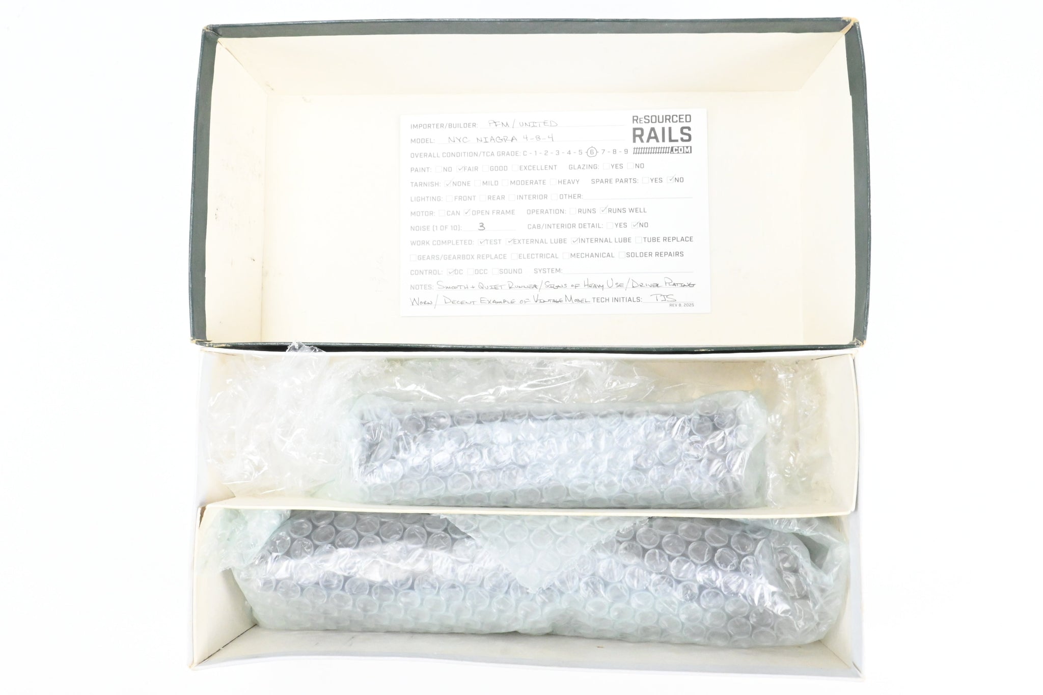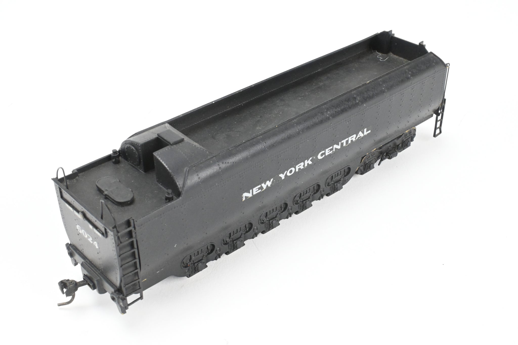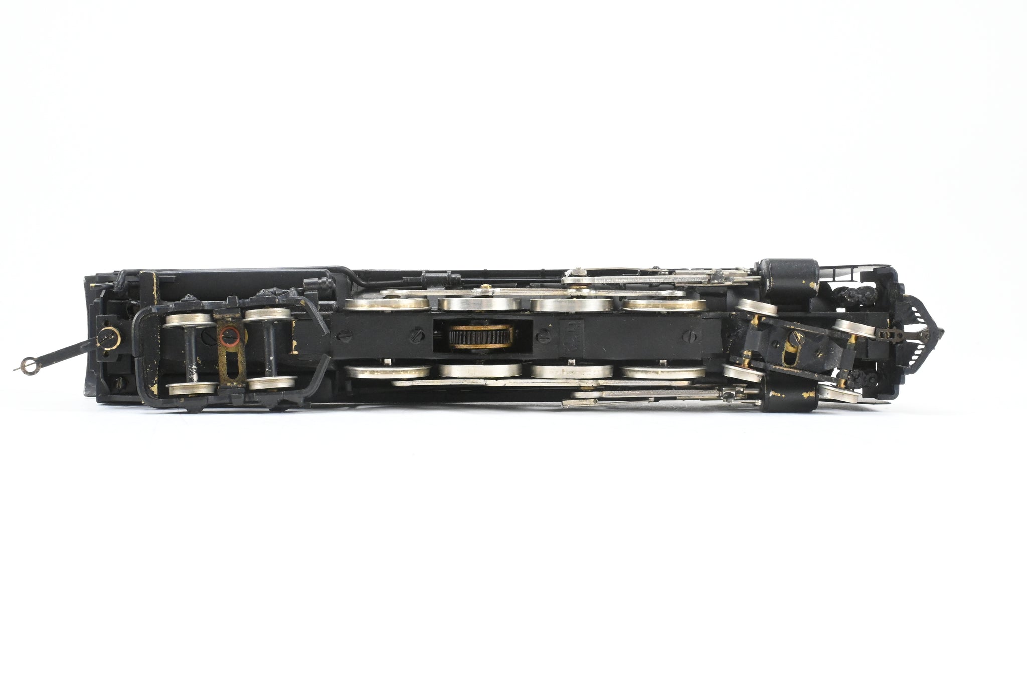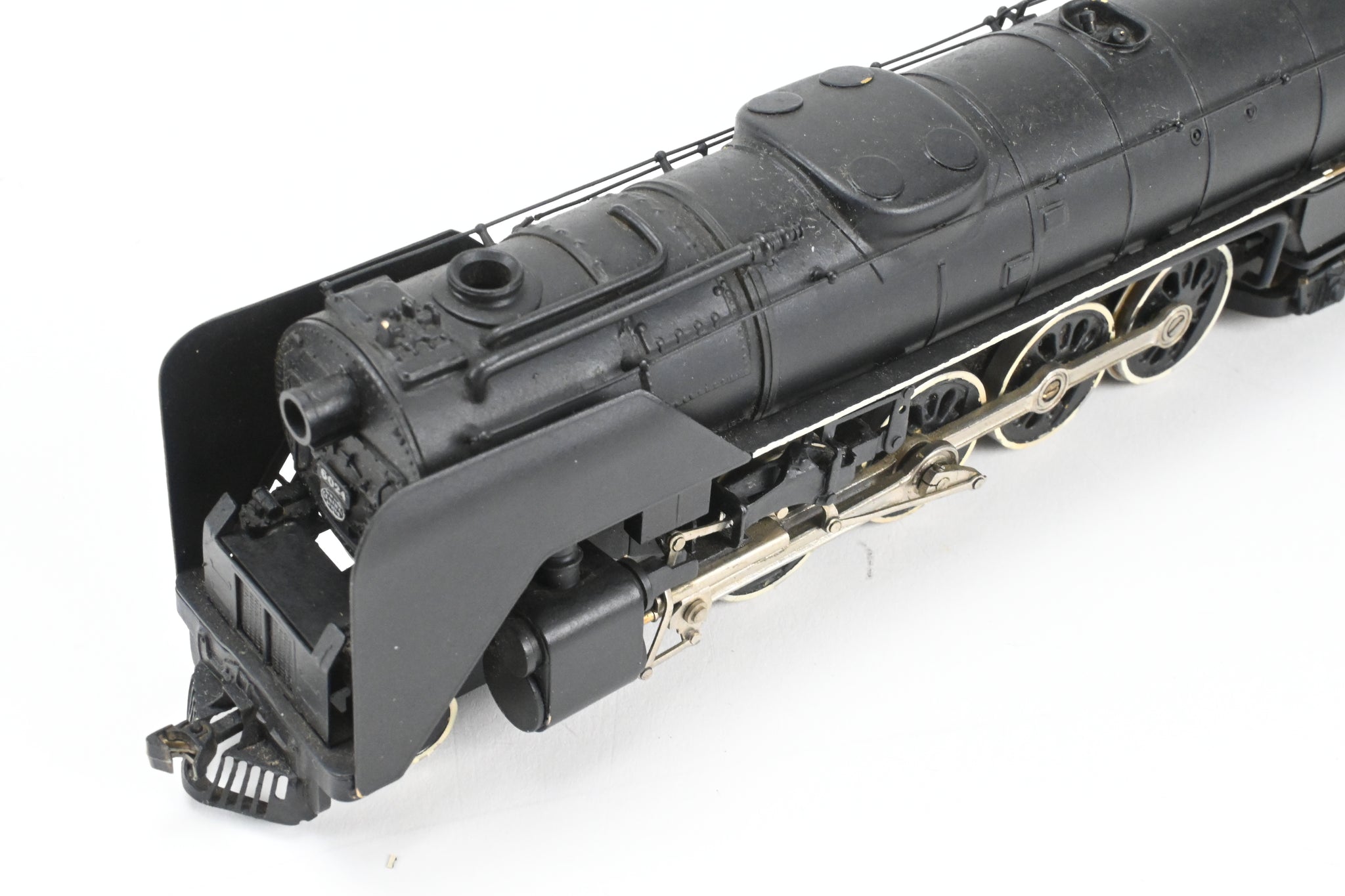 1959 run Pacific Fast Mail model built by United in Japan. Original box shows minimal shelf wear. Model has a fair paint job with wear and is numbered #6024 - see photos. This model shows signs of heavy use, but it is a smooth and quiet running engine. A decent example of a vintage Japanese brass model.