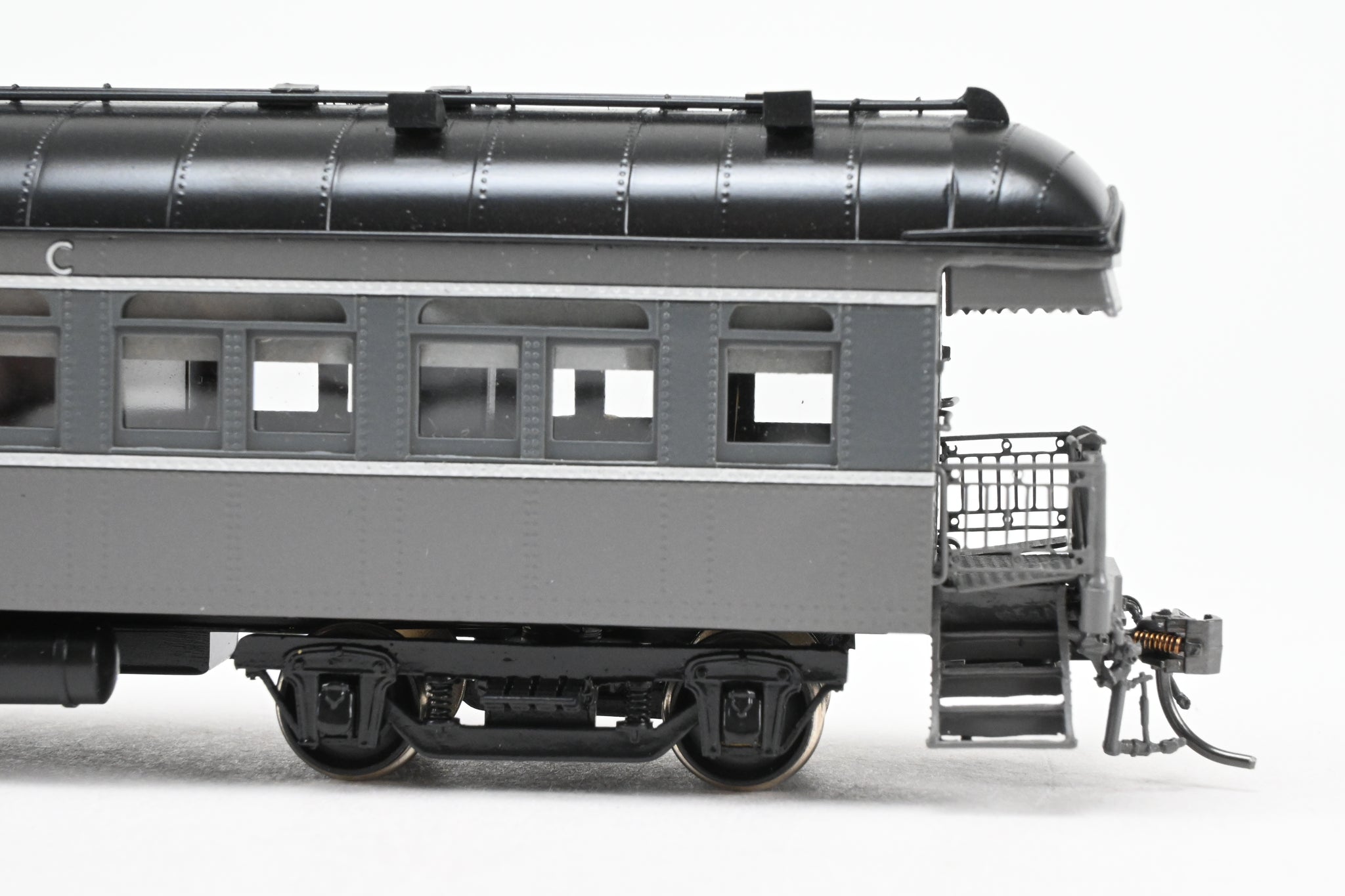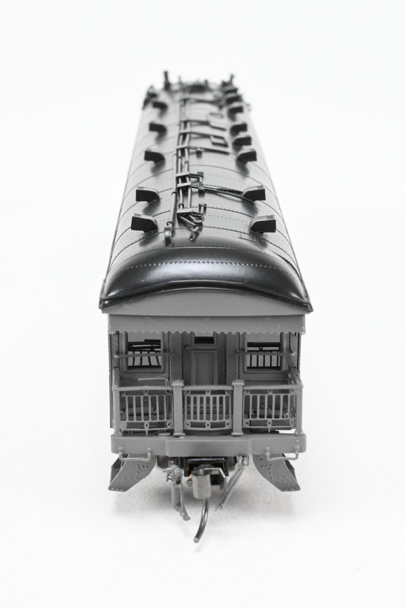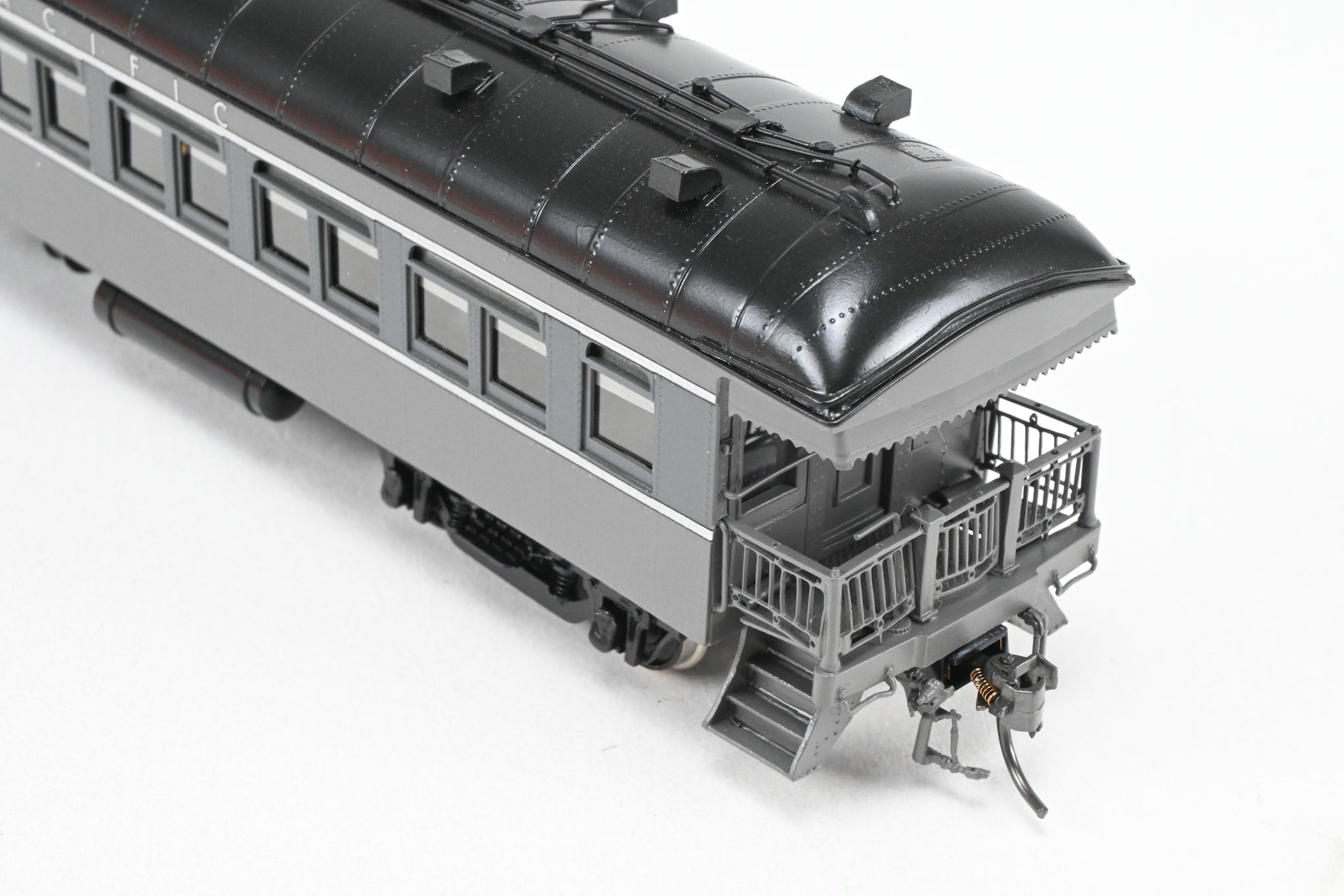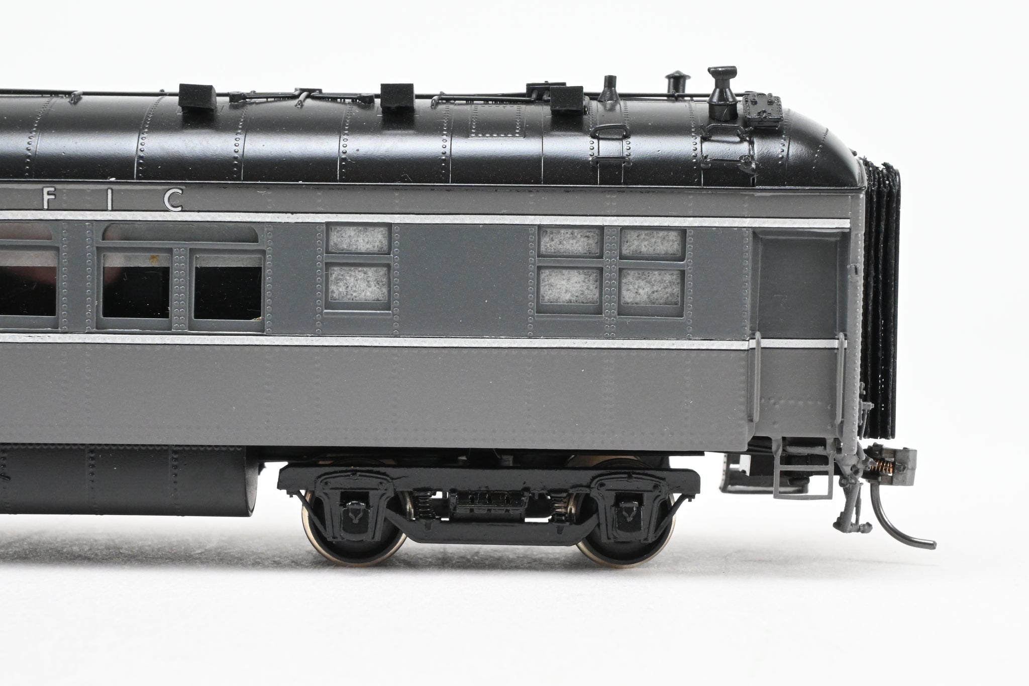 1989 Precision Scale Co. imported model built by Hyodong in Korea. Box shows moderate shelf wear. Model is beautifully pro-painted in UP's Two-Tone Gray scheme numbered 1542. Full glazing throughout and diaphragm on vestibule end installed. Although this is a SP car, it is a Harriman Standard car, it can be used in Union Pacific service.