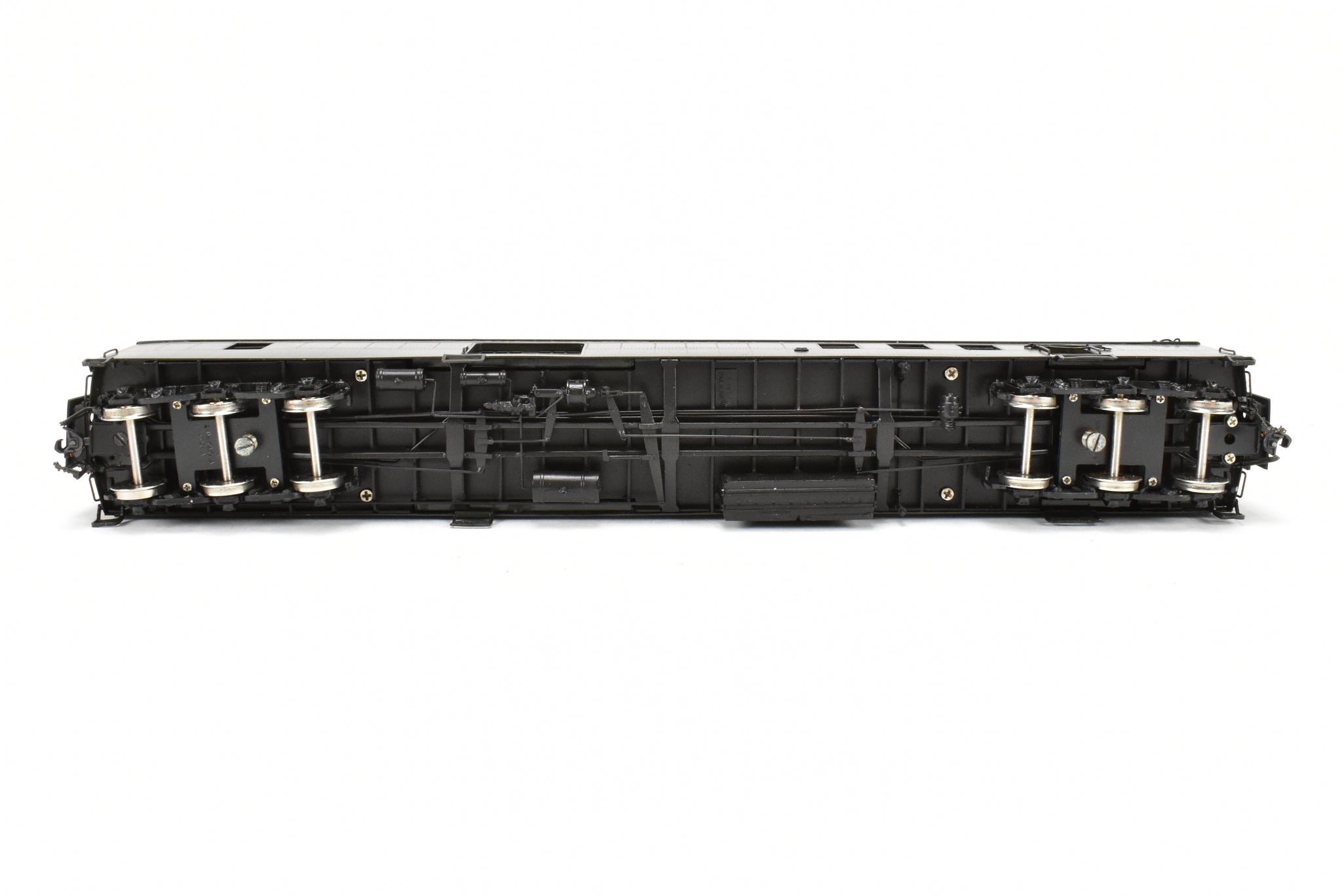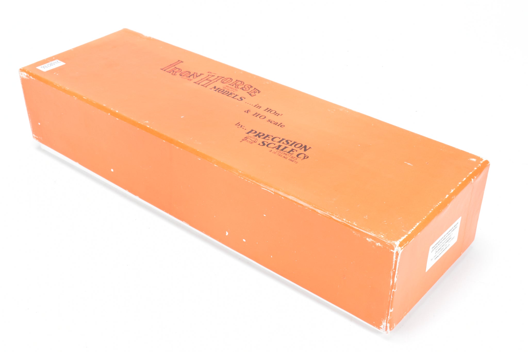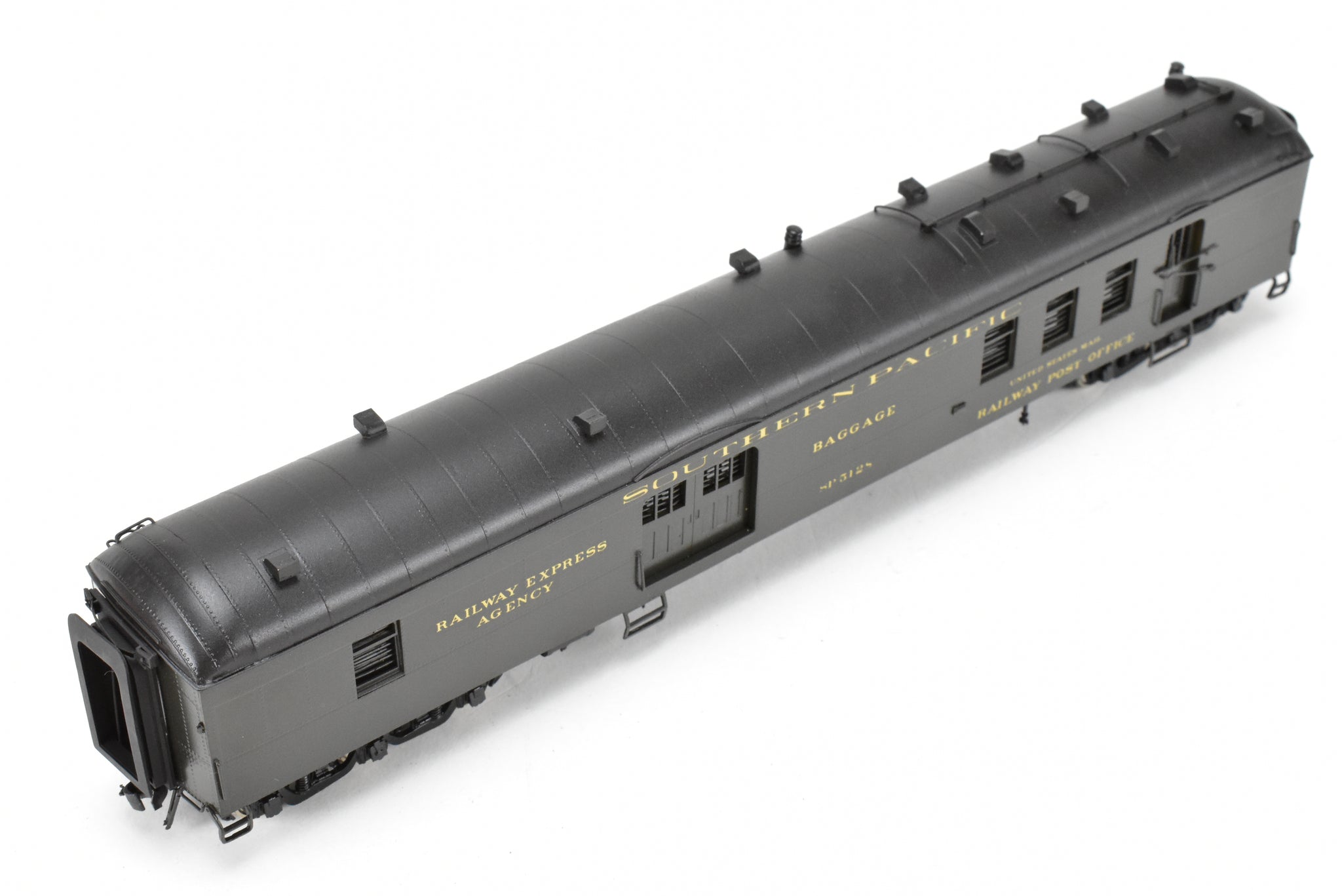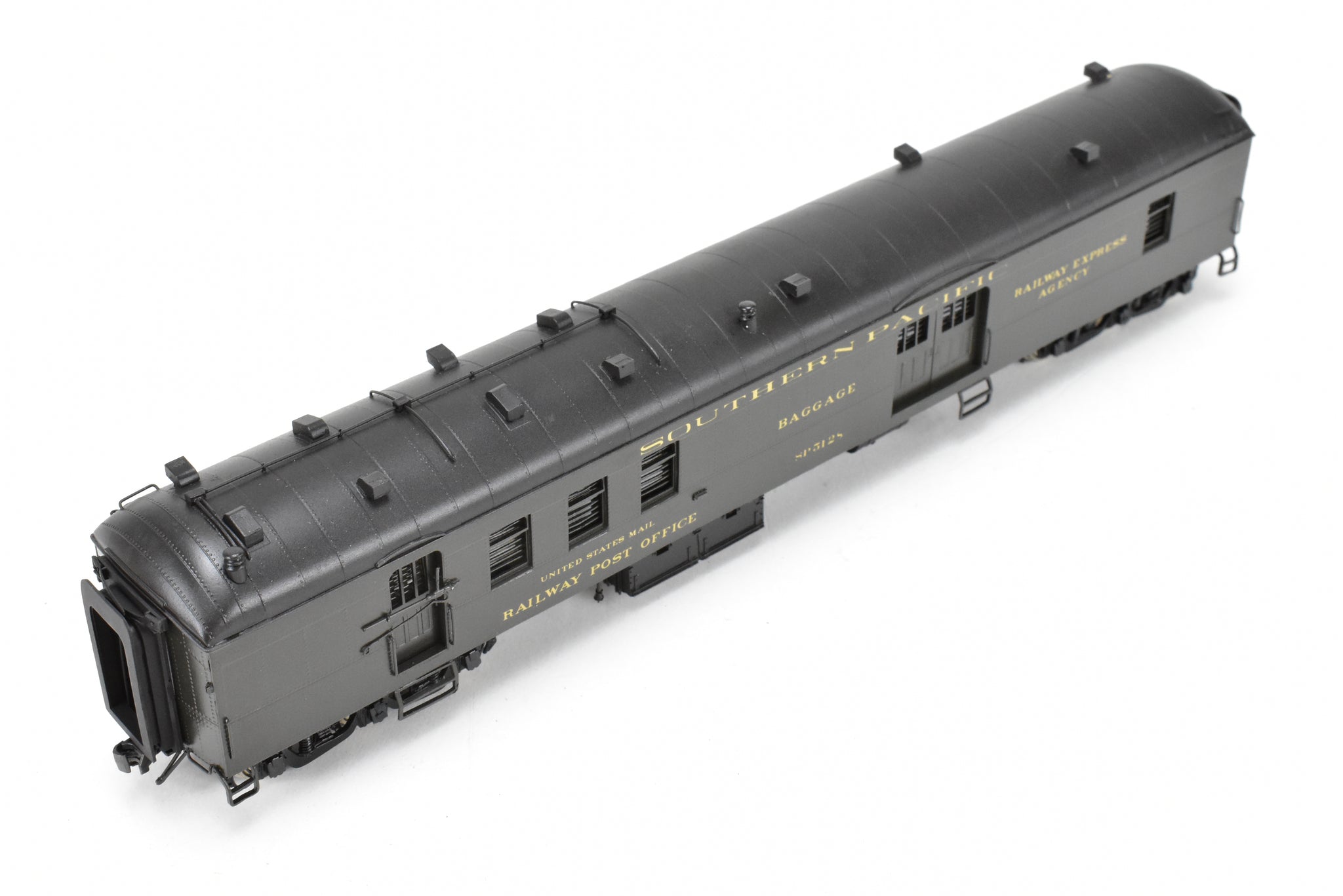 1992 Precision Scale Co. imported model built by Jin Heung in Korea. Box shows mild shelf wear NOTE: Wrong Box - Box shows the same car, but Factory painted in Two Tone Gray. No spare parts. Working baggage compartment doors. Factory painted in SP's olive Green/Black. - SP no. 5128. These were used on SP's mail trains, the Overland Limited, The Pacific Limited. An Excellent model.