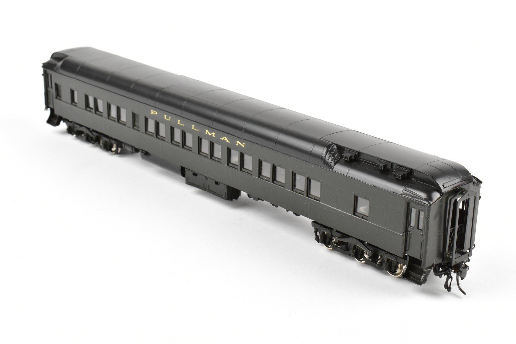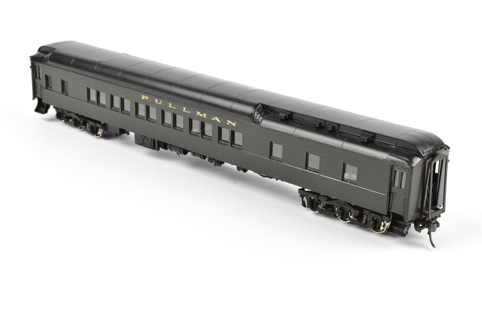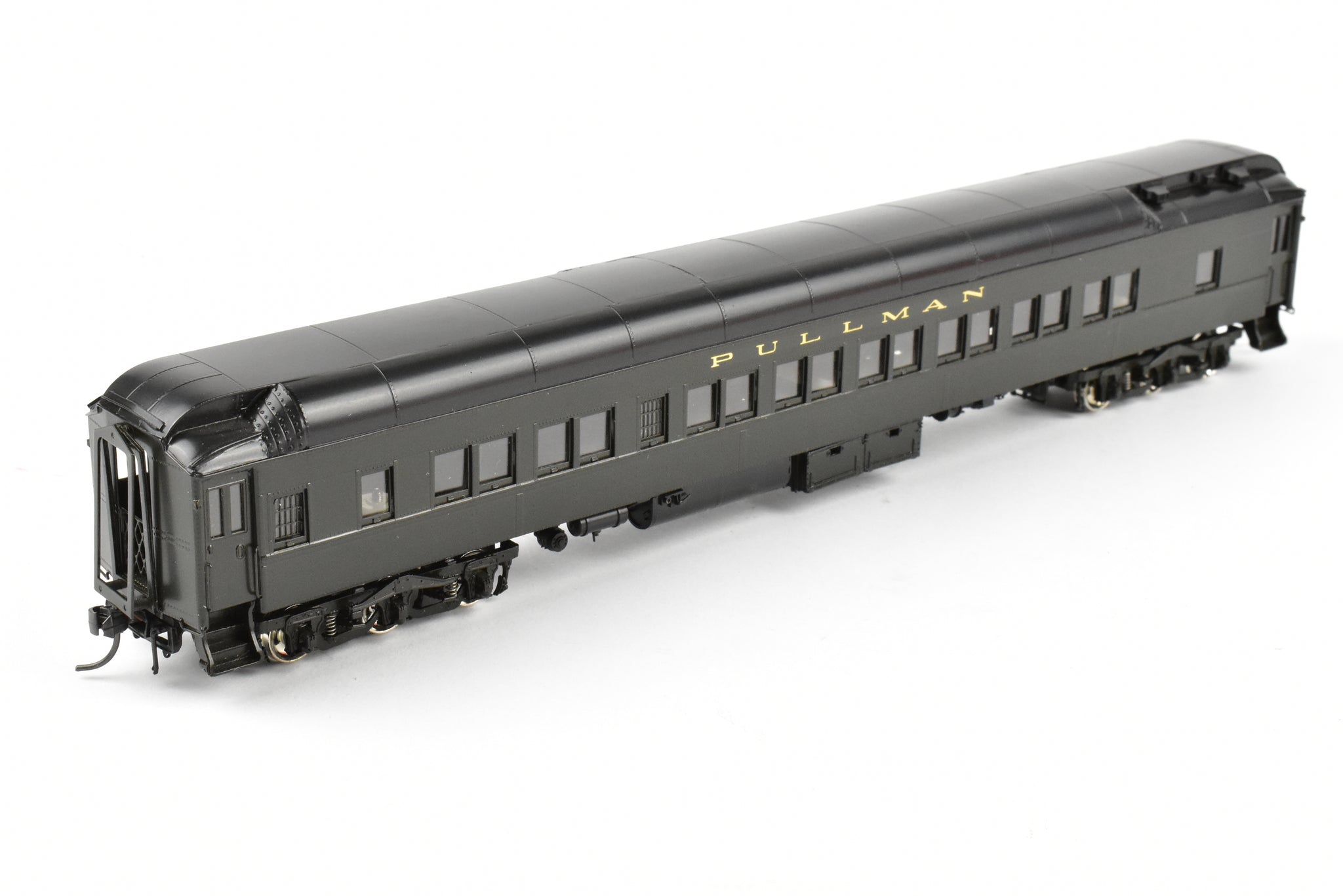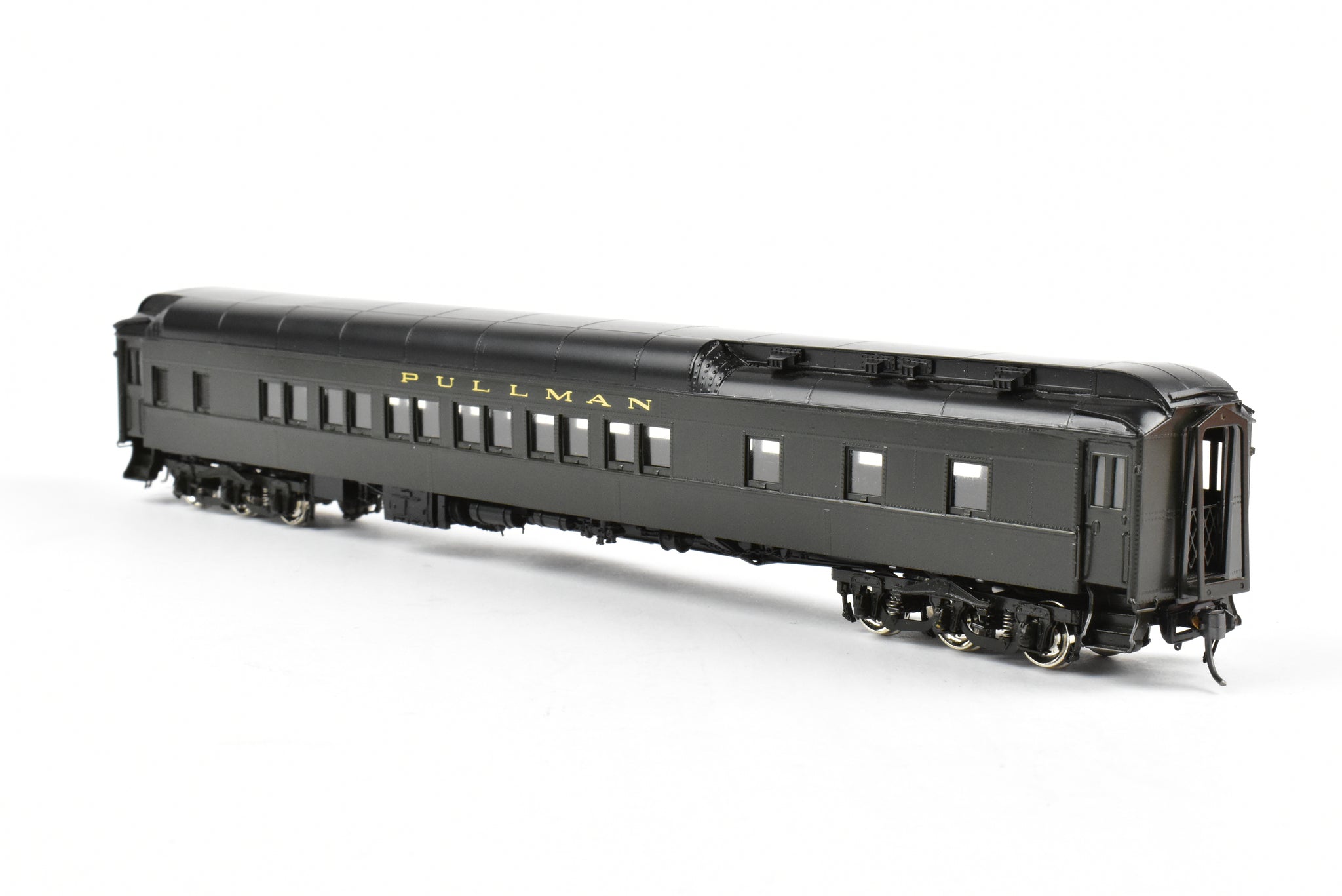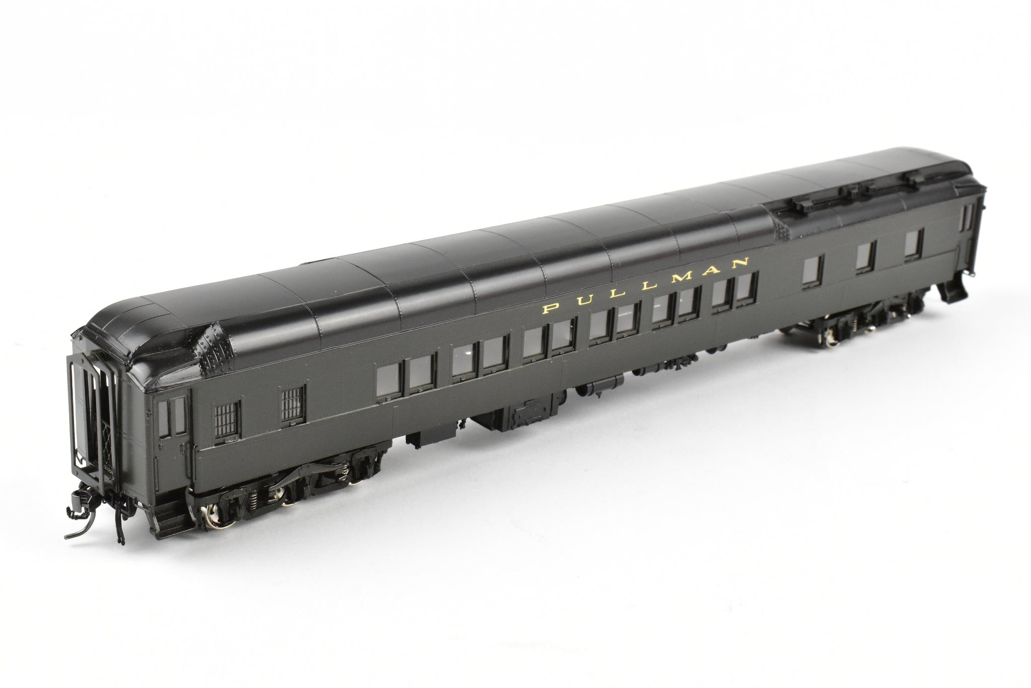 Precision Scale Co. imported model built by Hyodong in Korea. Replicates a car built to plan 2411 with air conditioning. Box shows moderate shelf wear with sun fading. No spare parts. A good example of a generic 12 Section 1 drawing room Pullman sleeper.