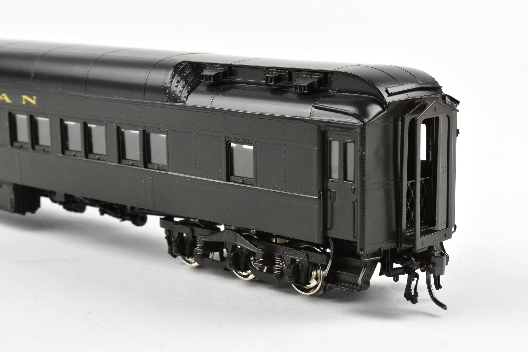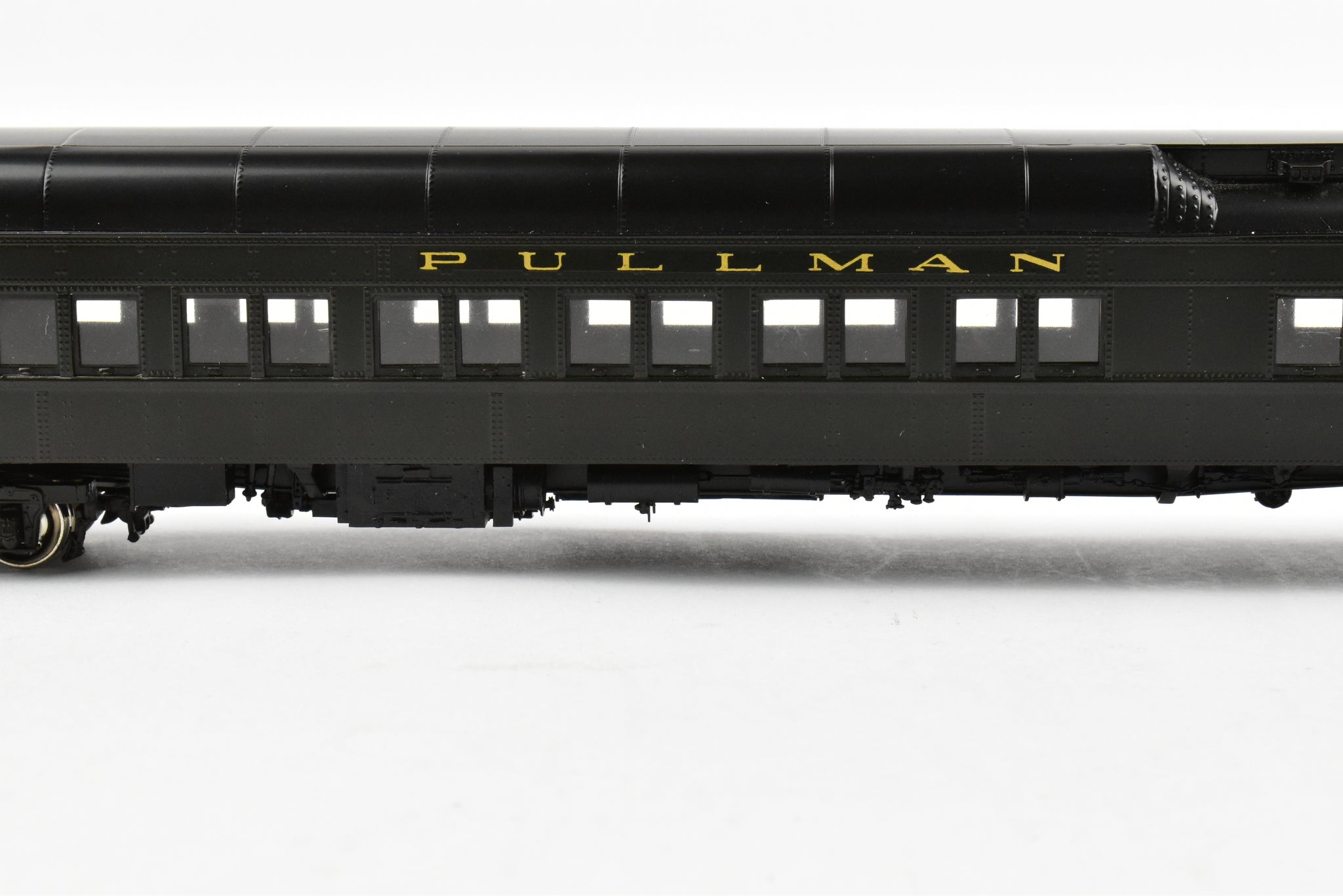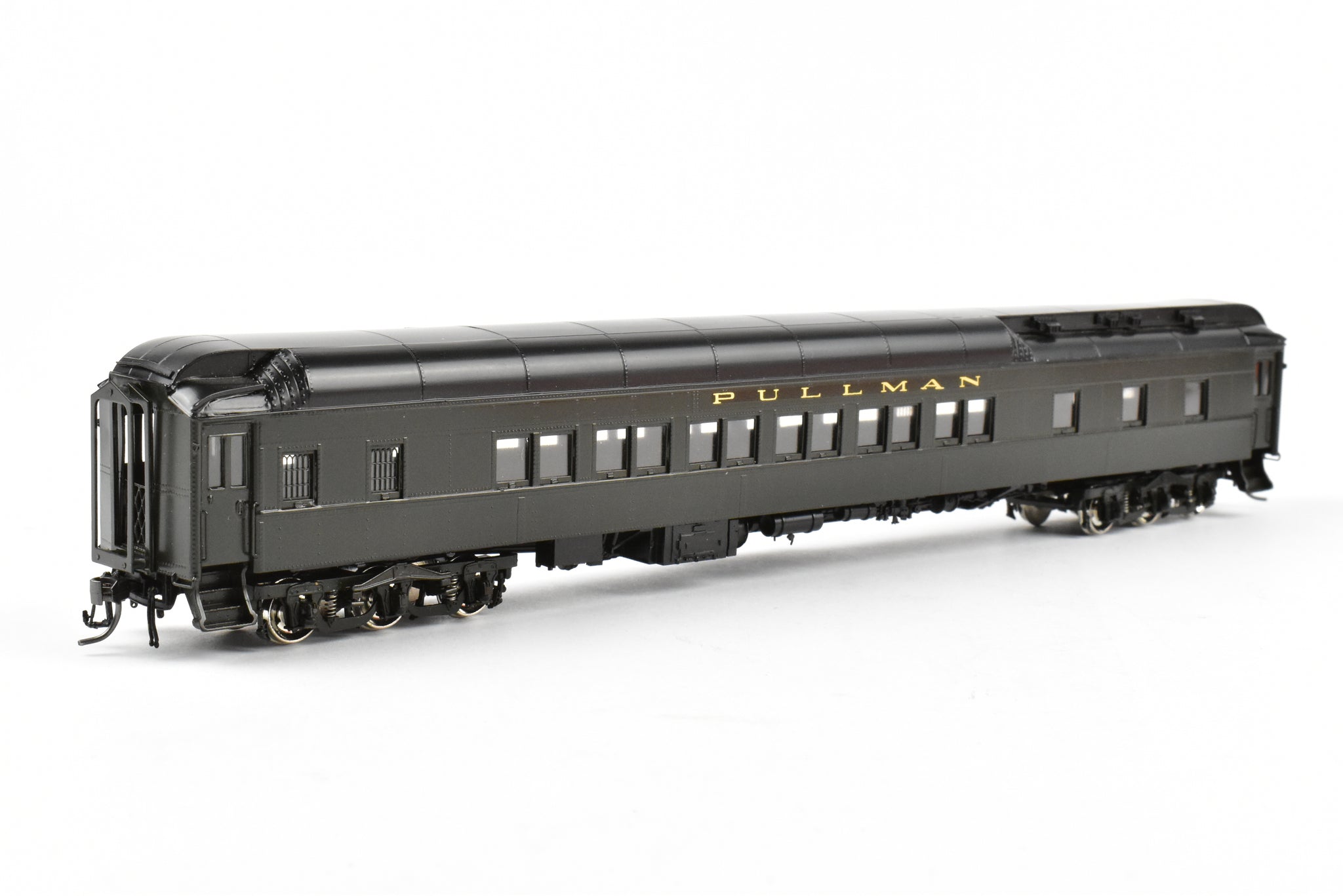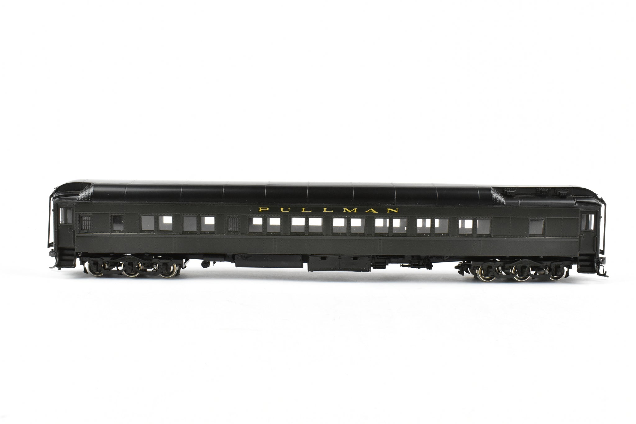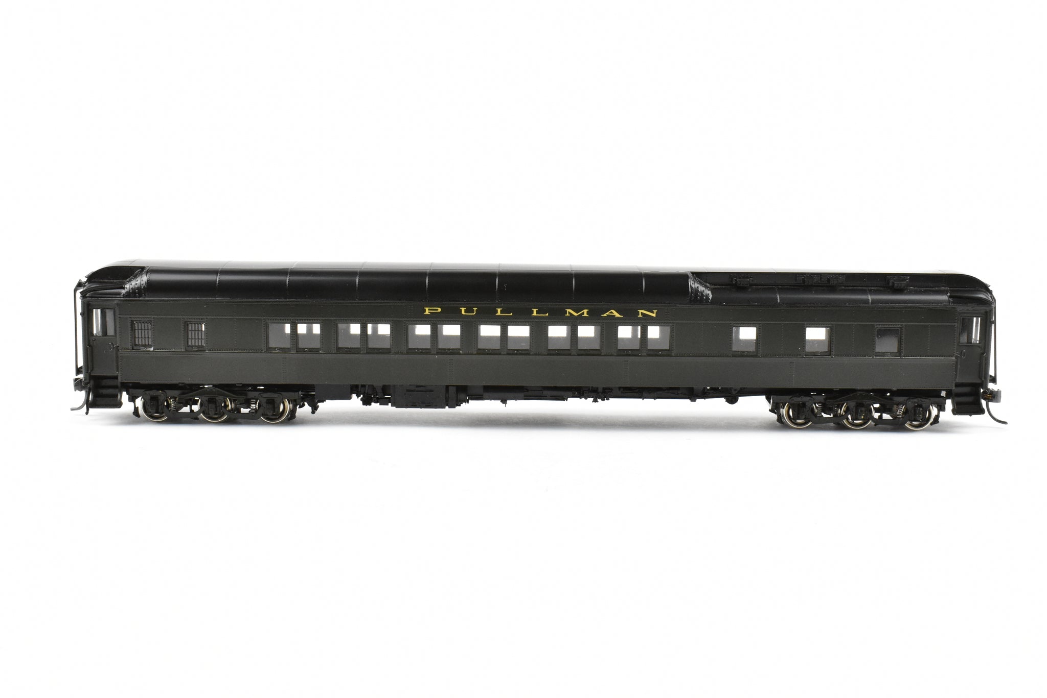 Precision Scale Co. imported model built by Hyodong in Korea. Replicates a car built to plan 2411 with air conditioning. Box shows moderate shelf wear with sun fading. No spare parts. A good example of a generic 12 Section 1 drawing room Pullman sleeper.