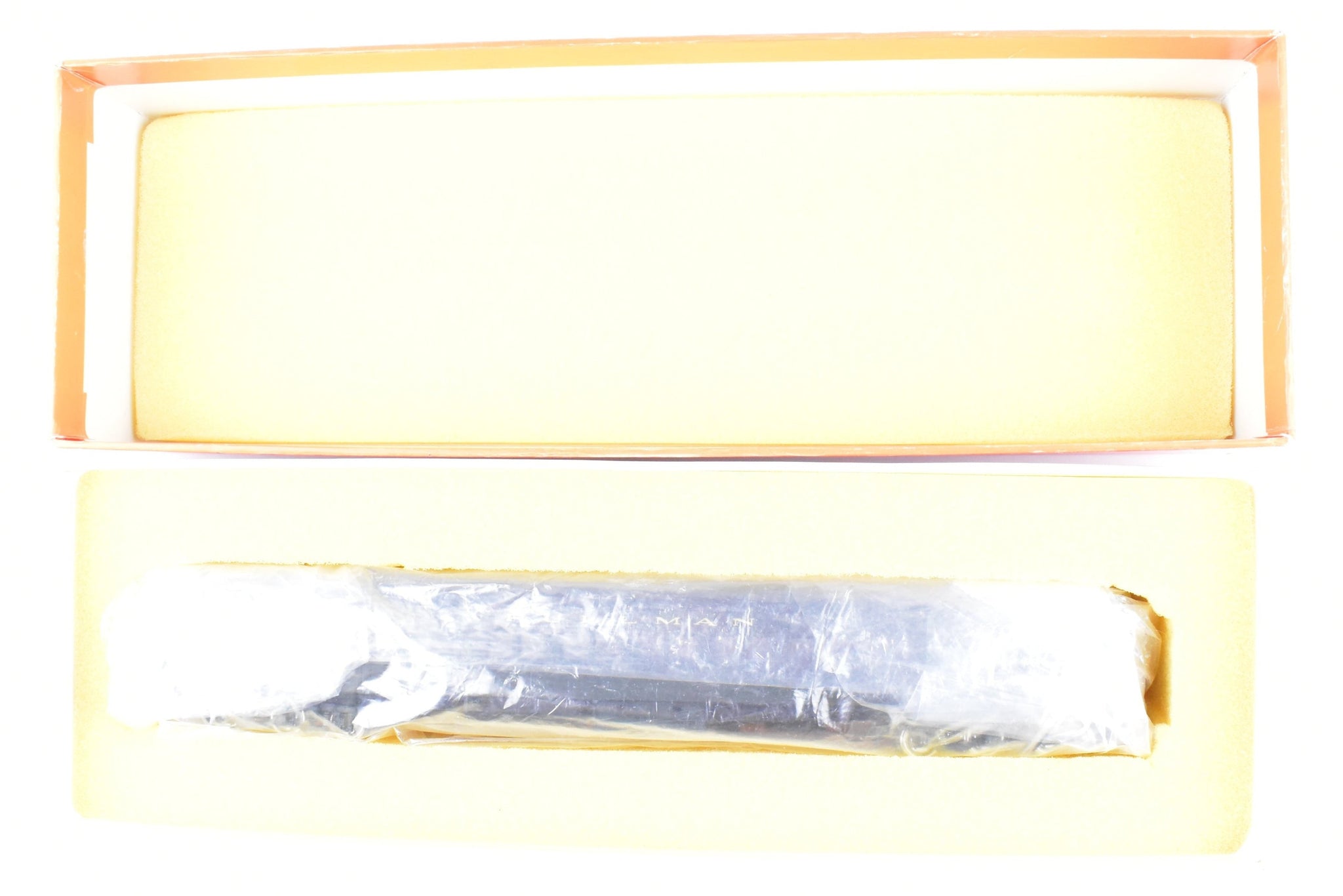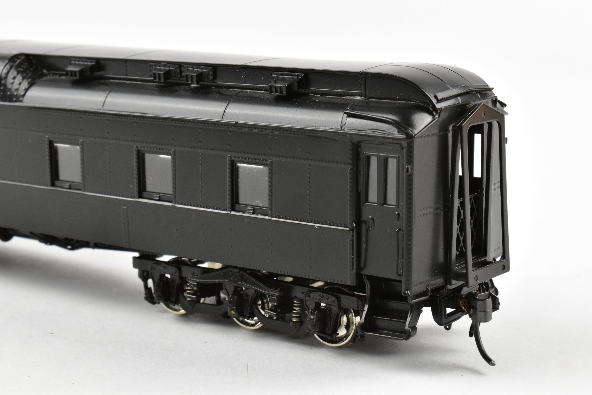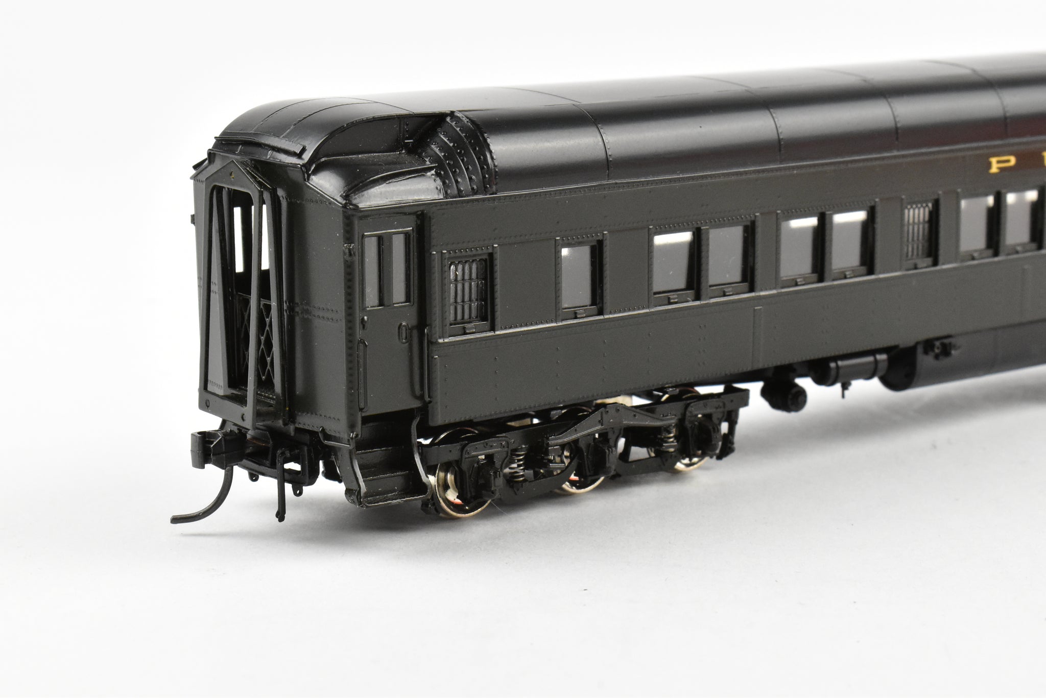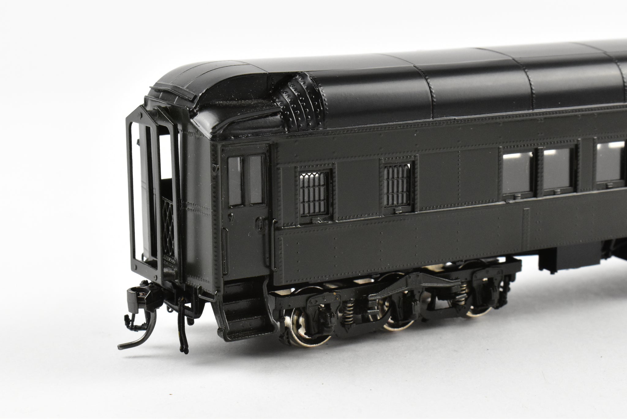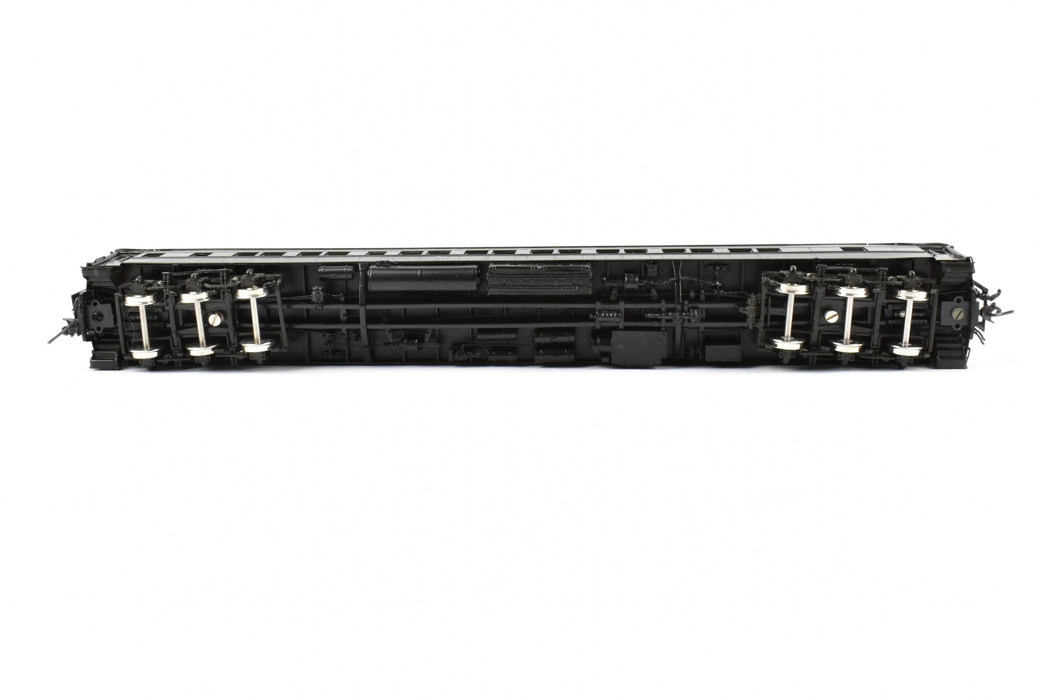 Precision Scale Co. imported model built by Hyodong in Korea. Replicates a car built to plan 2411 with air conditioning. Box shows moderate shelf wear with sun fading. No spare parts. A good example of a generic 12 Section 1 drawing room Pullman sleeper.