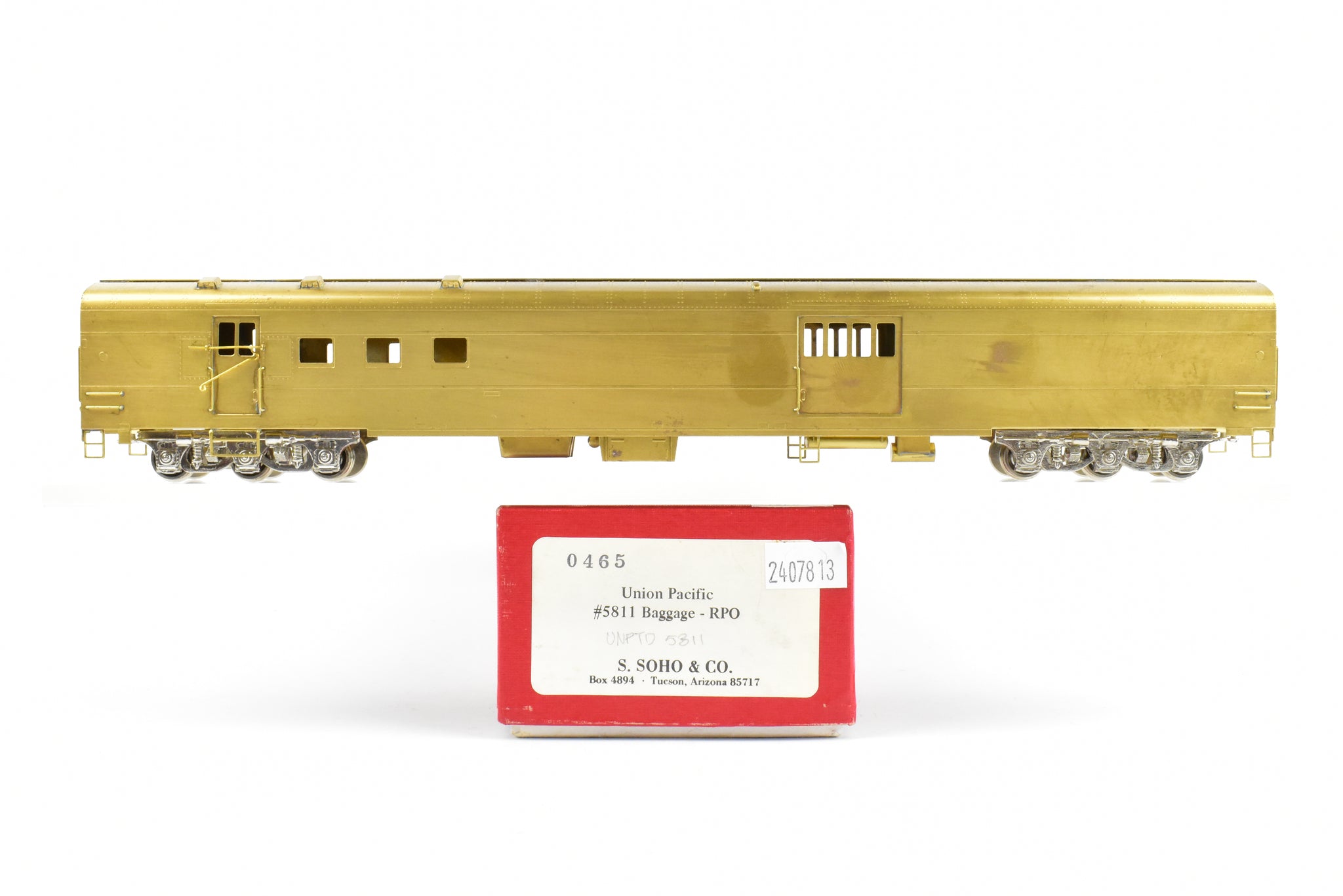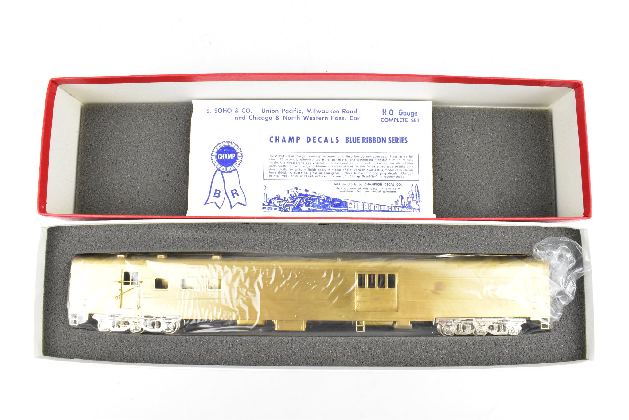 1977 Run S. Soho & Co imported model built by Kumata in Japan. Box shows minimal shelf wear. No spare parts included. Model is unpainted, with minimal tarnish. Champ decals are included. These cars were used on all of UP's passenger trains until May 1, 1971. Some cars were modified for MOW Service with a few lasting into preservation.