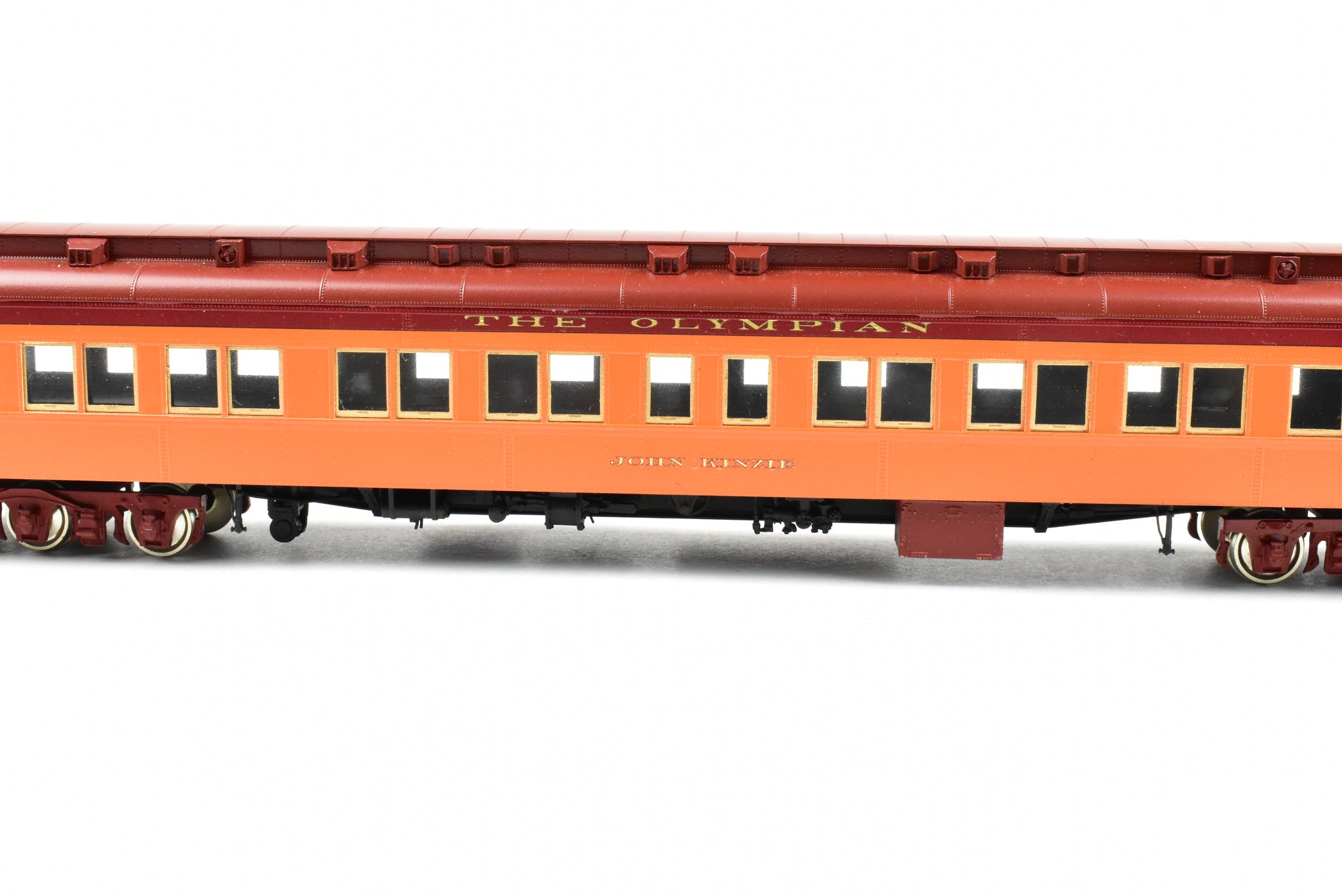 Decorated: Pro painted - Expert paint job in Milwaukee Roads Orange/Maroon Scheme Lettered for the Olympian as "John Kinzie"
