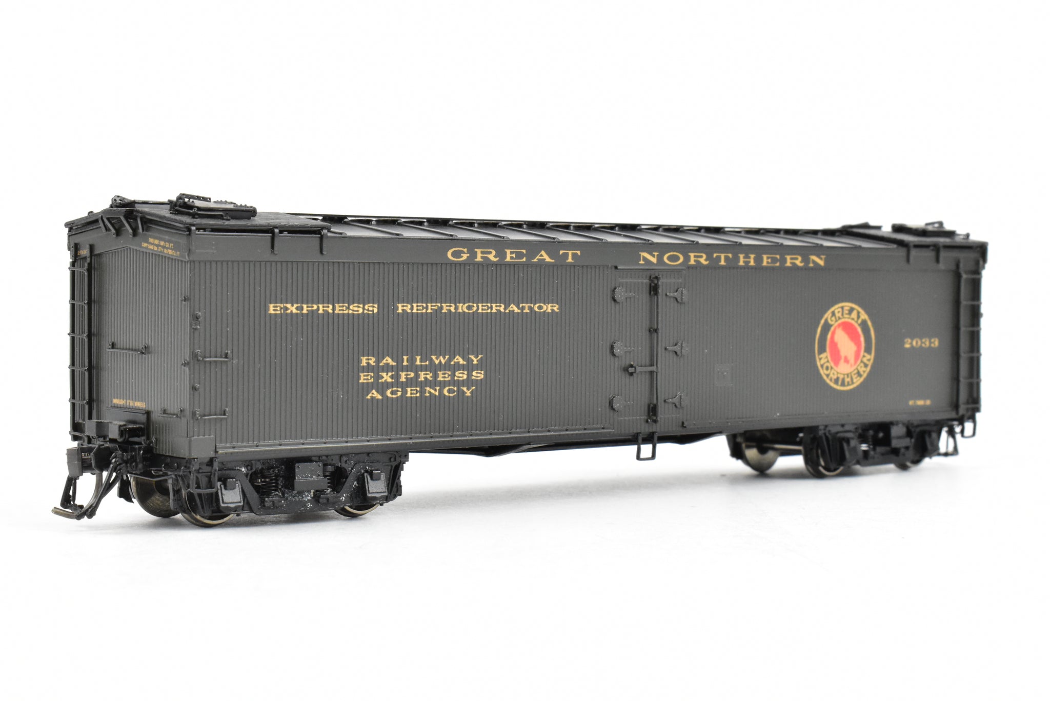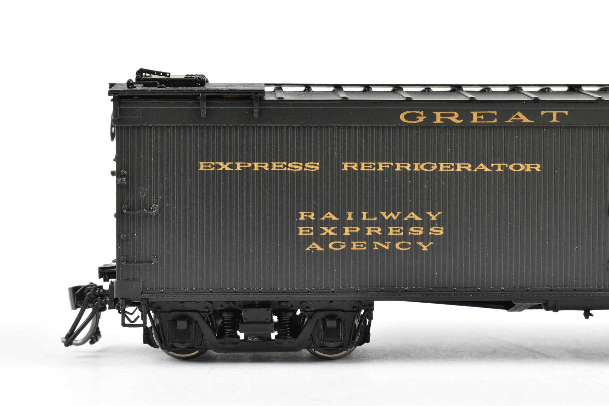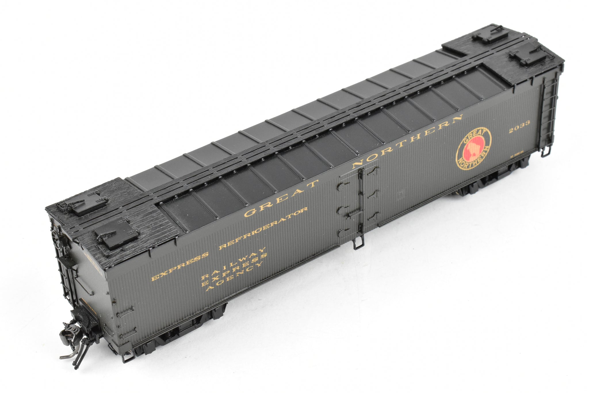 Shoreham Shops imported model built in Korea. Box shows minimal shelf wear. Spare parts included. Full underbody detail. Factory painted - beautiful work.An excellent model of a GN Express Reefer.