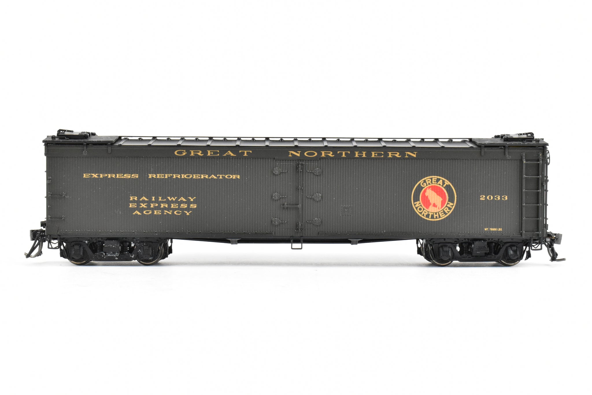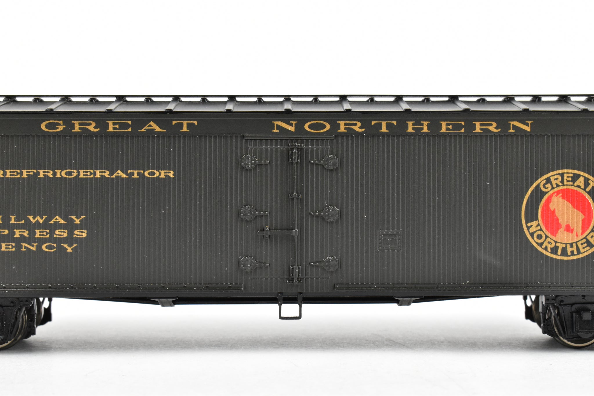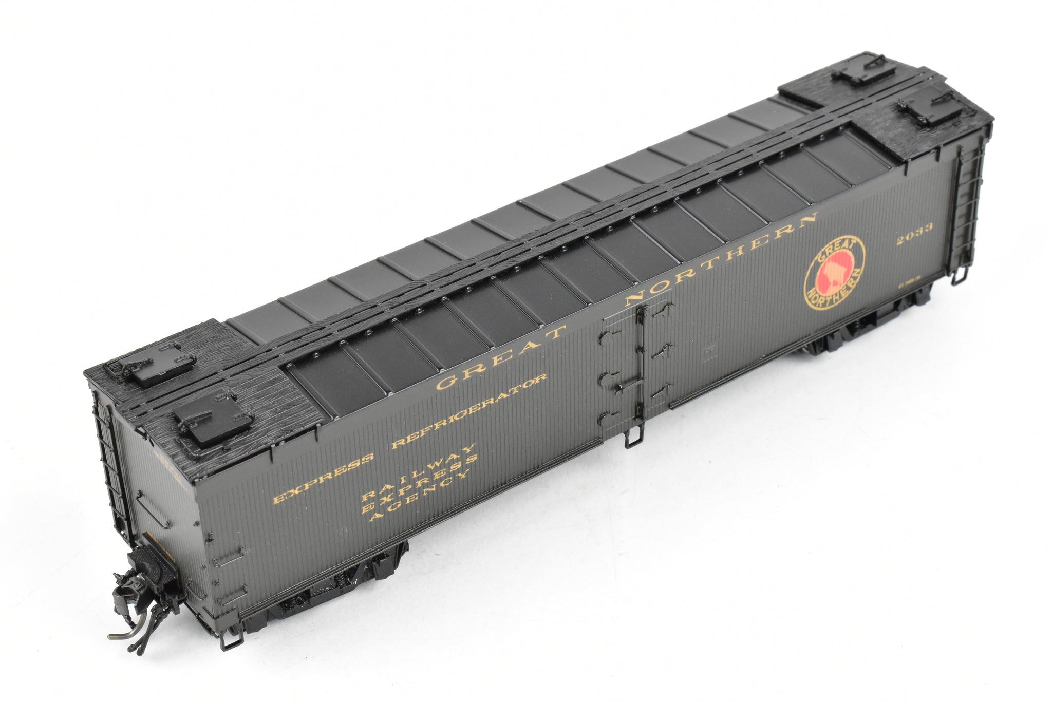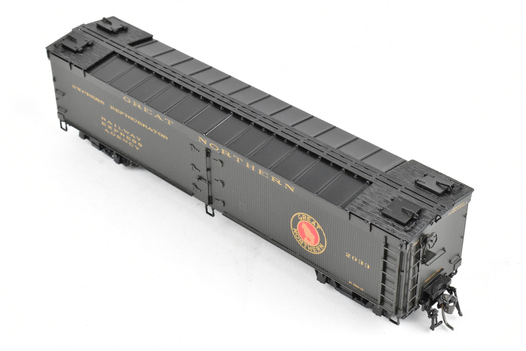 Shoreham Shops imported model built in Korea. Box shows minimal shelf wear. Spare parts included. Full underbody detail. Factory painted - beautiful work.An excellent model of a GN Express Reefer.