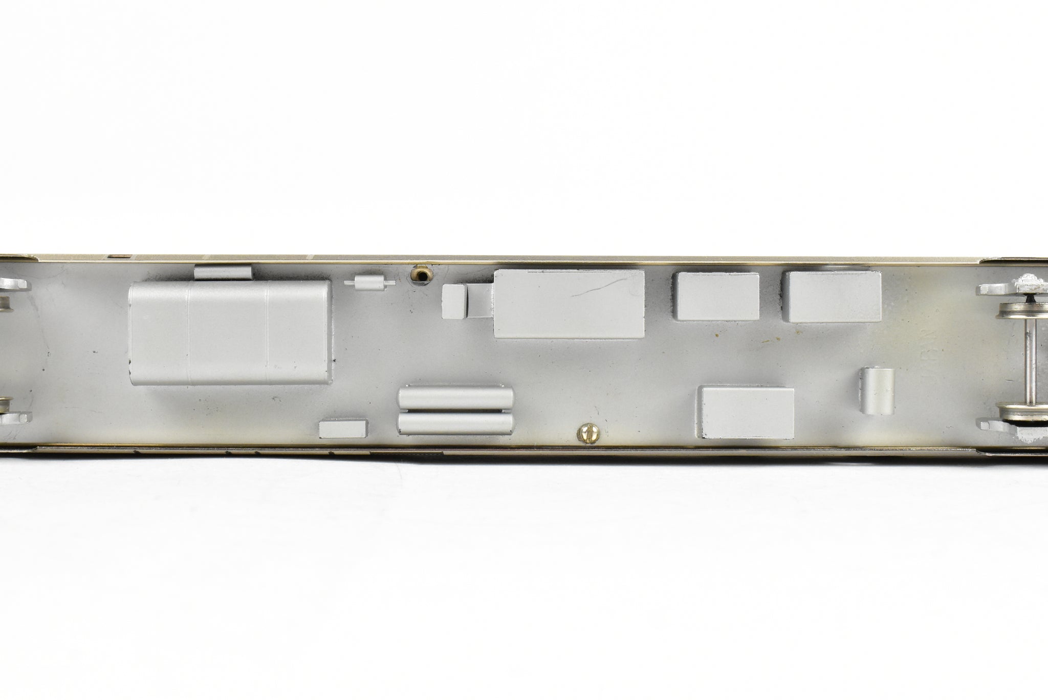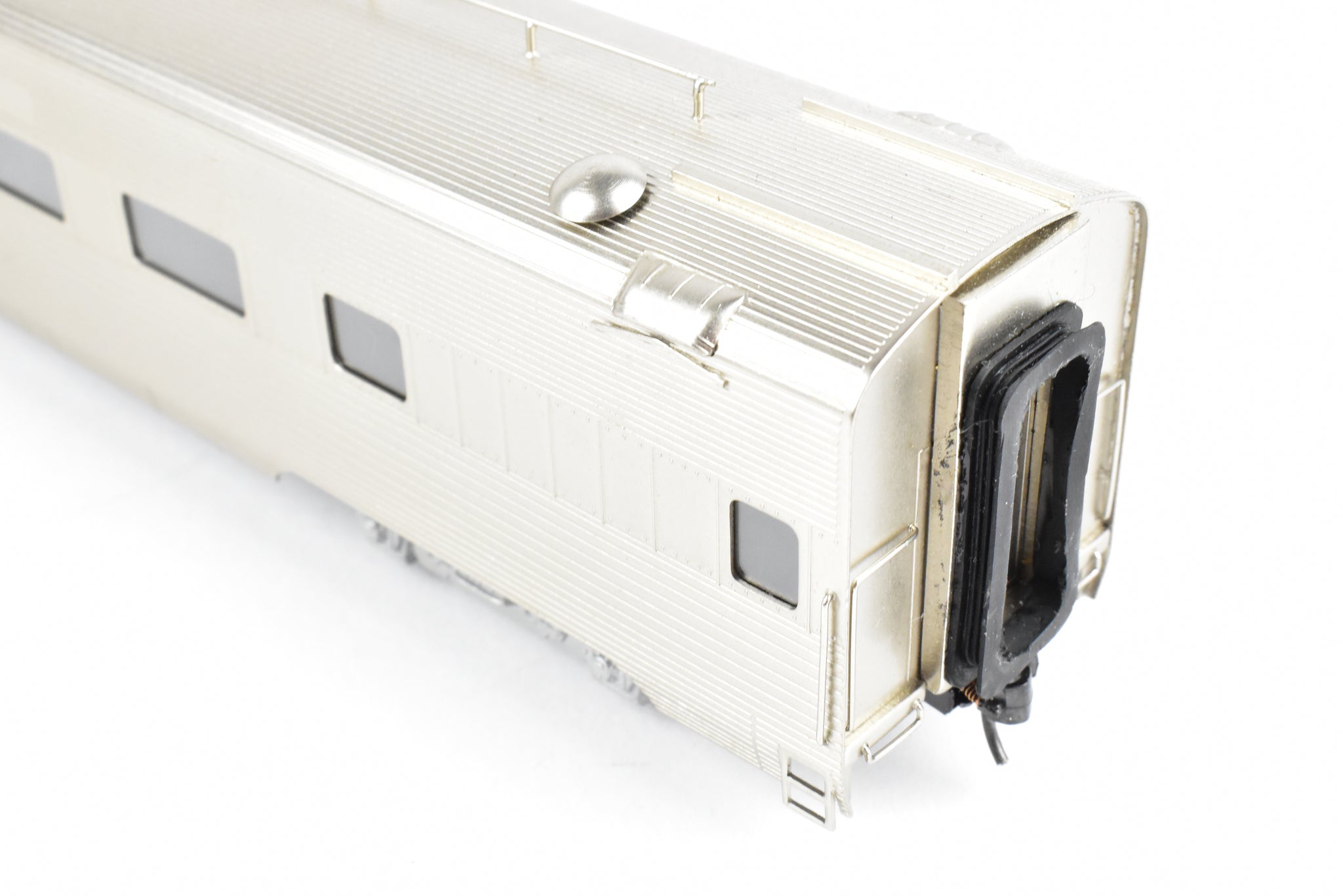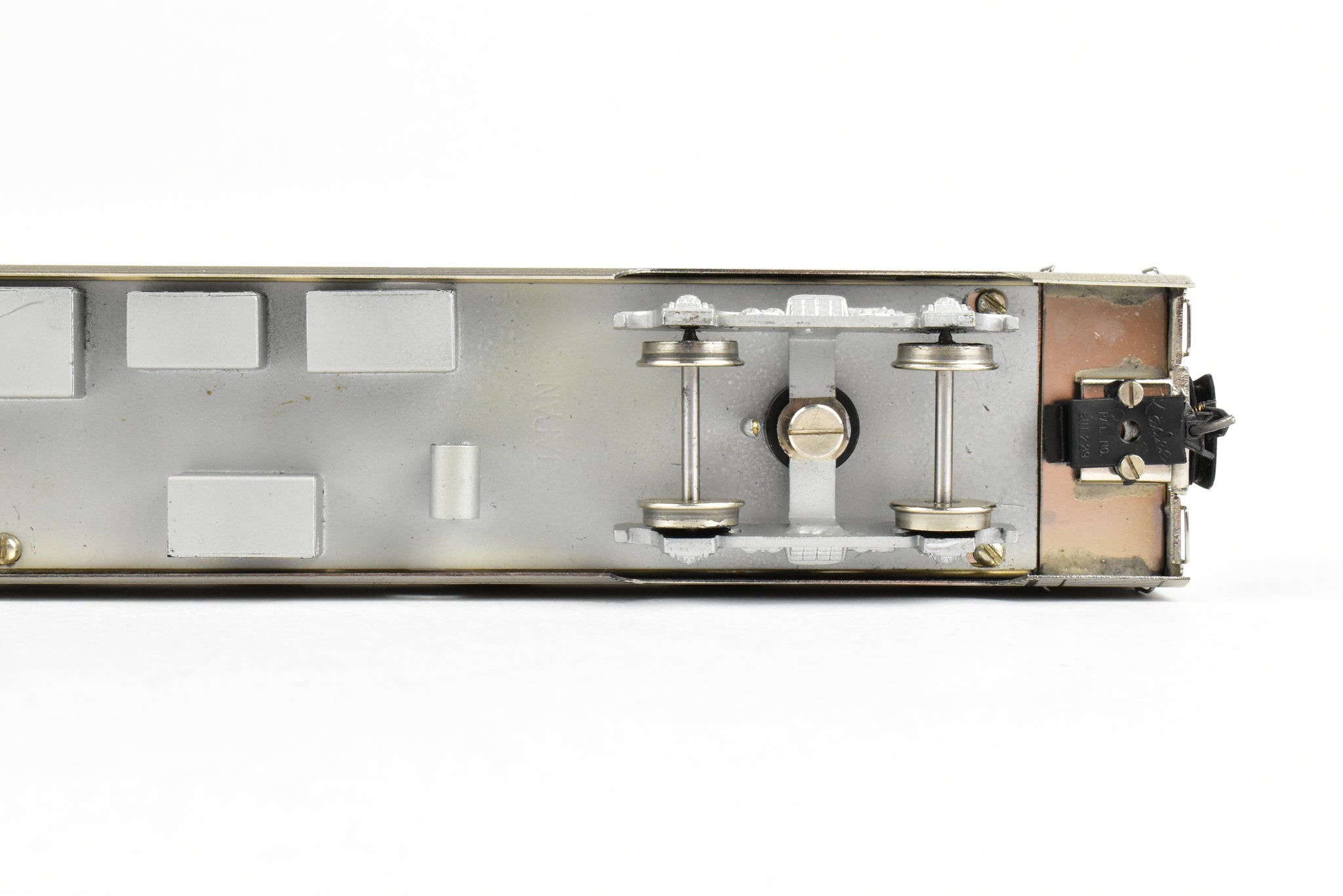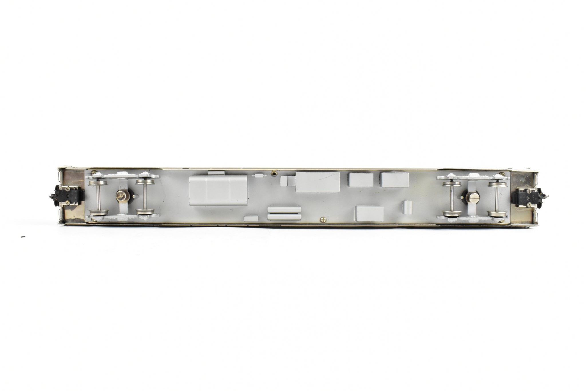 1977 run S. Soho & Co. imported model built by Kumata in Japan. Box shows minimal shelf wear. Includes diaphragms (installed). Represents a car built by Budd in 1938. Car was used on the Tulsan, Kansas Cityian, and The San Diegan. Car has been decaled and window glazing has been added.