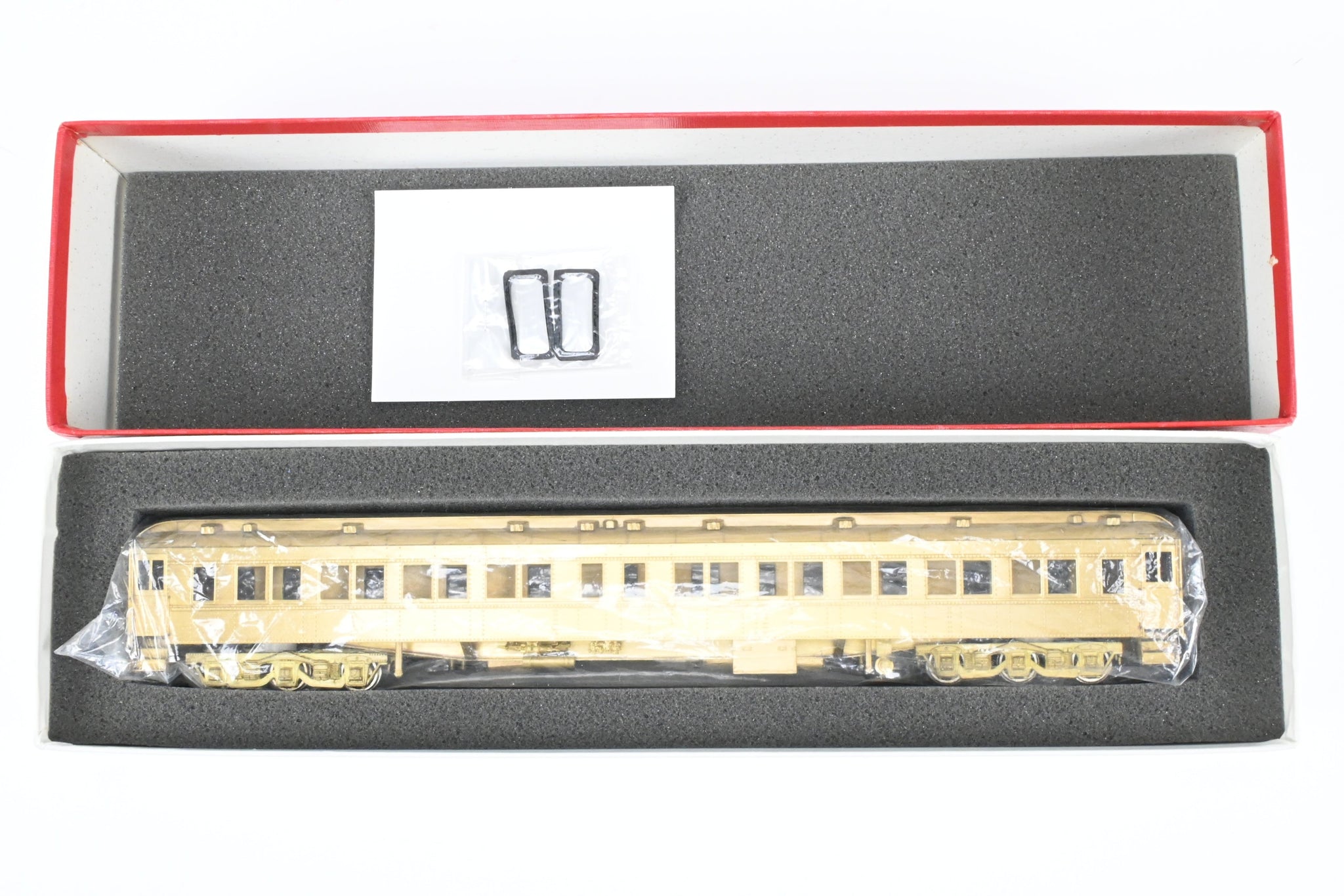 1979 run model built in Japan by Kumata. Note: Wrong box which shows minor shelf wear. Rubber diaphragms included. Model shows very little tarnish. These sleepers were used on virtually all US railroads. This version in not air conditioning equipment.