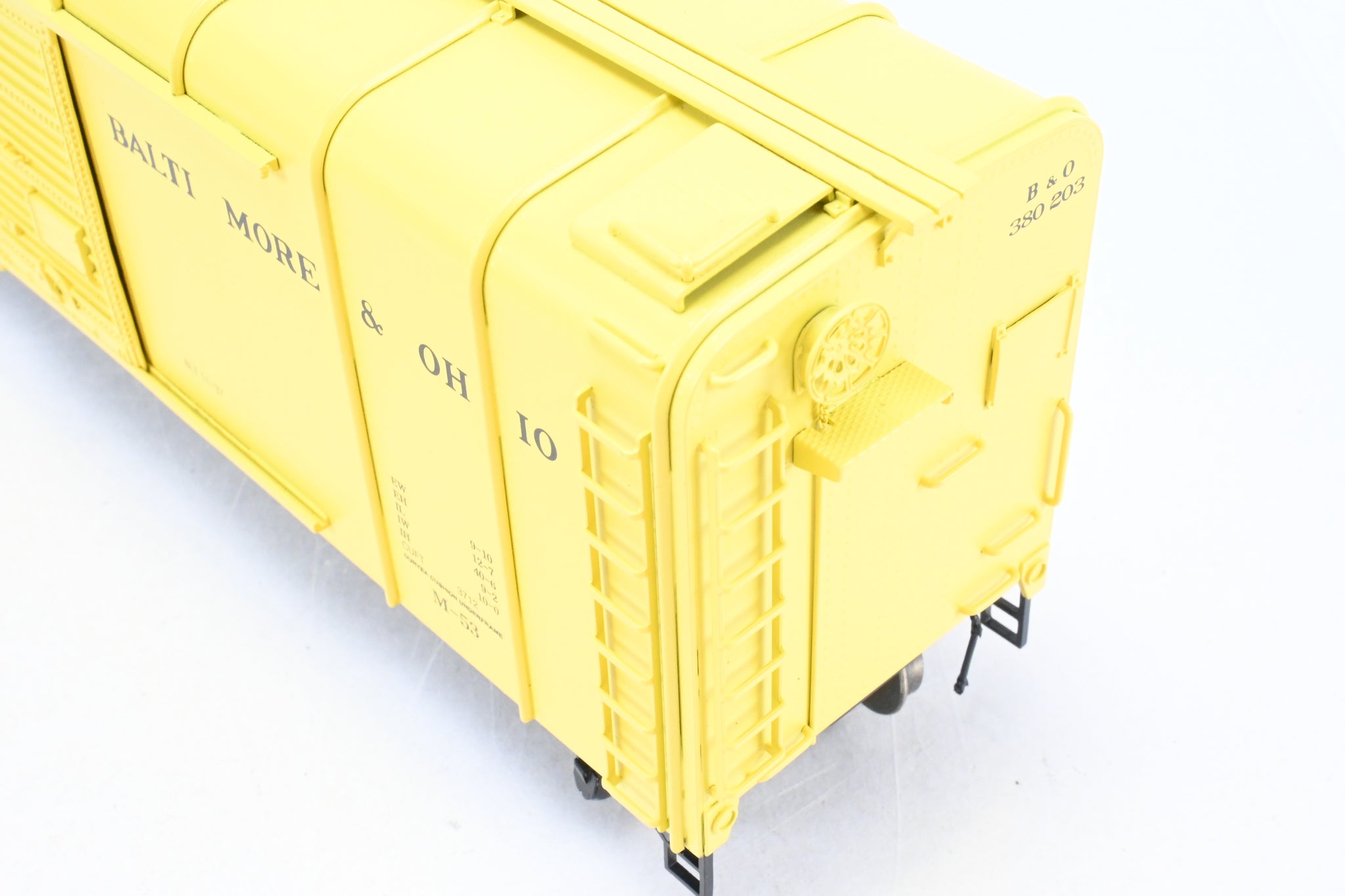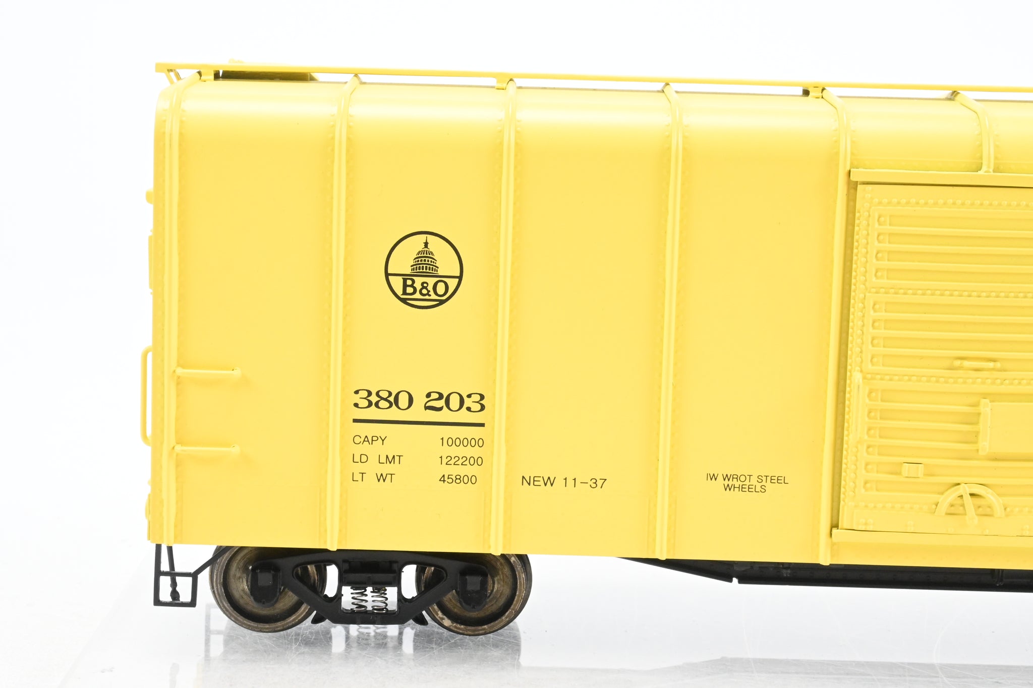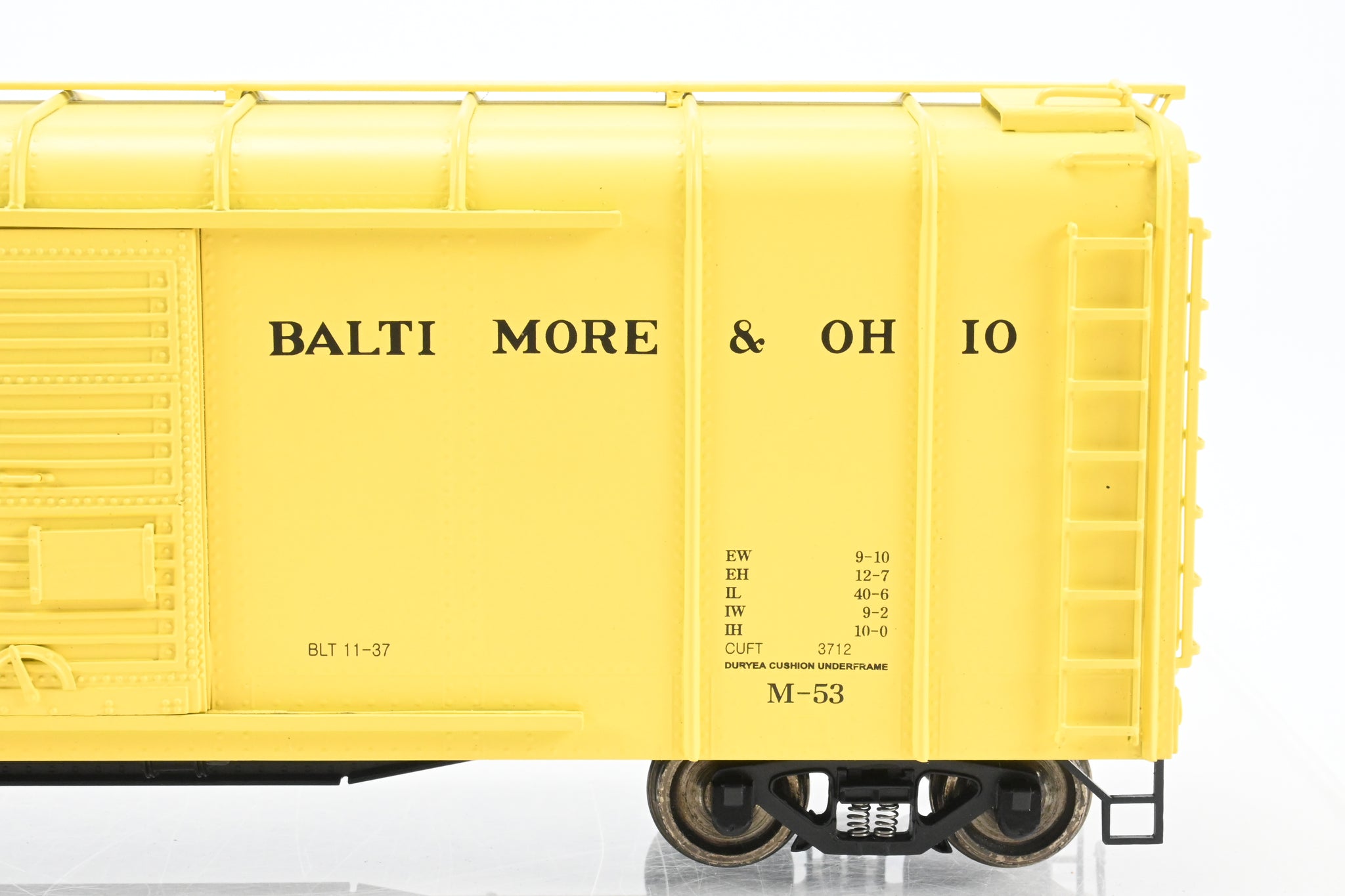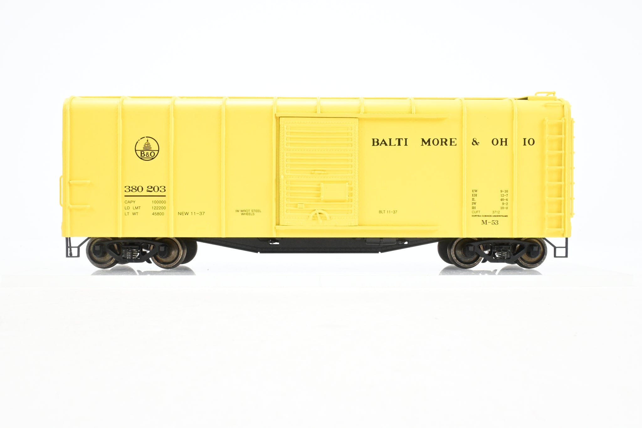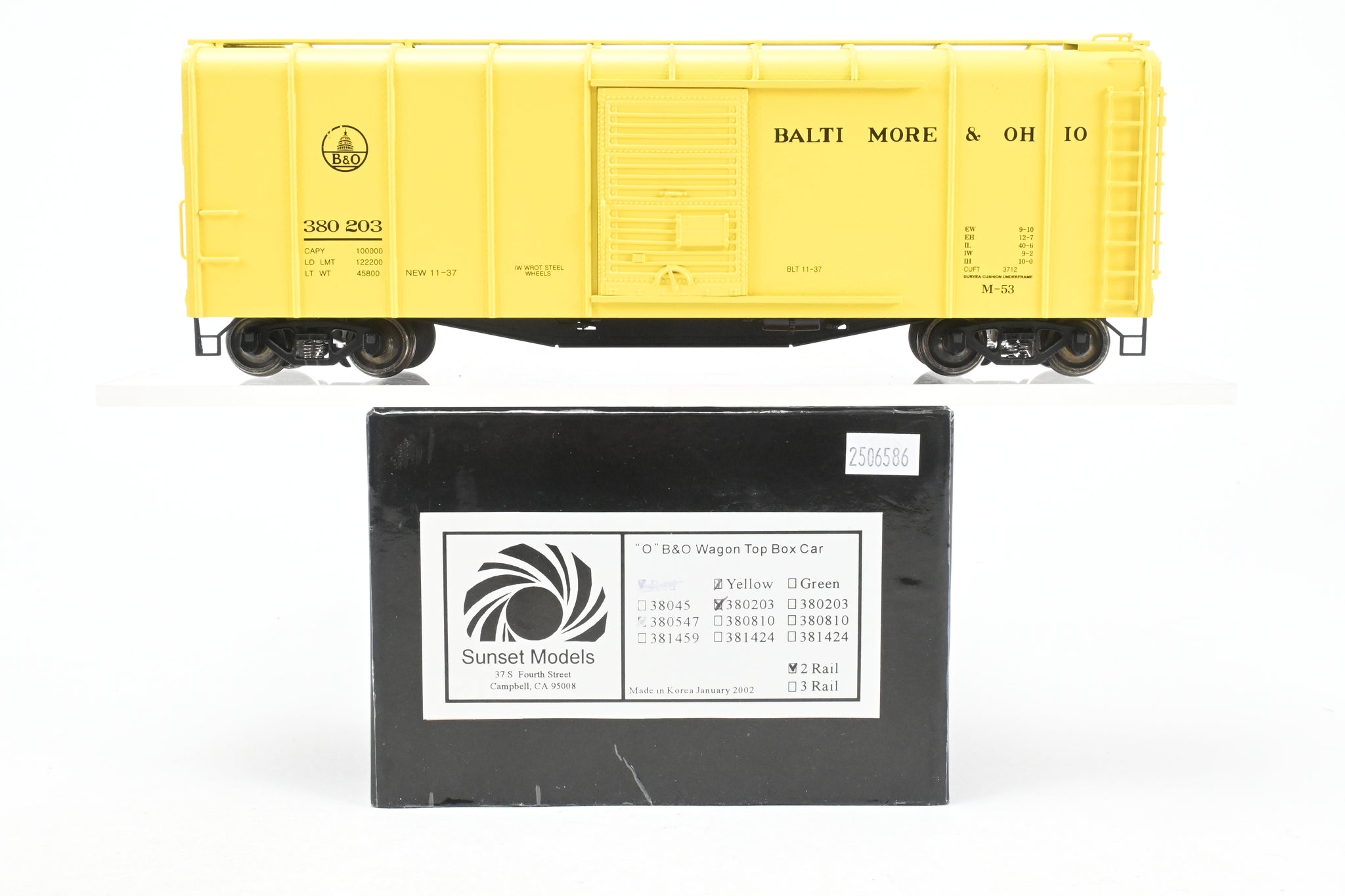 Imported by Sunset Models in 2002 and made in Korea. Box shows minor wear. Model is factory painted yellow with black lettering. This is a M-53 wagon-top box car.