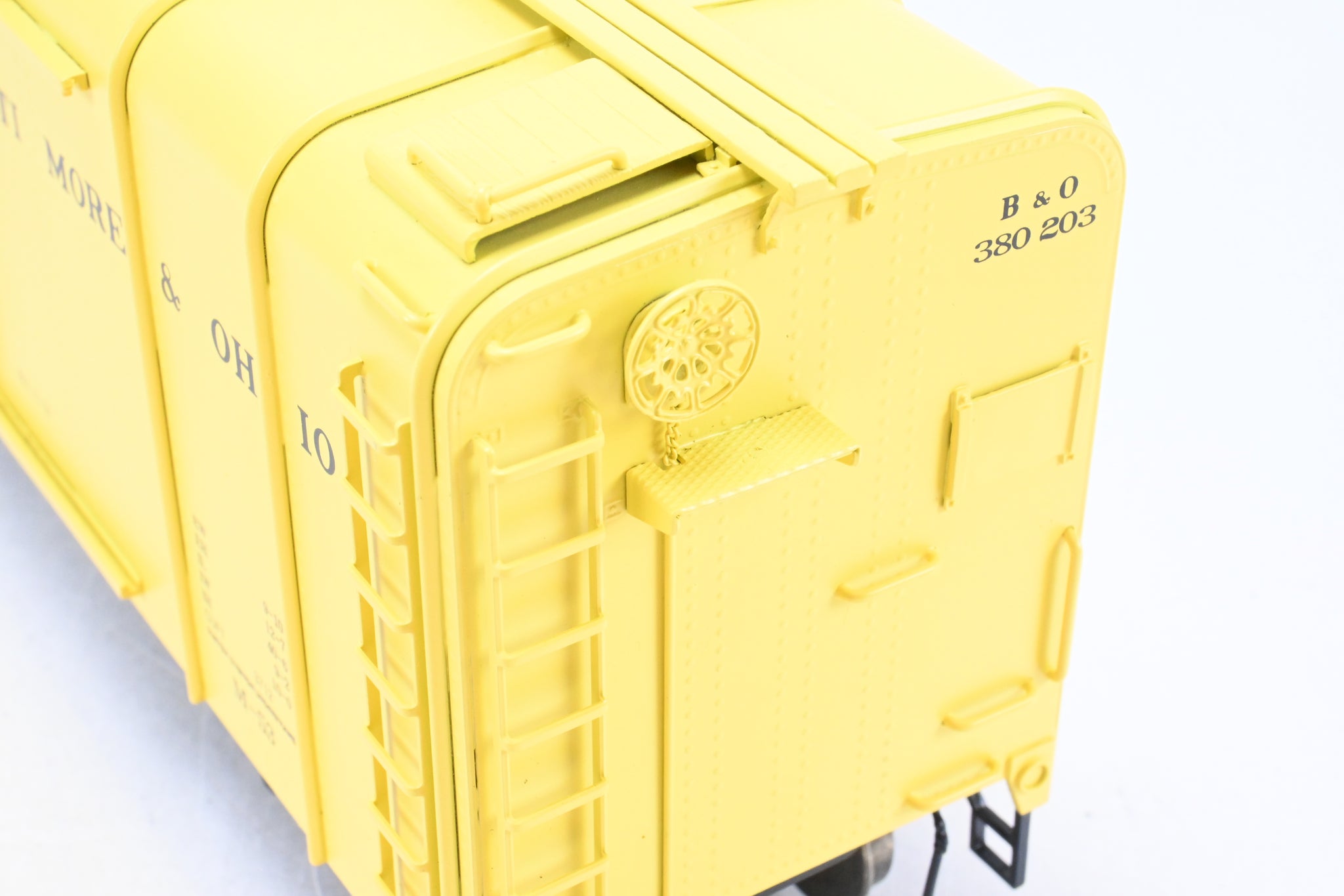 Decorated: Factory painted in Yellow with black lettering, numbered 380203. Black trucks/underframe.