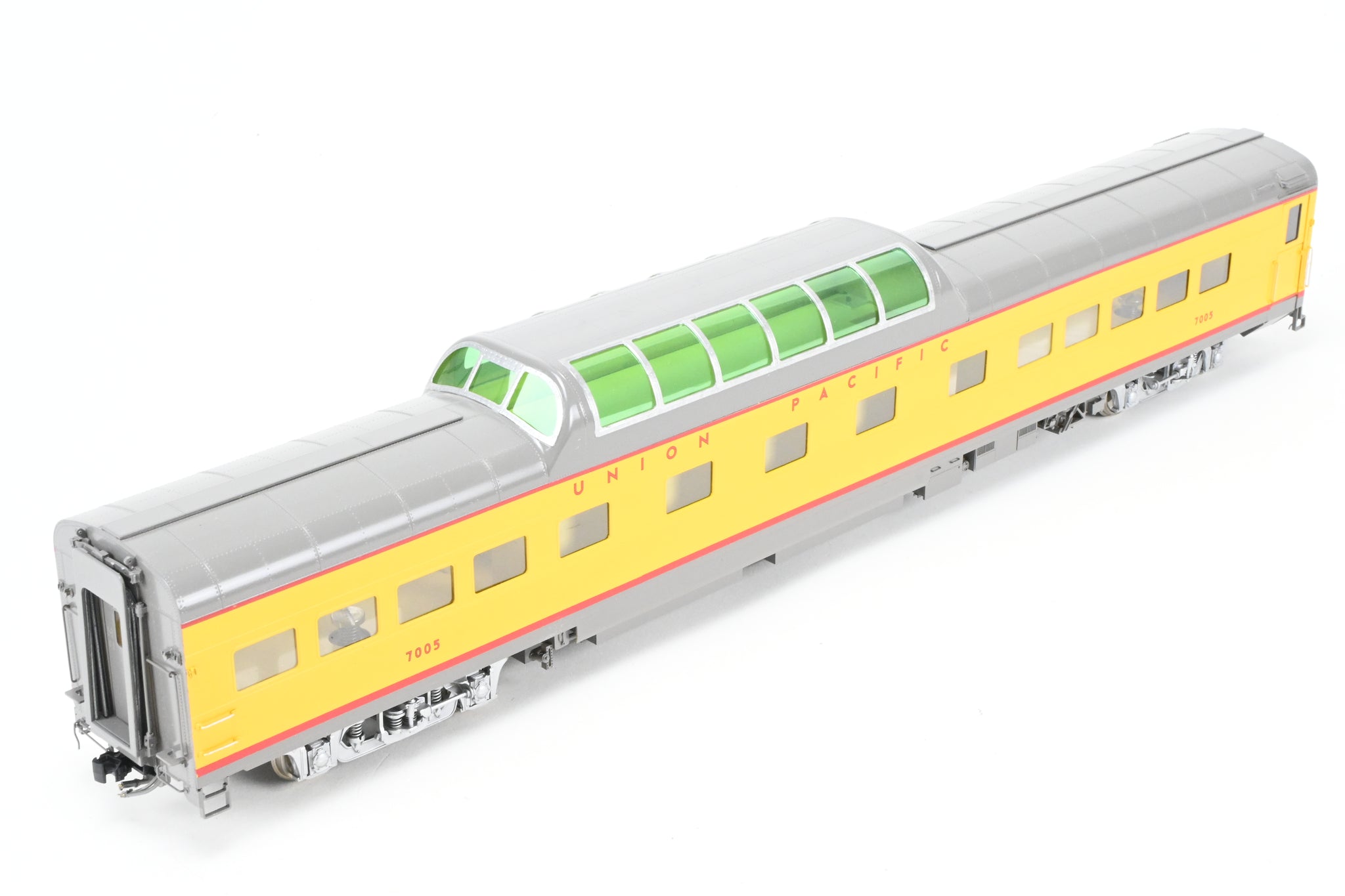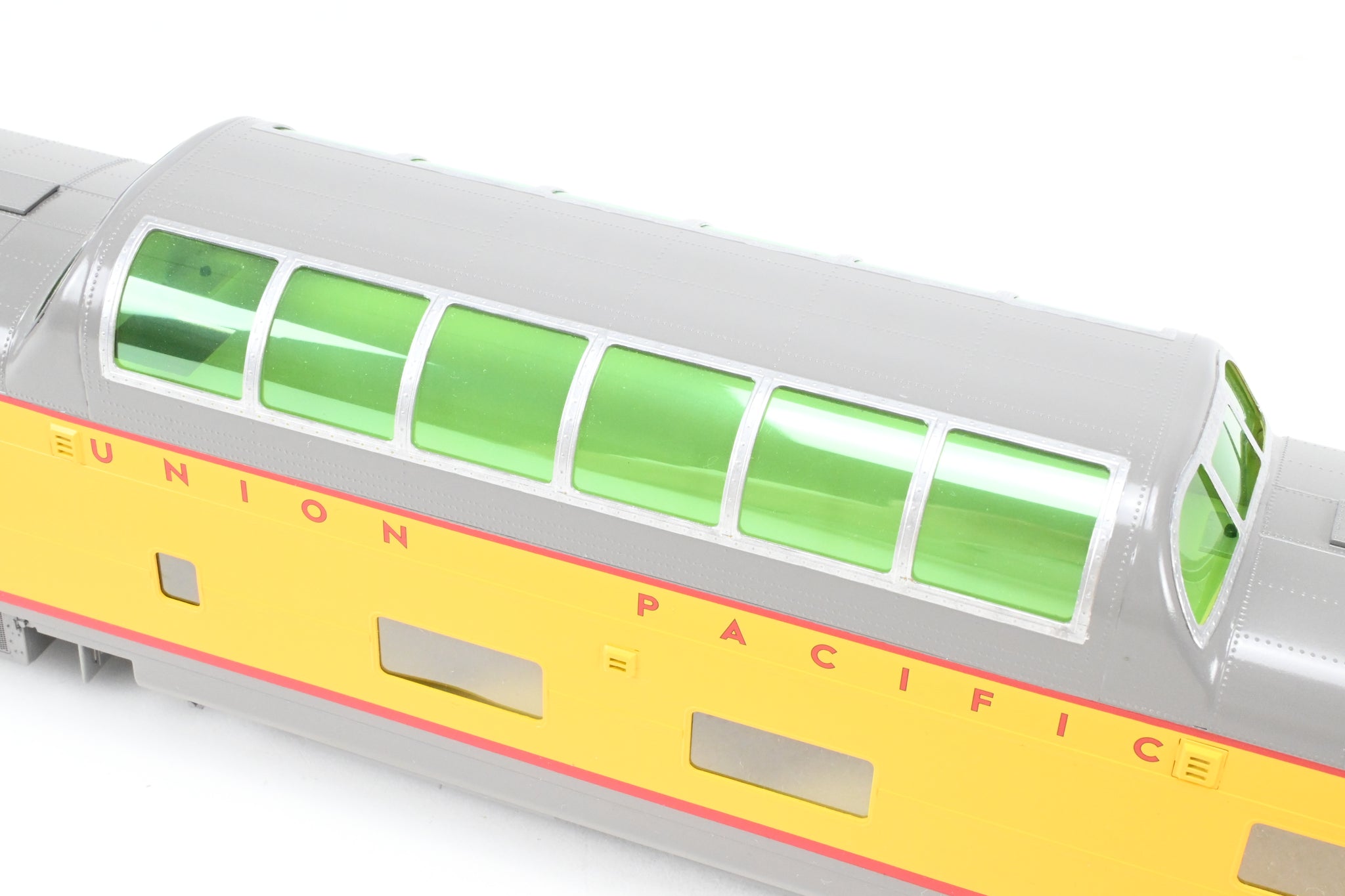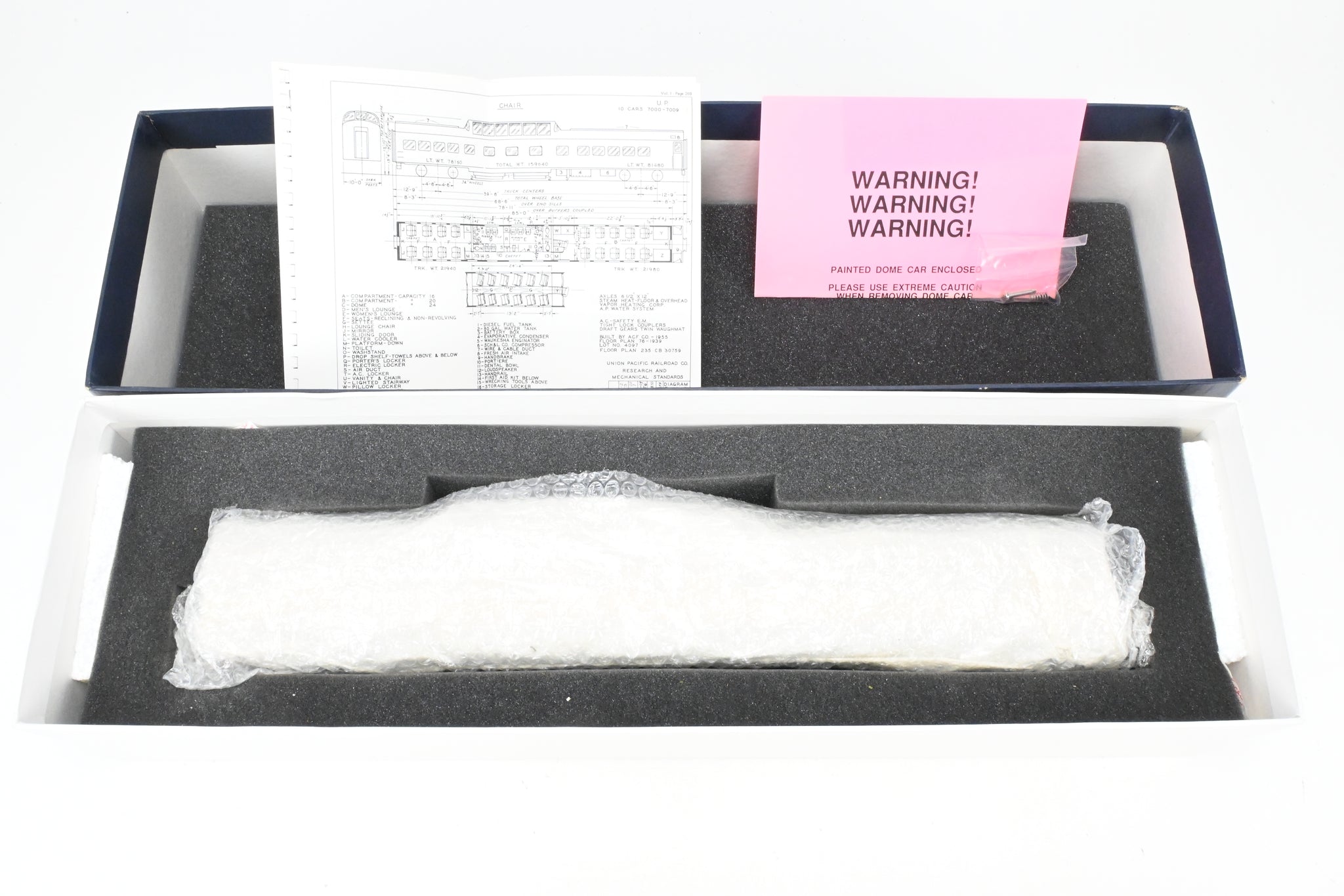 Imported by Wasatch Model Company made in Korea by ACESPM. Box shows minimal shelf wear. Spare parts included. These dome diners were used by UP on the City of Los Angeles, City of Portland Streamliners. Union Pacific still retains one car in their business fleet.