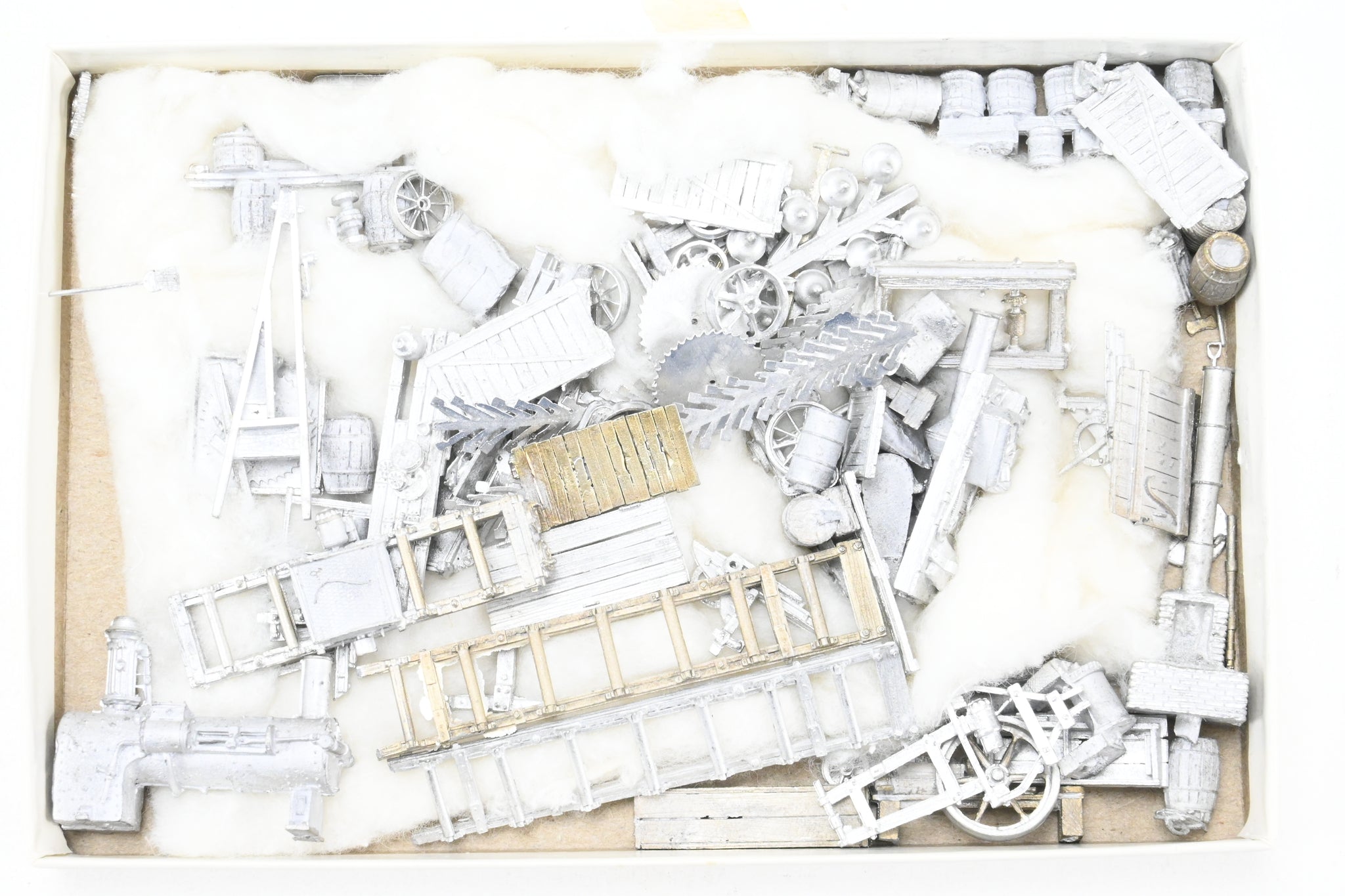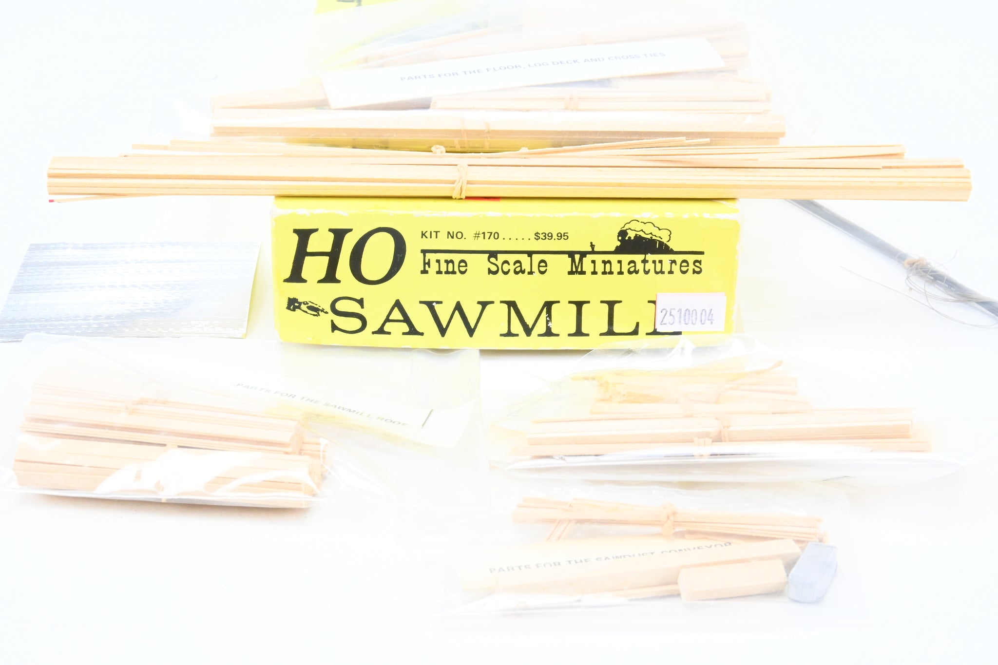 Fine scale Miniatures kit of a sawmill. Box has light wear. This is a multi media kit comprising of cut wood strips, cast metal parts, and detailed instructions. Limited and long out of production kit. Note: This is a craftsman style kit and will require a fair amount of time, skill, and patience to complete.