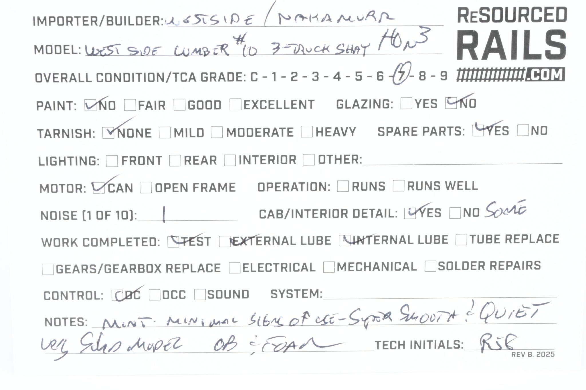 Precision Scale Co. imported model built by Nakamura in Japan. Box shows minimal shelf wear and no box label. Spare parts and extra straight stack included. Somewhat hard to find model. Great and very complete example of this model.