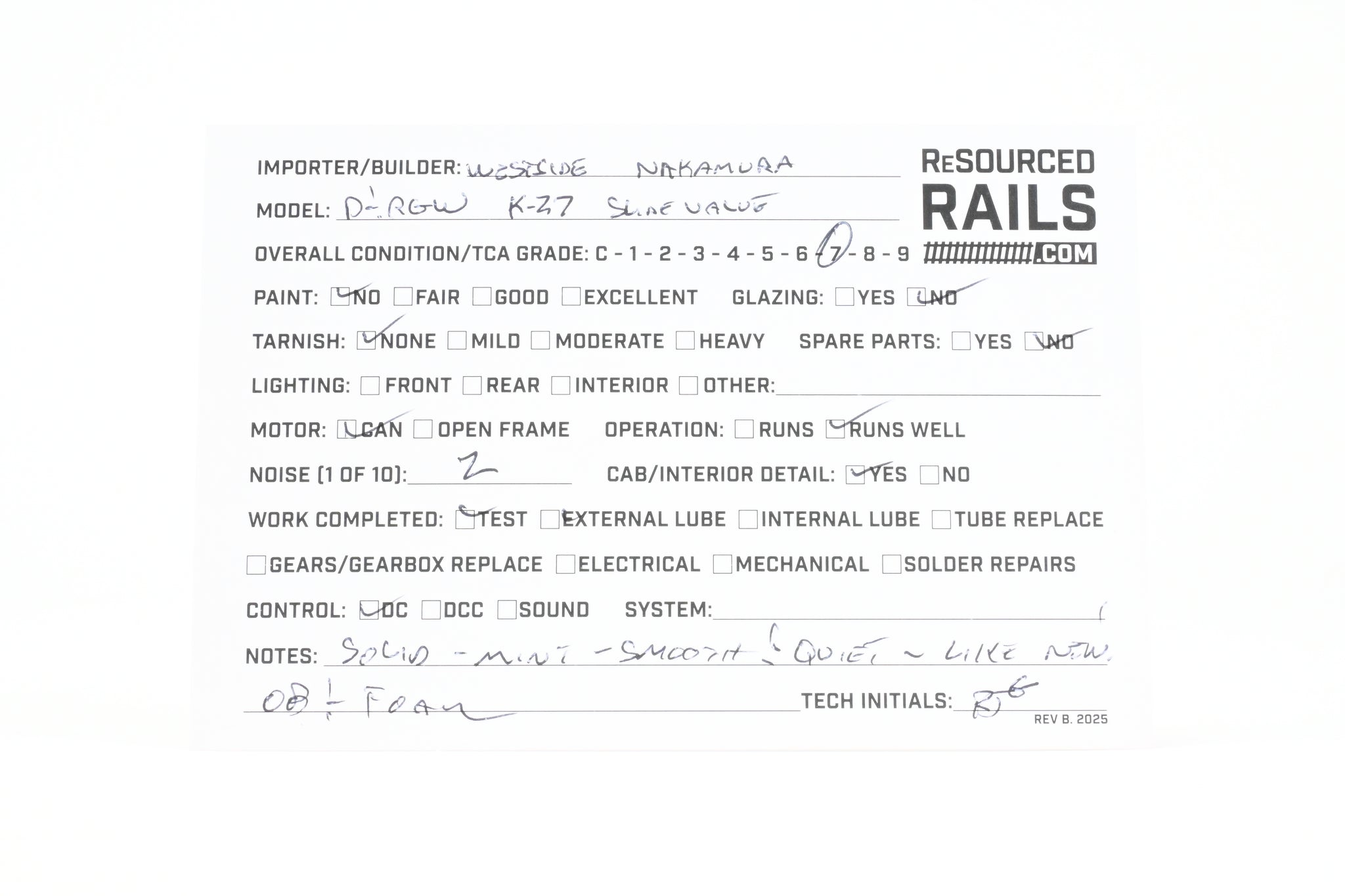 1975 Westside Model Co. built by Nakamura in Japan. Original box shows almost no shelf wear. No spare parts included. Boiler weight included, but not installed. Represents four locomotives (as built in 1903 by Baldwin Locomotive Works) Nos. 450, 451, 457 and 460. A smooth and quiet runner that shows little signs of use.