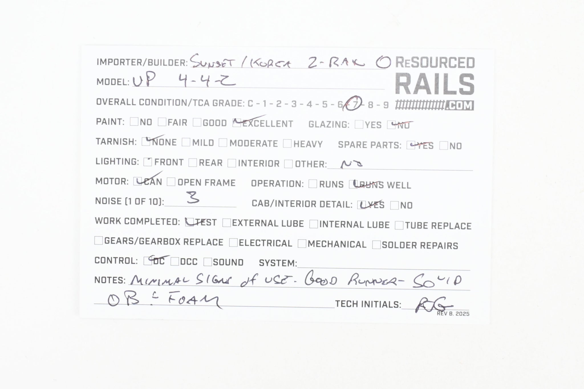 1996 run Sunset Models/Third Rail imported model built in Korea. Box shows minimal shelf wear. This is a 2-Rail version. Box shows minimum wear. Spare parts and oil conversion tank cover included. Model is factory painted and lettered. Numbed 3323. Model shows minimal signs of use. A nice model of A Class A-3 Atlantic. Only 30 produced in the 2-rail version.